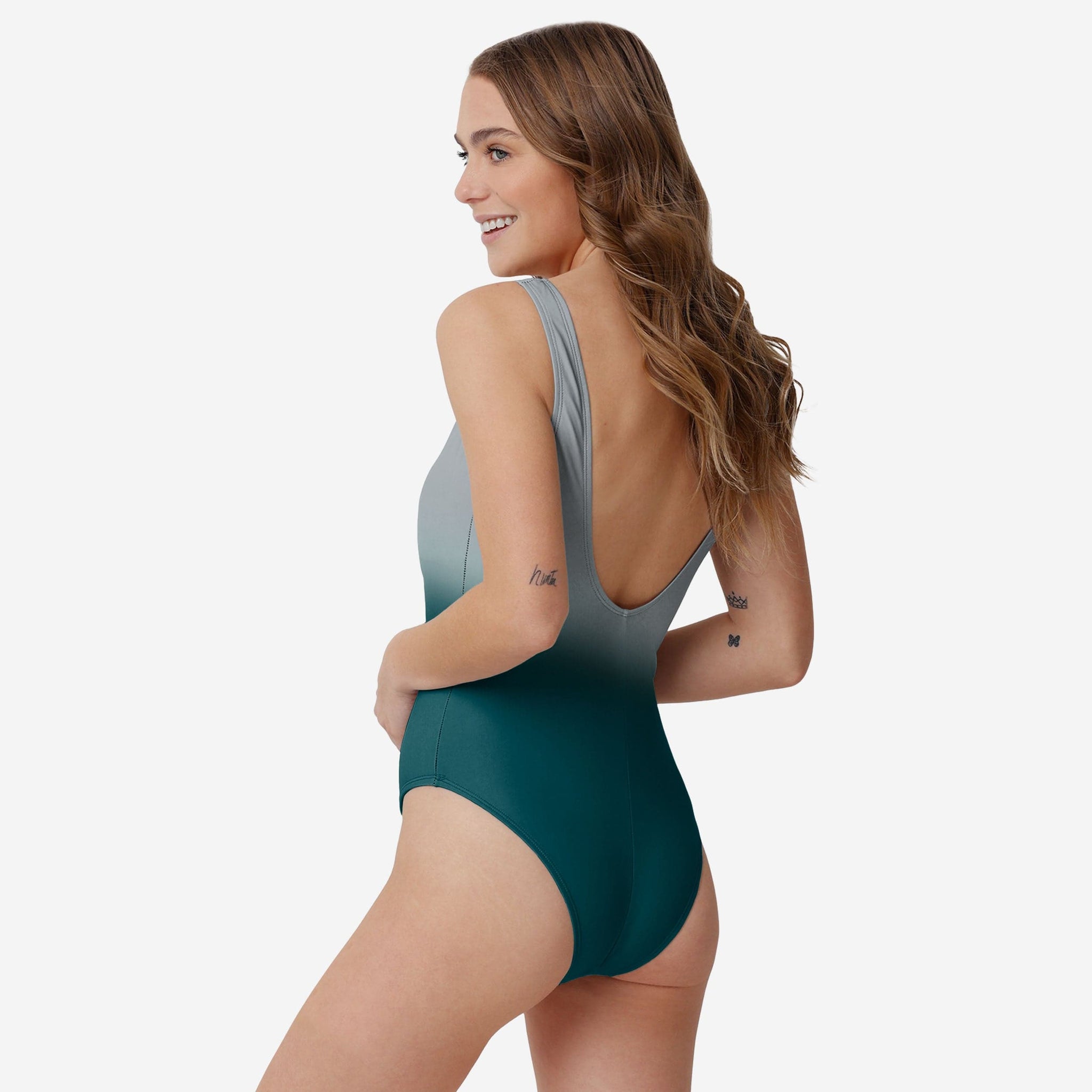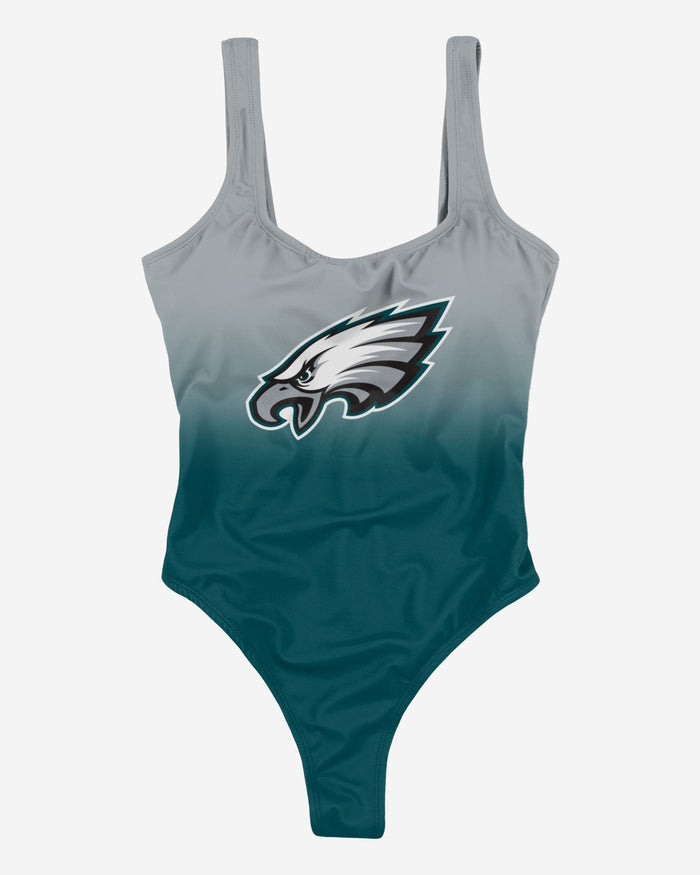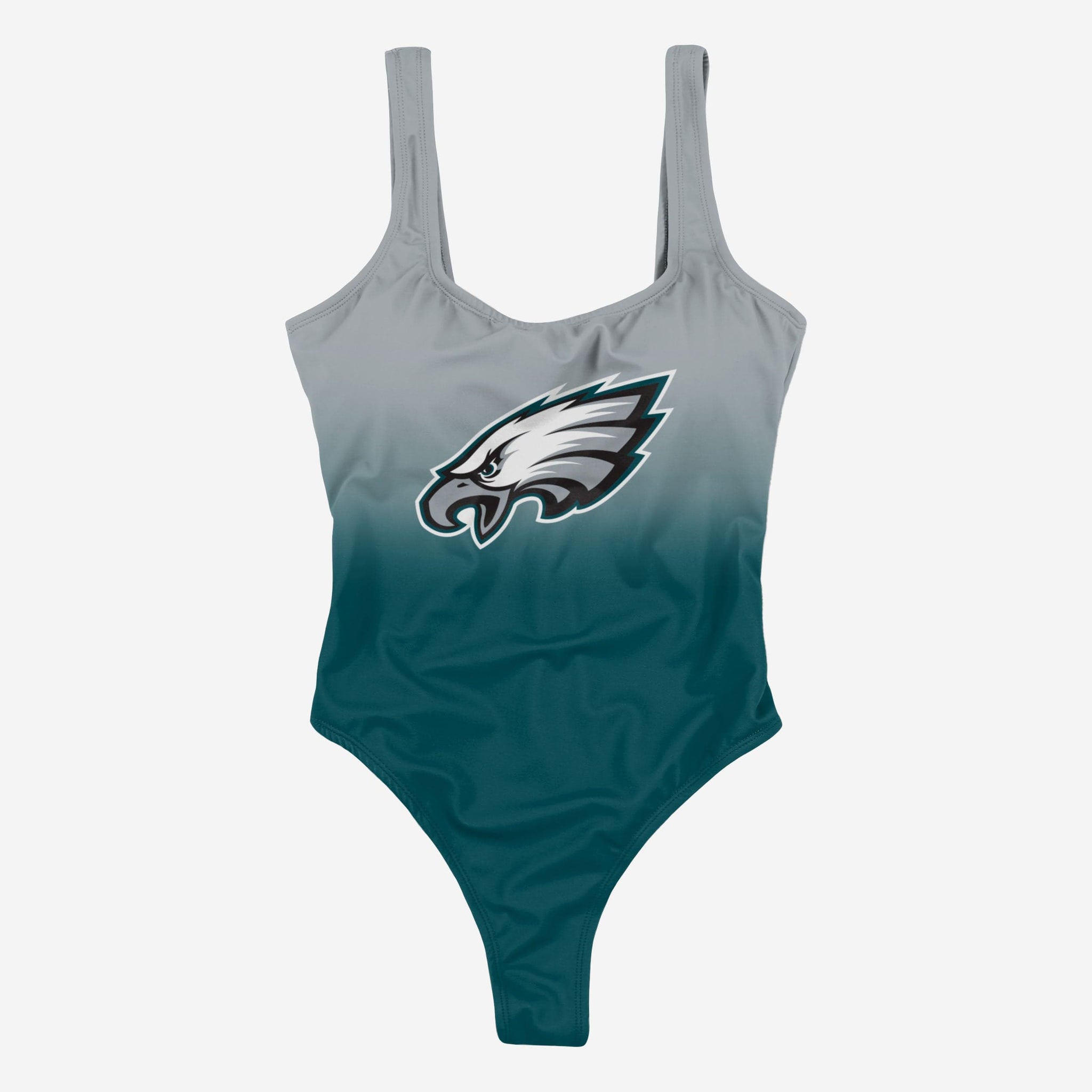 Bring your team pride to the beach, the pool, or wherever you want to make a splash this summer or on vacation with this Philadelphia Eagles Women's Gametime Gradient One Piece Bathing Suit!