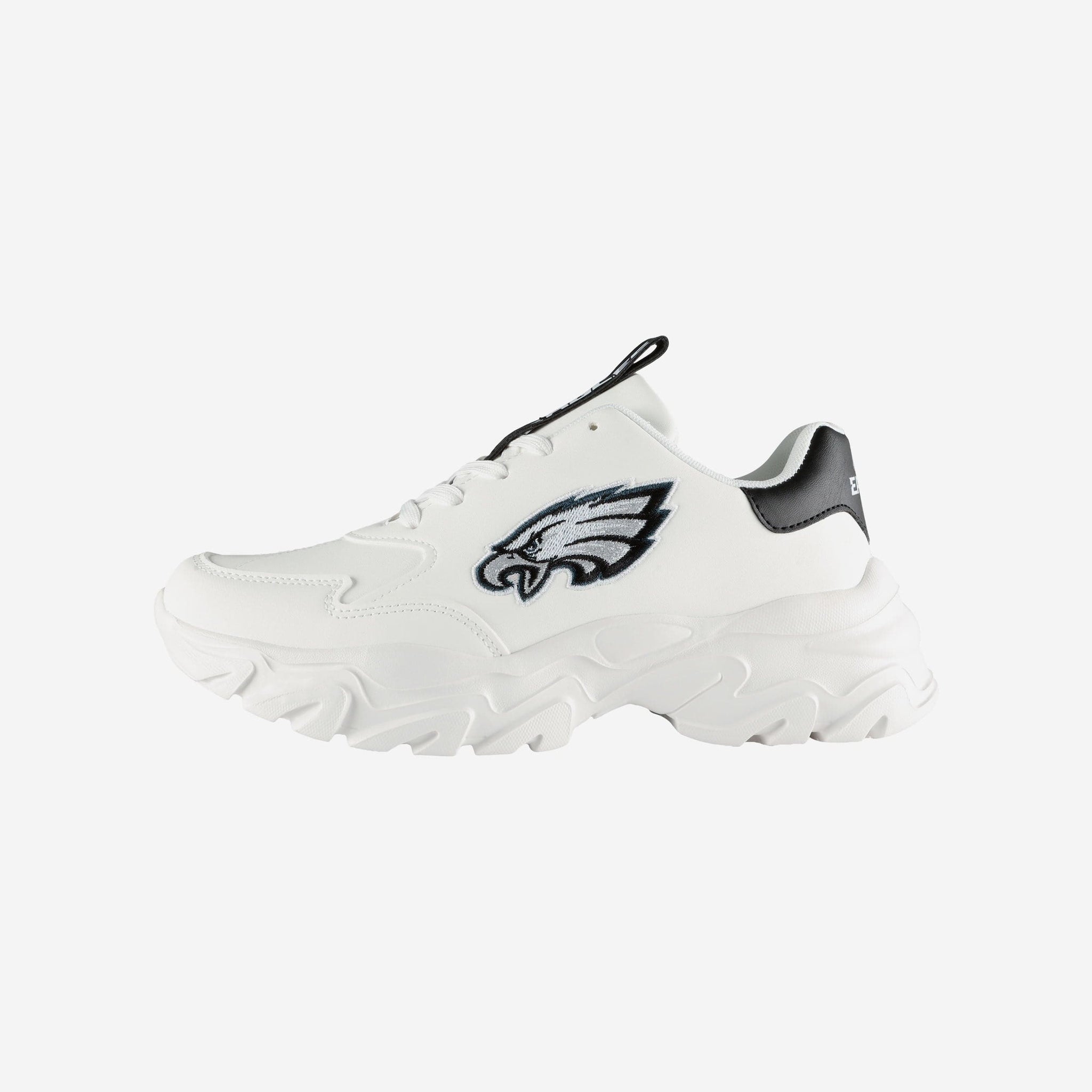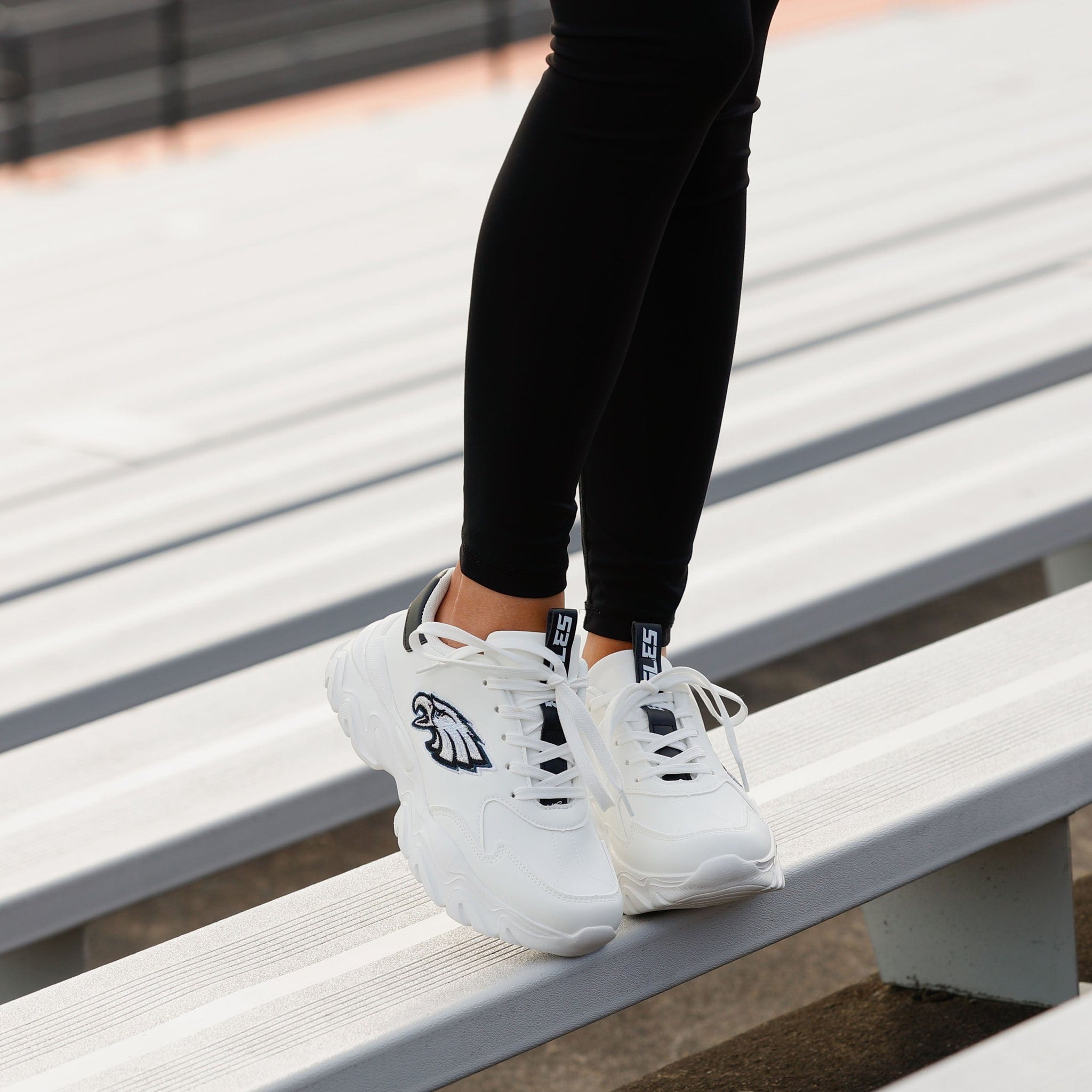 Looking for a way to step up your fan fashion game? You’ve found it! Put some team spirit in your stride with the Philadelphia Eagles Vintage White Chunky Sneakers.