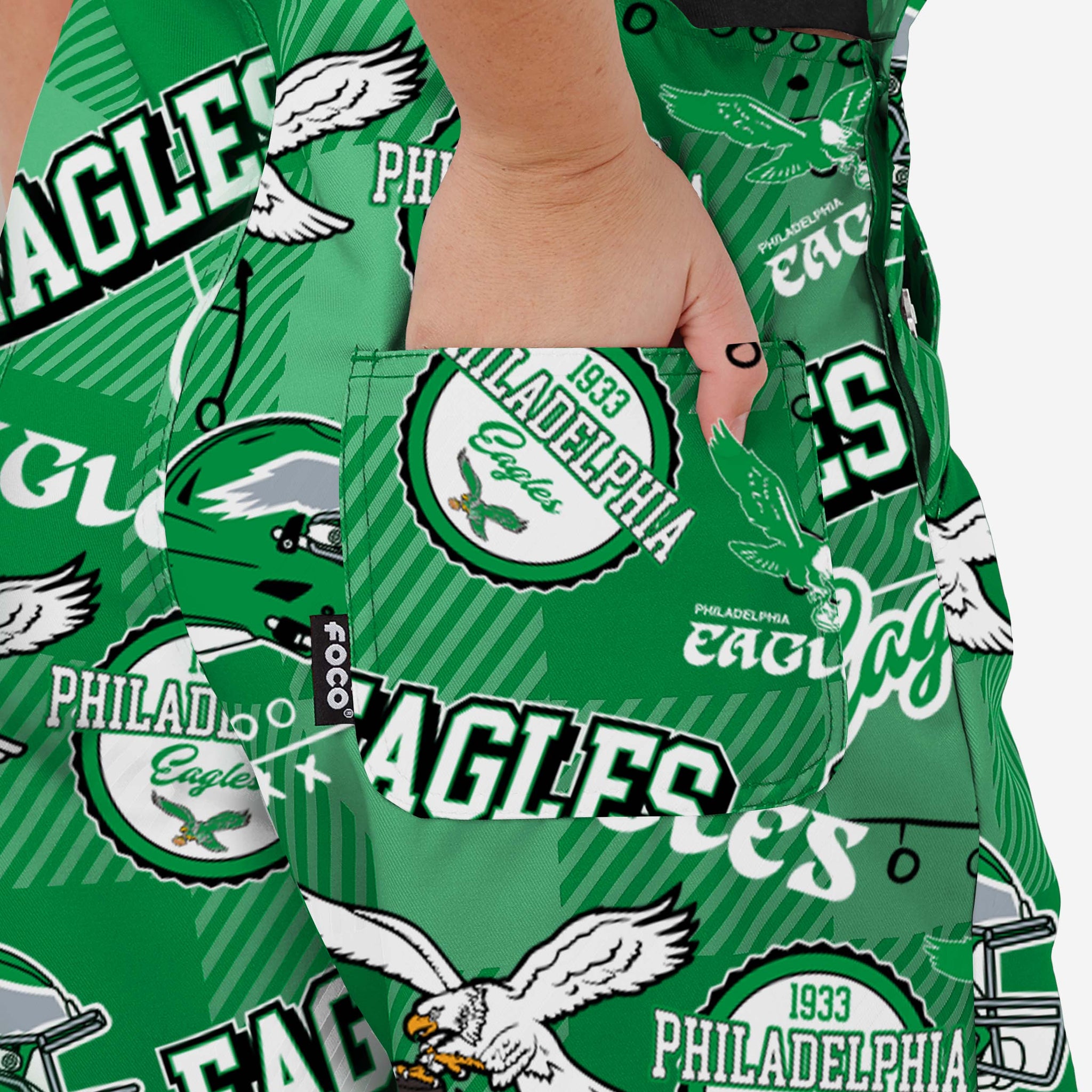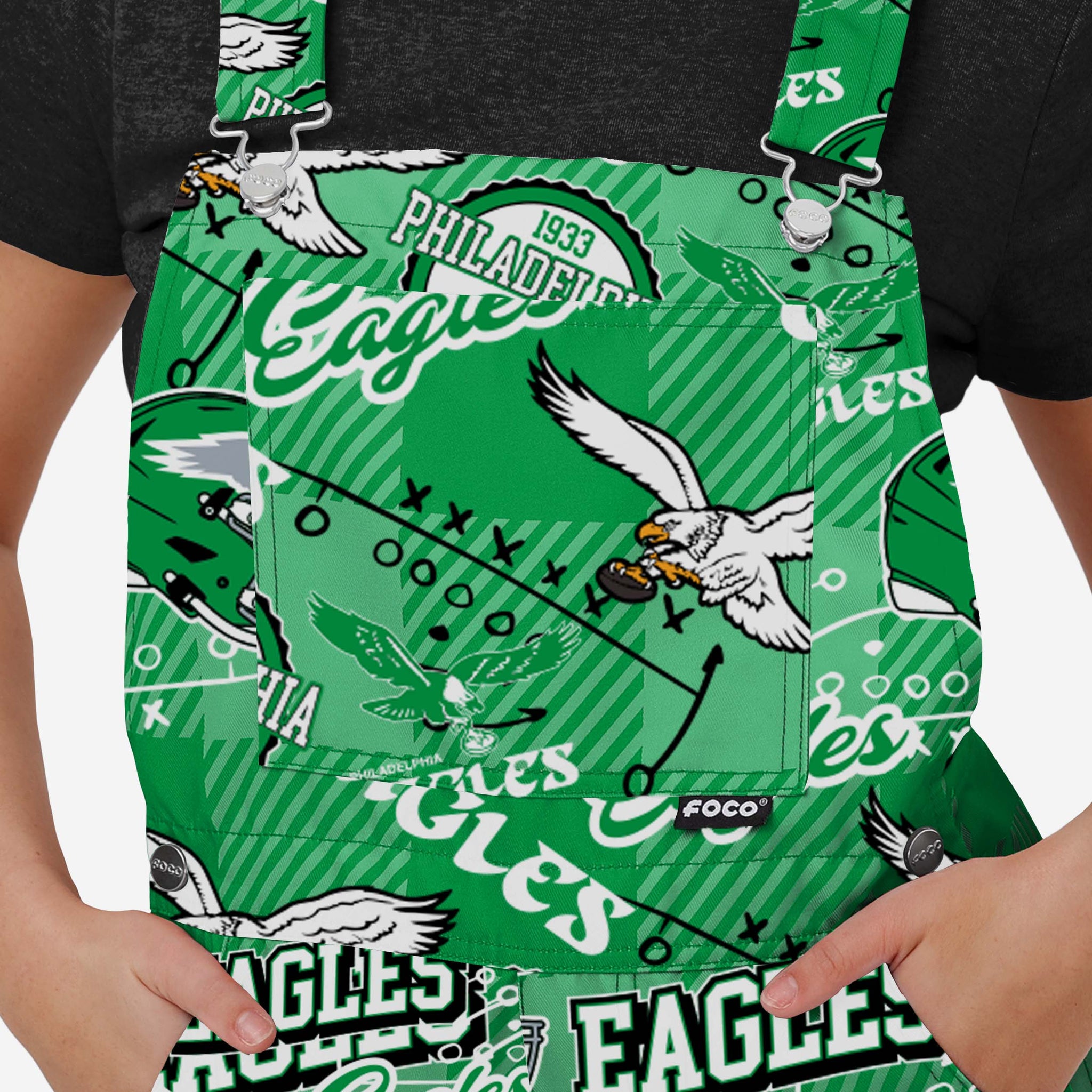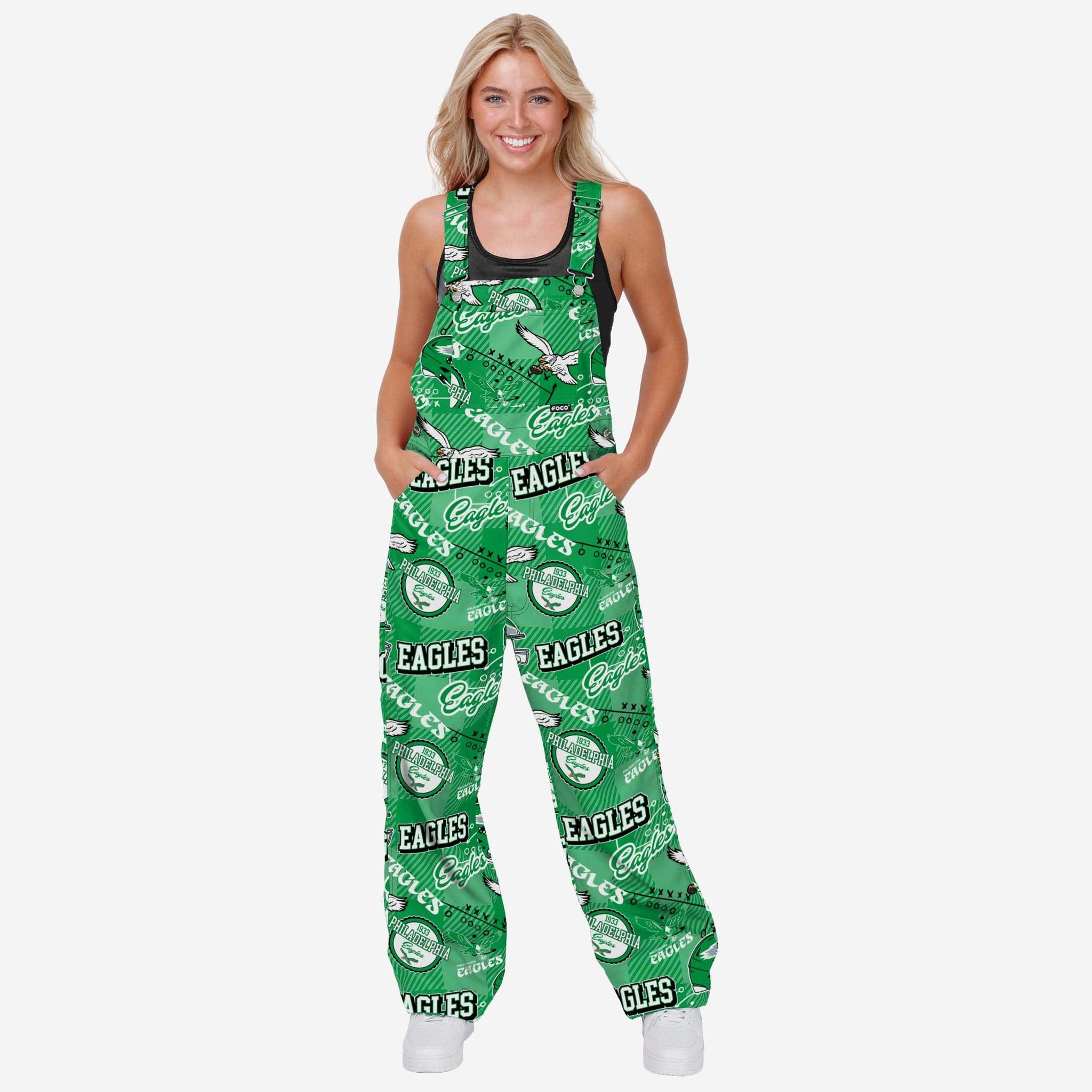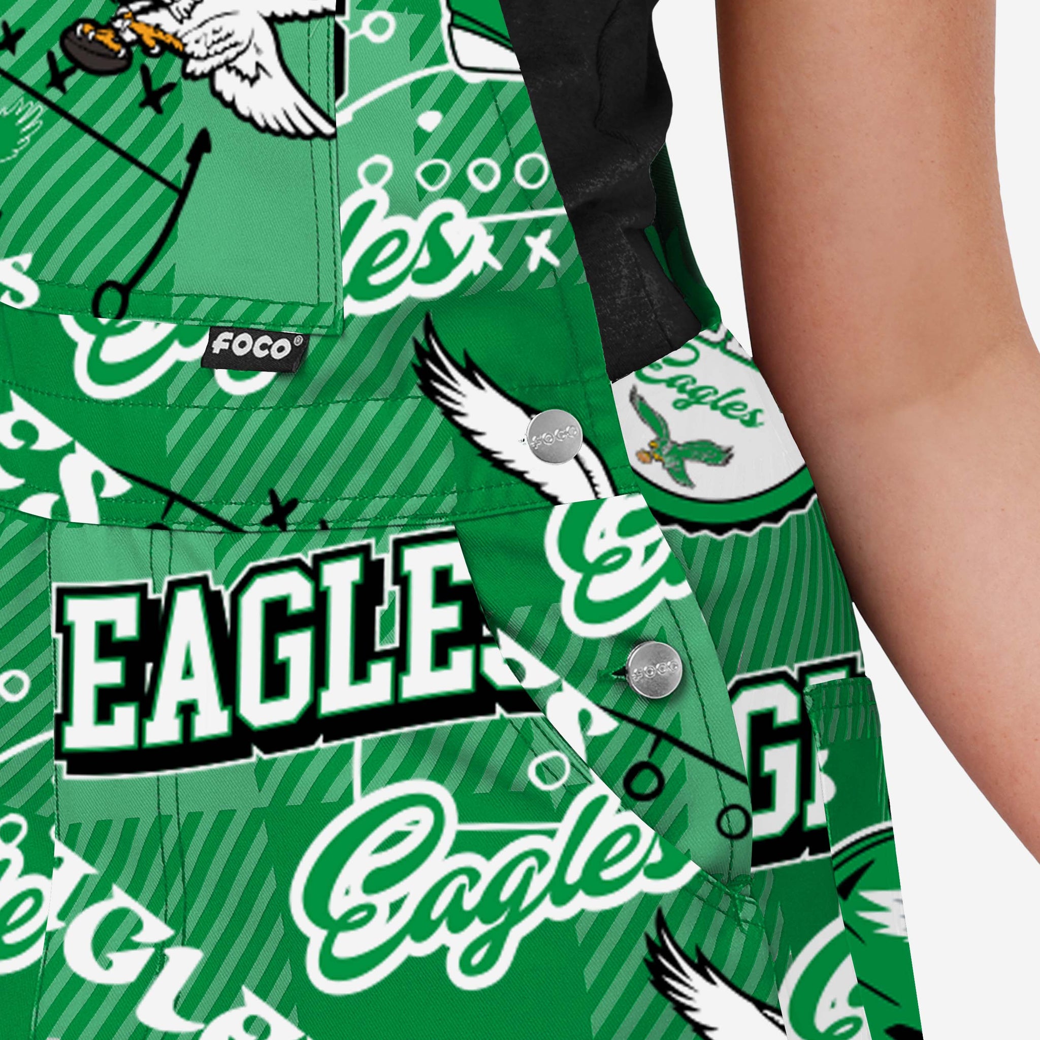 Philadelphia Eagles Womens Historic Print Bib Overalls FOCO XS - FOCO.com