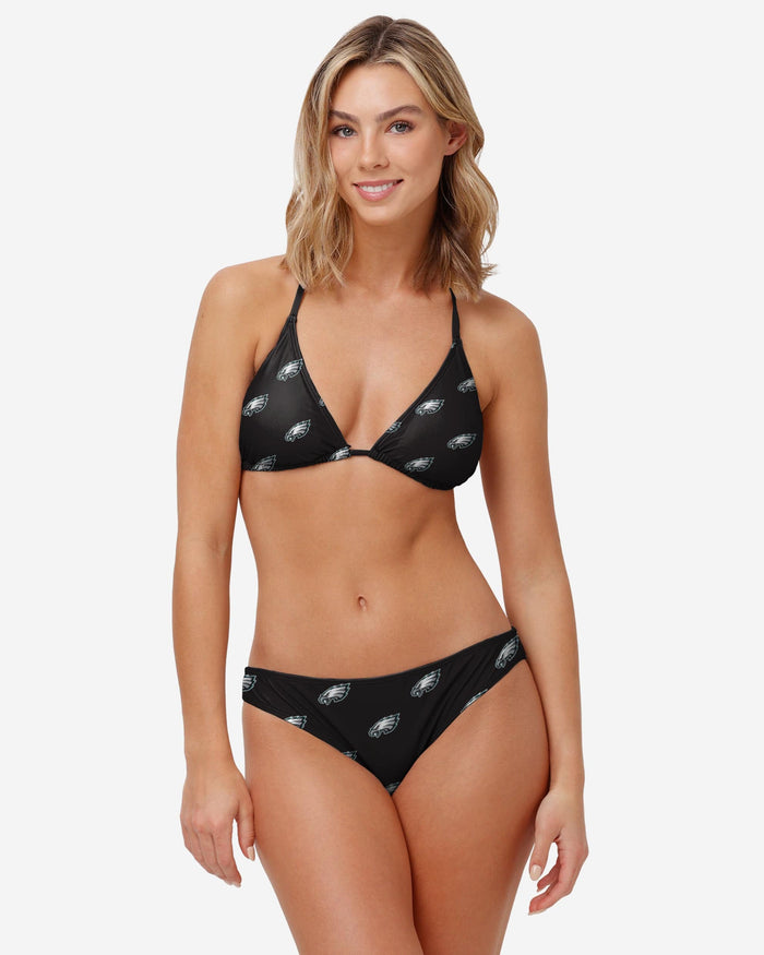 Take your team pride poolside and lounge like a legend in the Philadelphia Eagles Women's Mini Print Bikini Top!