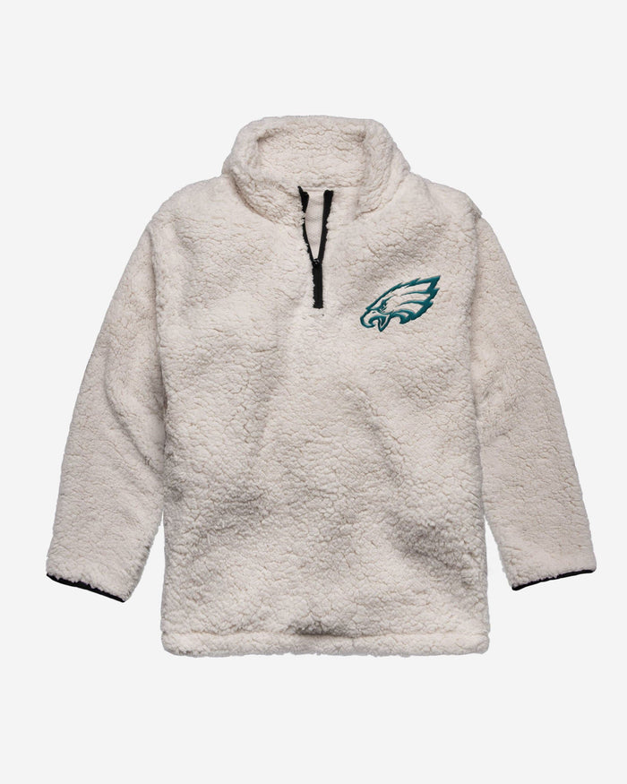 Whether it's in your seat at the stadium or from the comfort of your couch, make sure you're wearing something nice and soft while you go hard and cheer your team on to victory. This Philadelphia Eagles Women's Quarter Zip Fluffly Sherpa Sweater can help you do that in style.