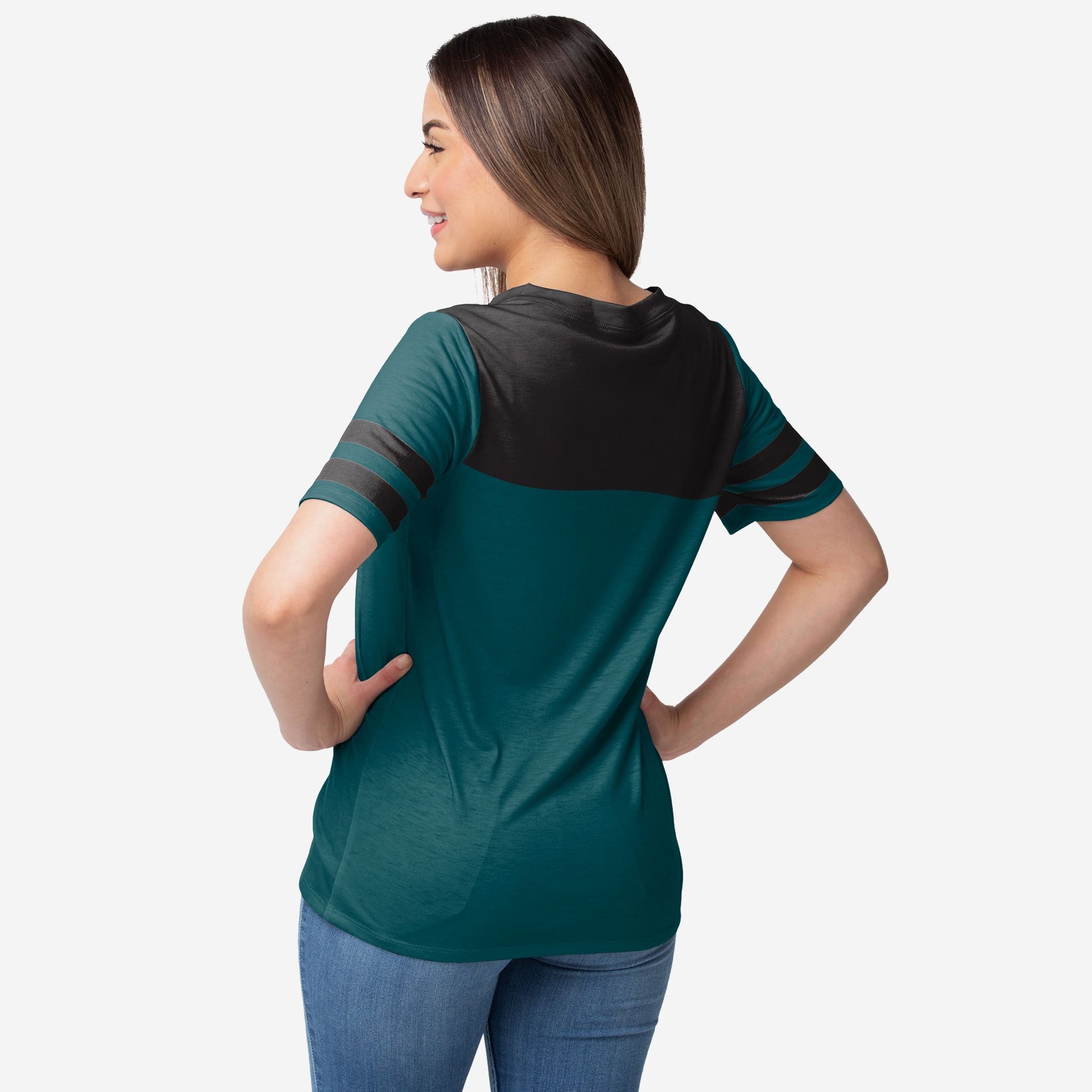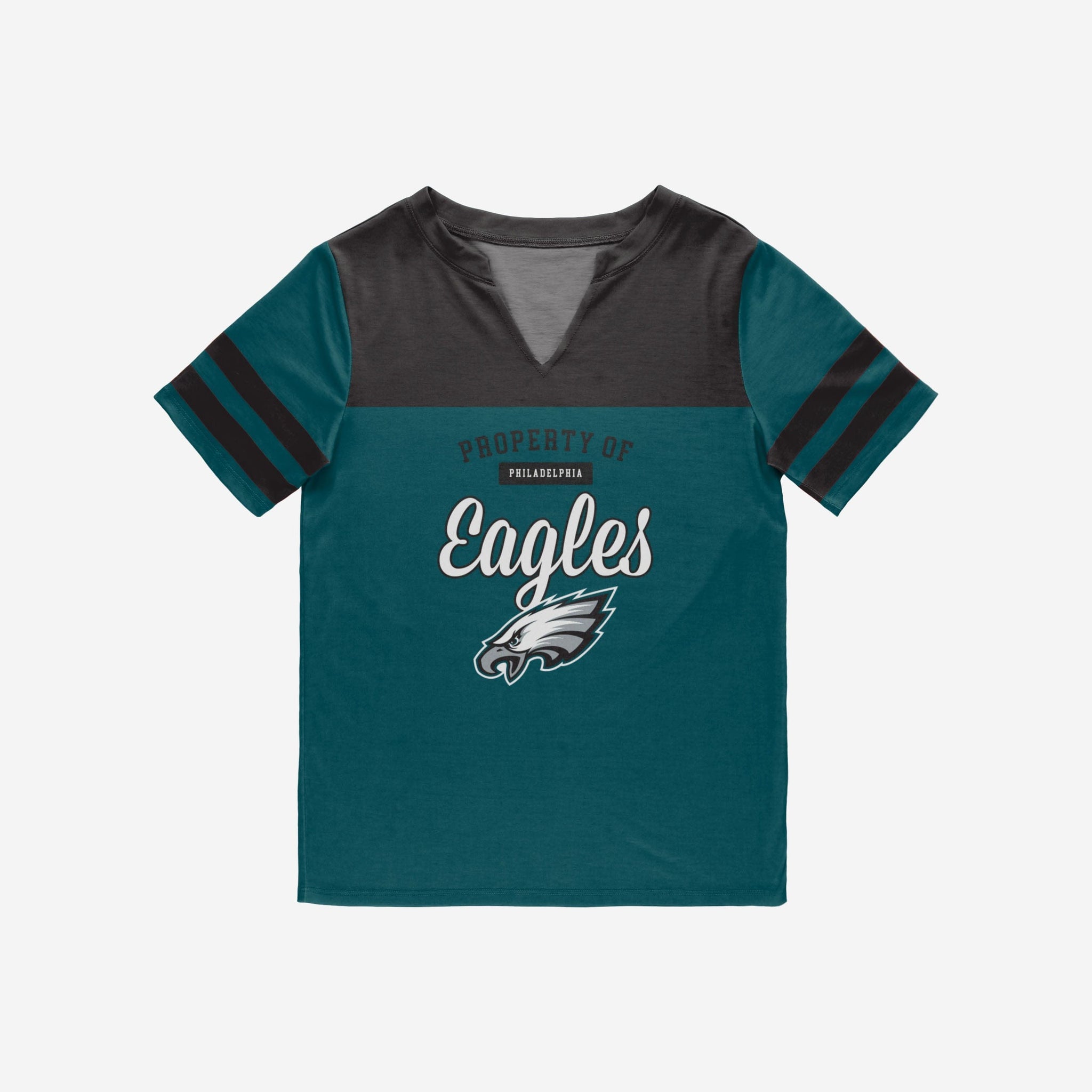 Ready. Set. Gameday! Dress to impress when you're chilling at the tailgate or cheering in the stadium with this Philadelphia Eagles Women's Team Stripe Property Of V-Neck Shirt.