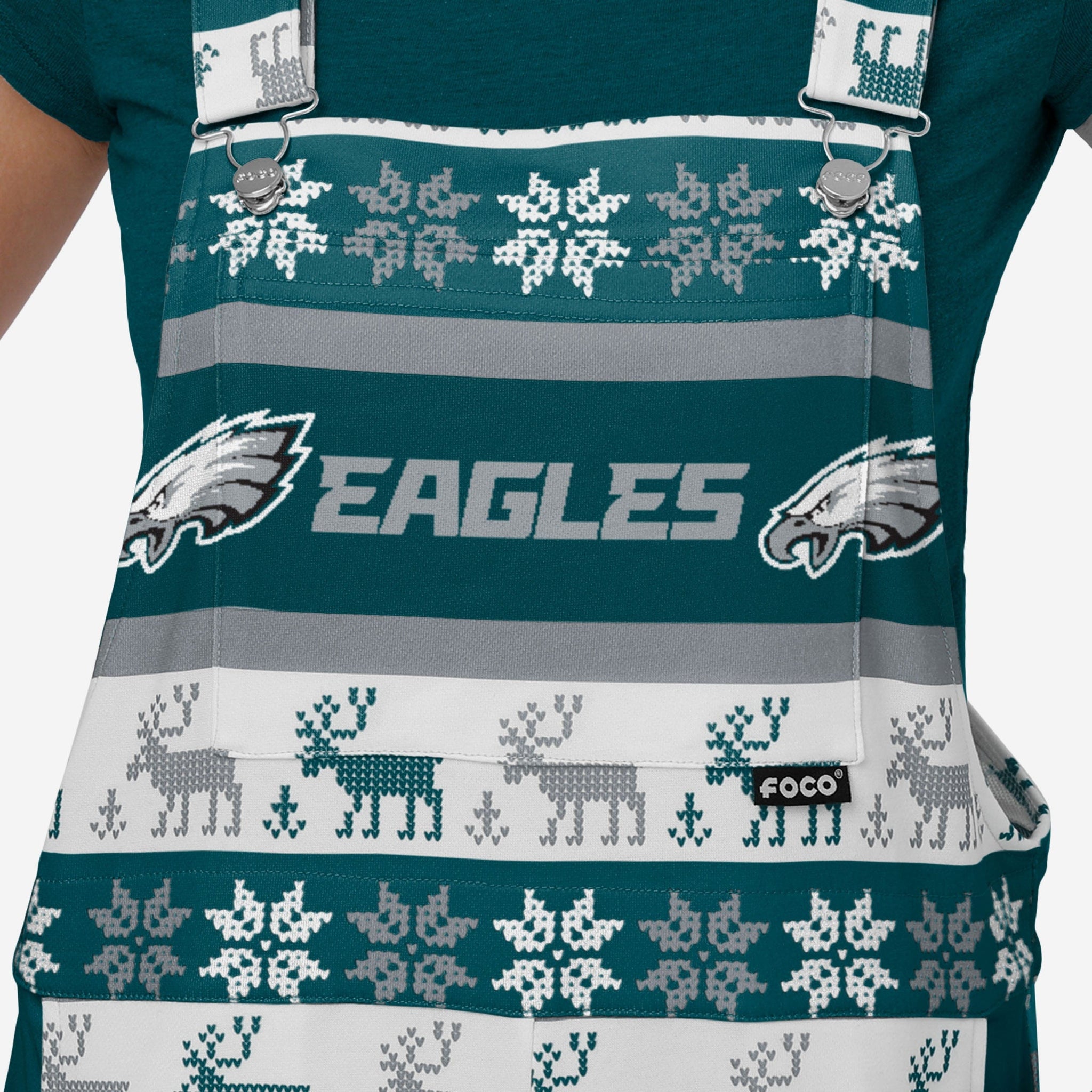 Show your team spirit in these stylish and comfortable Philadelphia Eagles Women's Ugly Home Gating Bib Overalls. With their all-over team-colored design and bold team logo display, these overalls are the perfect way to show your support for the Philadelphia Eagles while showing off some beautiful style akin to your favorite ugly sweater that's perfect for the holidays, but will help you stand out year-round.