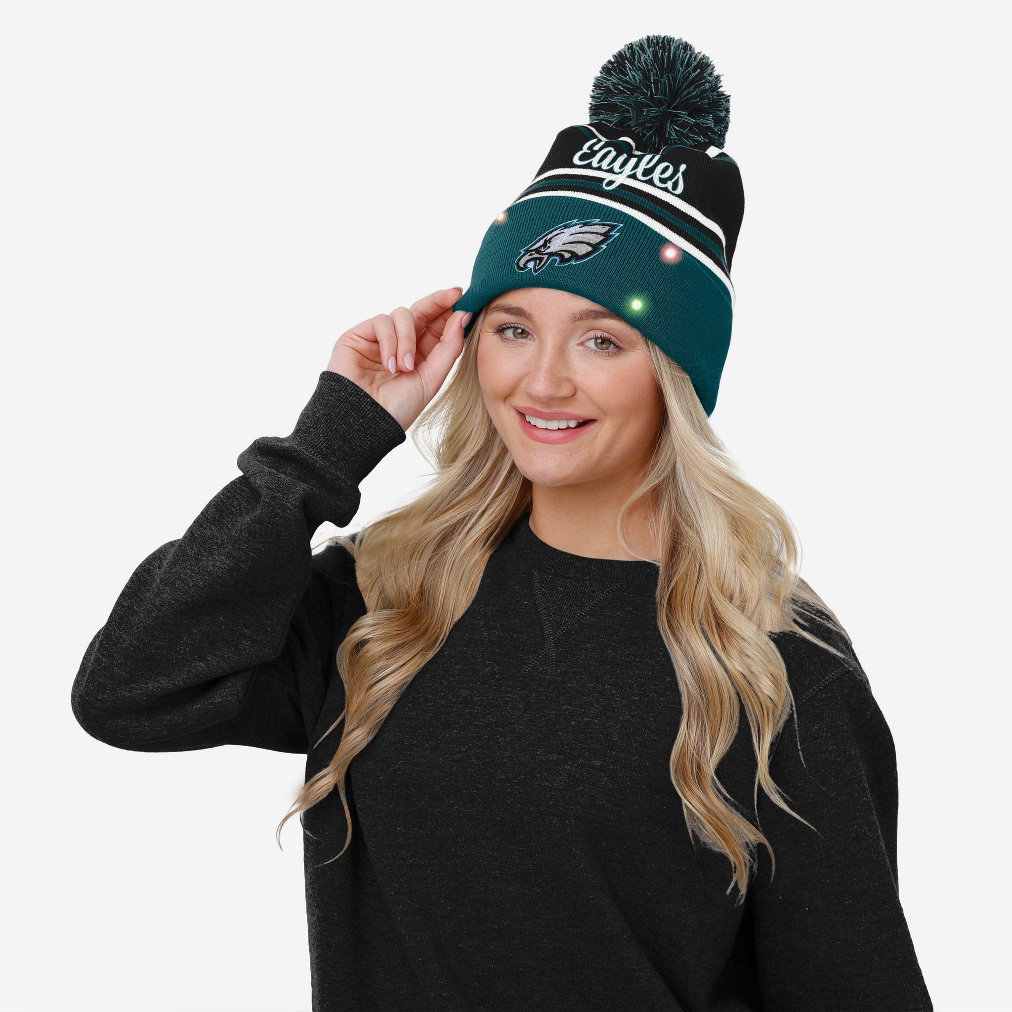 Turn that snow day into a glow day. The weather outside may be frightful, but wearing this Philadelphia Eagles Women's Wordmark Script Light Up Beanie is truly delightful.