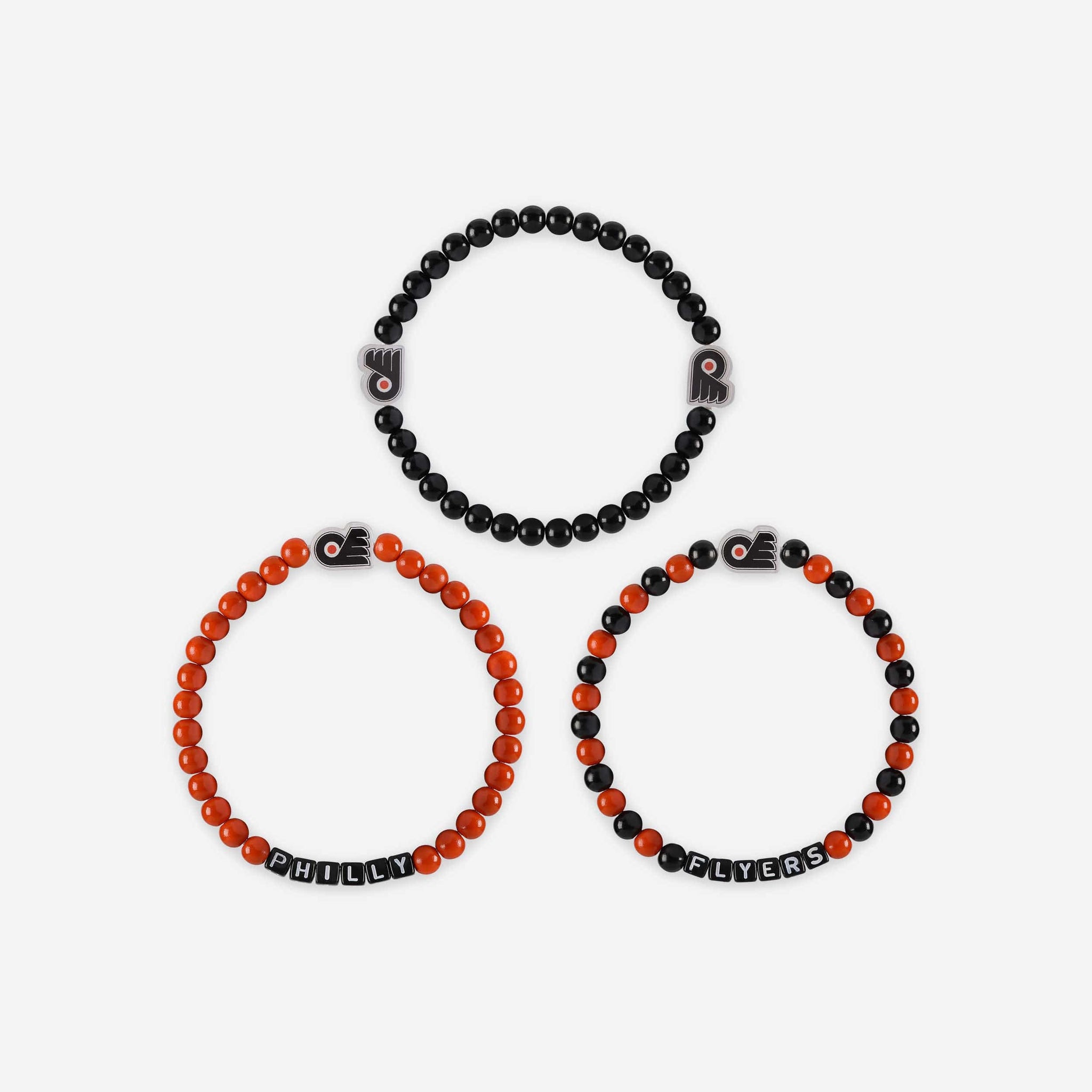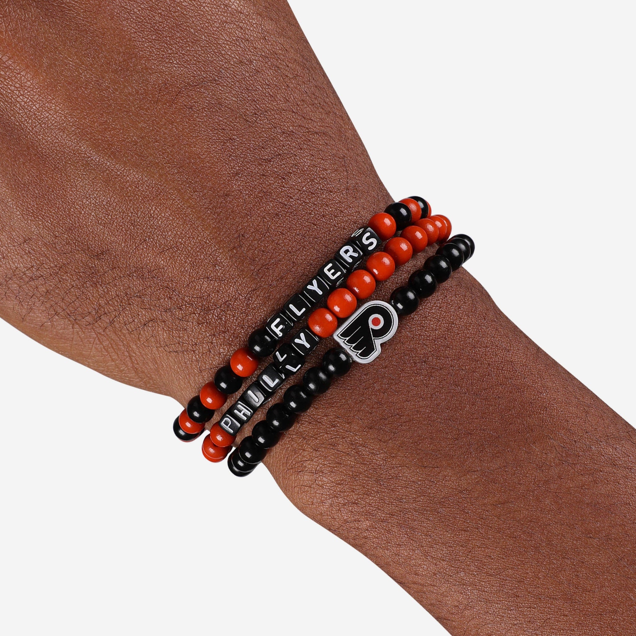 A whole new way to rep the team in style is here. Step up your fan fashion sense with this Philadelphia Flyers 3 Pack Beaded Friendship Bracelet. These matching friendship bracelets have an all-over team-colored design and team logo displays, which makes them the perfect way to show your support for the Philadelphia Flyers on gamedays and every day in between.