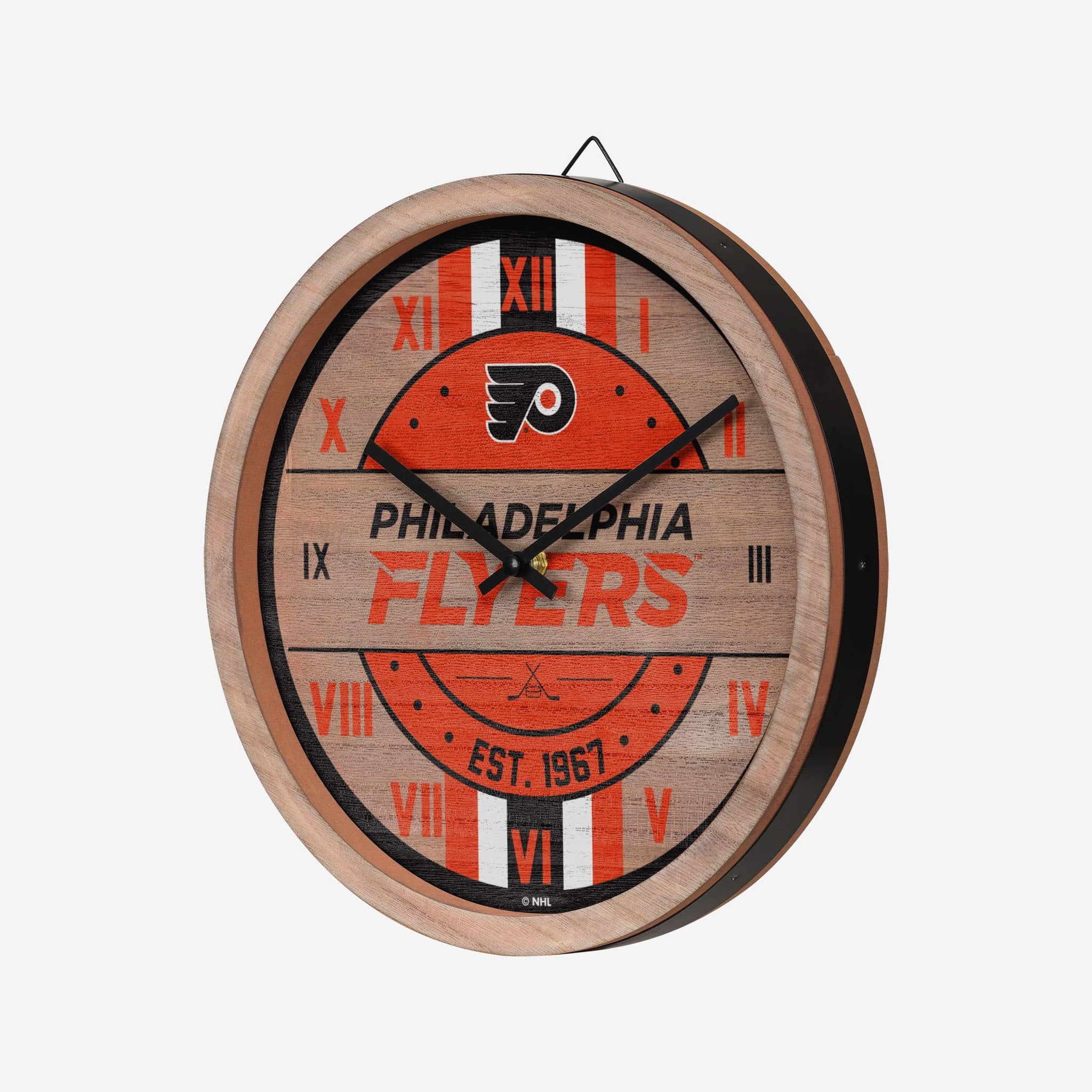 Tick. Tock. Don't let the clock hit zero on your chance to spice up your fancave. This Philadelphia Flyers Barrel Wall Clock lets you show off your top-notch team spirit, and also tells you what time it is. But let's be honest. We all know it's always game time.