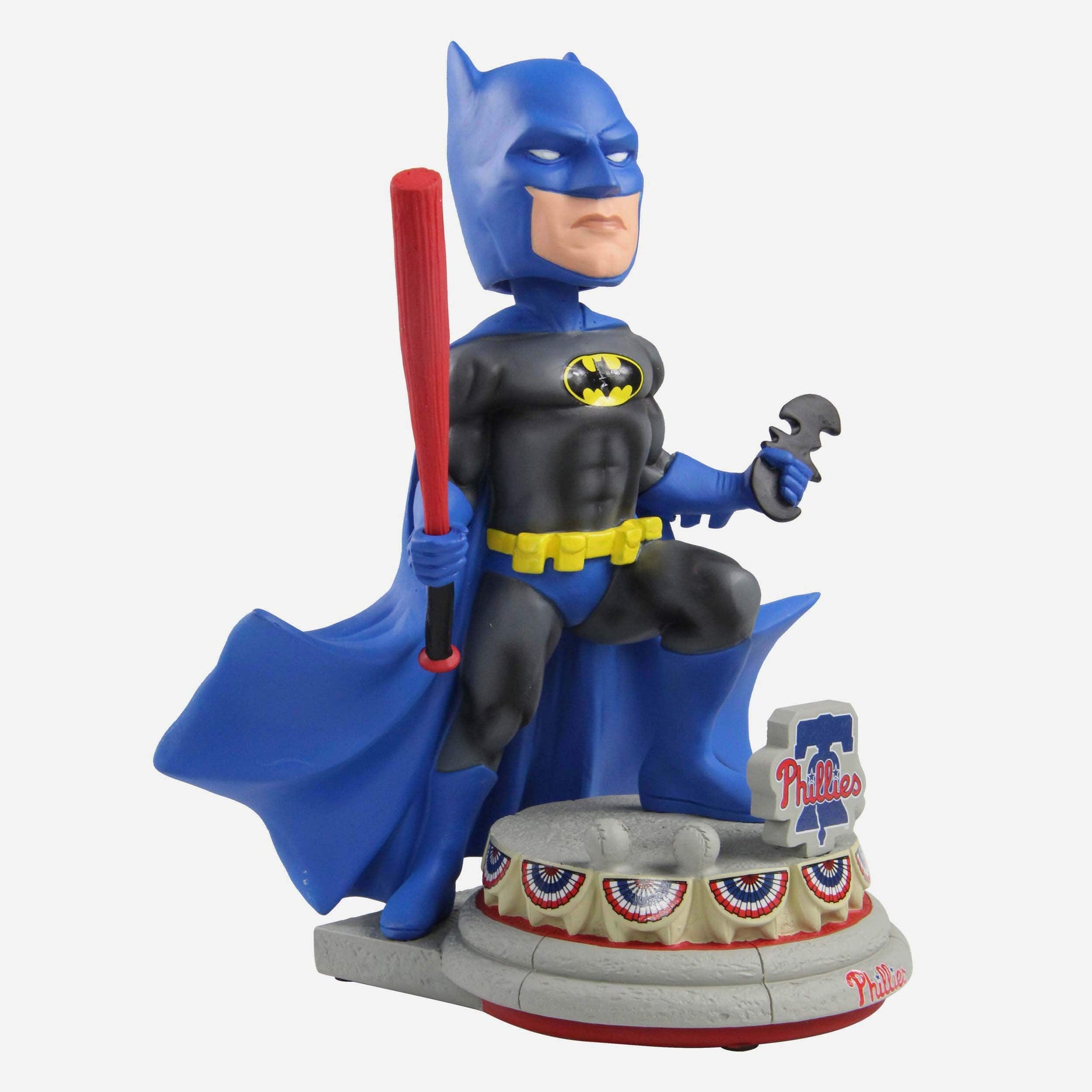 Batman? Holding a baseball bat? That's, like, bat-ception. Step up to the plate and hit a grand slam straight out of Gotham with this Philadelphia Phillies Batman DC Bobblehead.