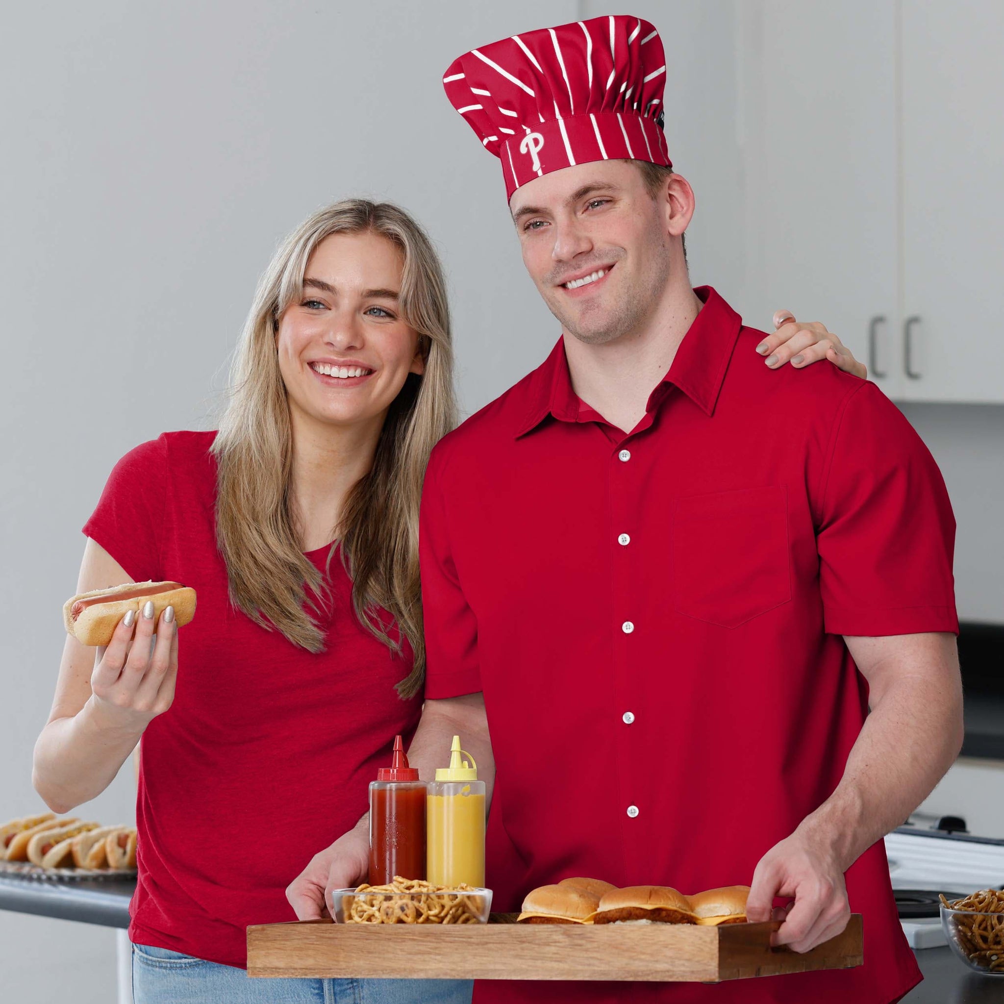 Ready to serve up the best food in the greatest fan fit? The Philadelphia Phillies Pinstripe Chef Hat is here to help you bring fandom to your most flavorful dishes.