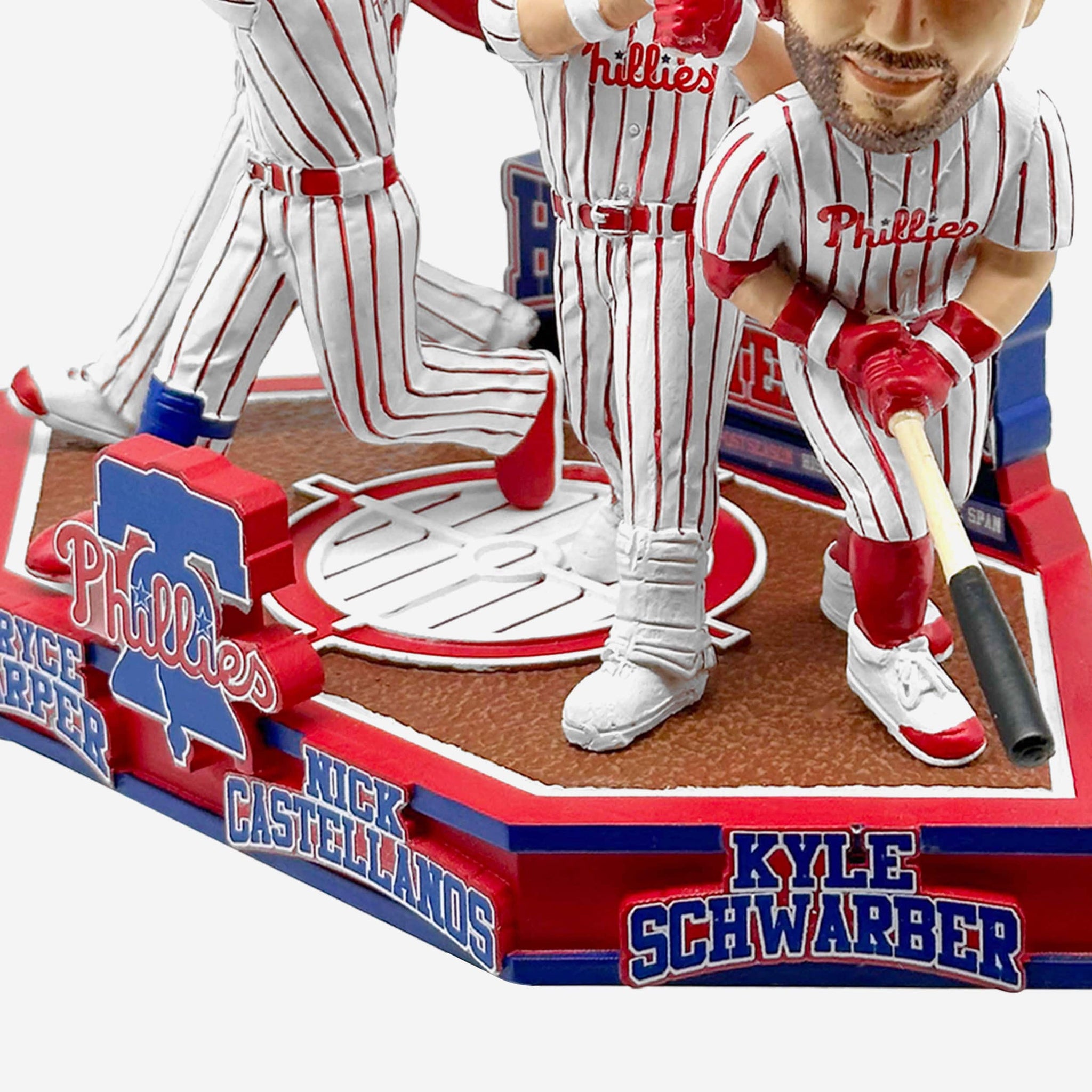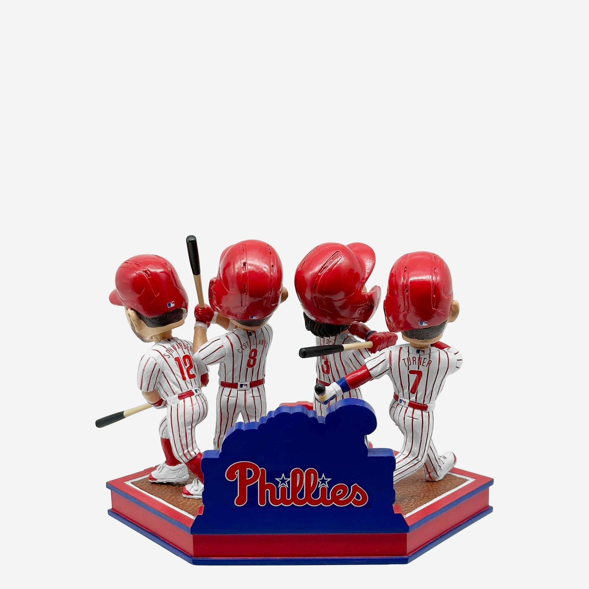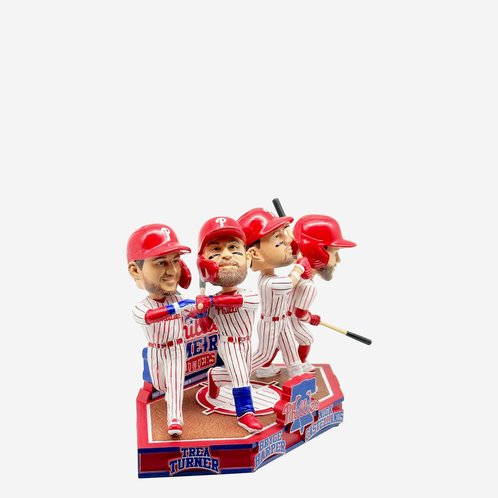 - Portrays Bryce Harper, Nick Castellanos, Kyle Schwarber, and Trea Turner wearing their white gameday uniforms in batting action poses, ready to crush some more dingers