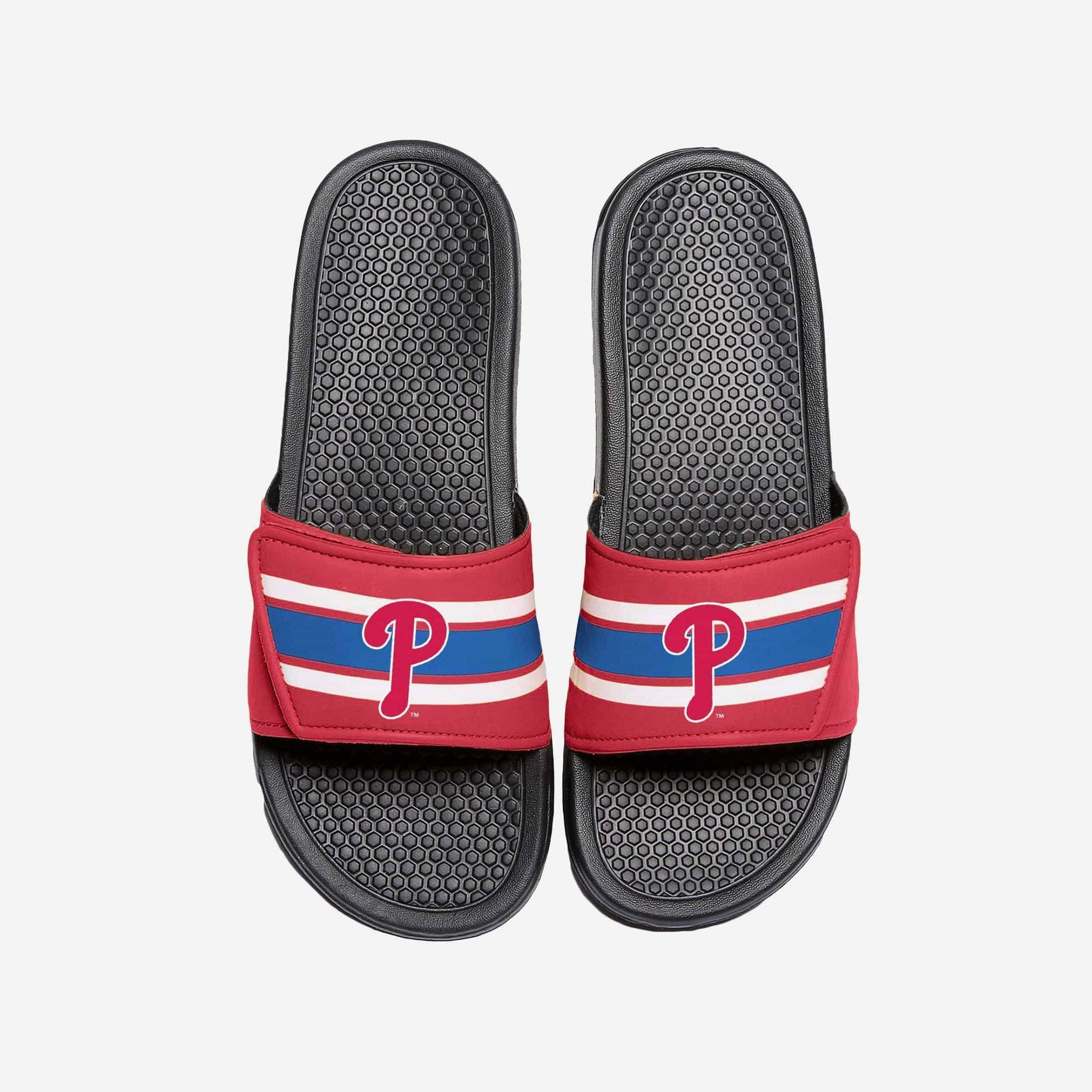 They say to always put your best foot forward in life. But both of your feet will look so good in these Philadelphia Phillies Stripe Legacy Velcro Sport Slides that you might have a hard time determining which one is your best foot. Good problem to have.