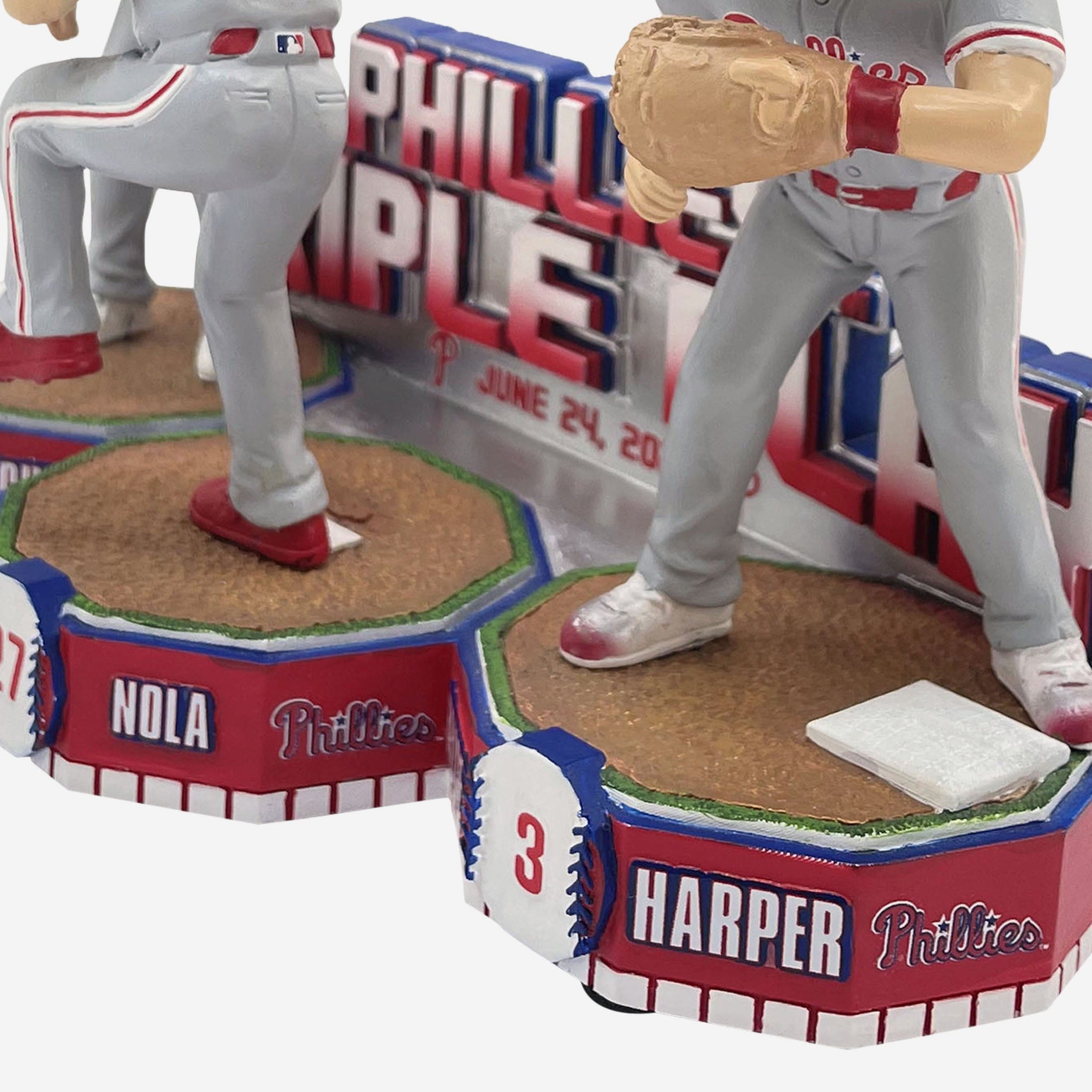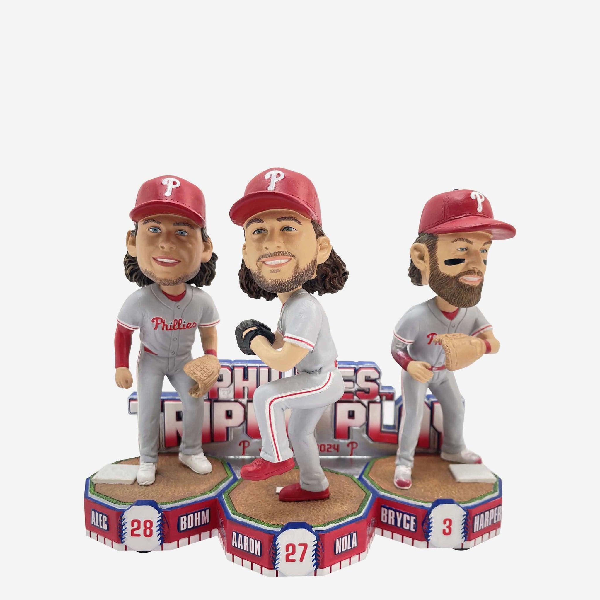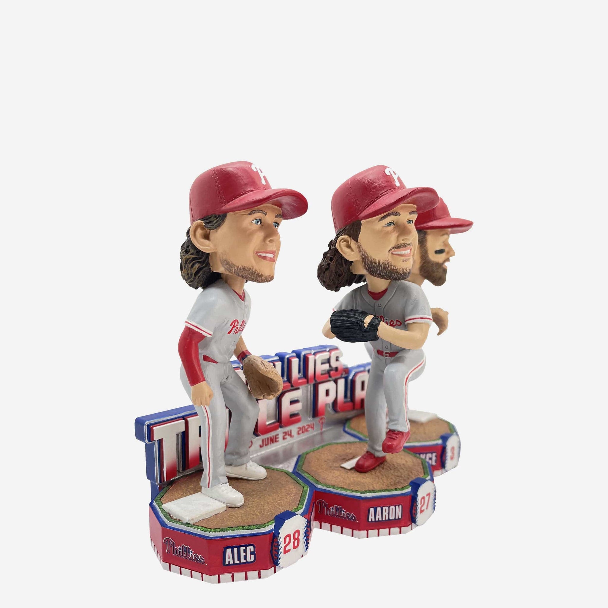 One out is pretty good. A double play is even better. But this Philadelphia Phillies Triple Play Mini Bobblehead Scene, featuring Aaron Nola, Bryce Harper, and Alec Bohm is the absolute best!