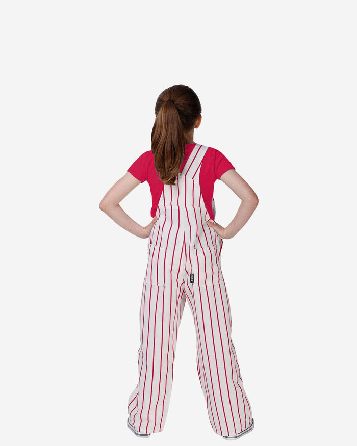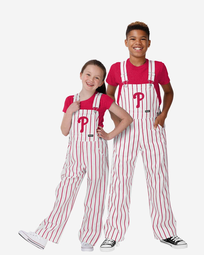 Show your team spirit in these stylish and comfortable Philadelphia Phillies Youth Pinstripe Bib Overalls. With their all-over team-colored design and bold team logo display, these overalls are the perfect way to show your support for the Philadelphia Phillies while showing off some pinstriped style that will go great with your team jersey and the rest of your team gear. The bib pocket is perfect for storing your young fans toys, crayons, or other essentials, and the adjustable bib shoulder straps ensure a comfortable fit. Two back pockets provide even more storage space.