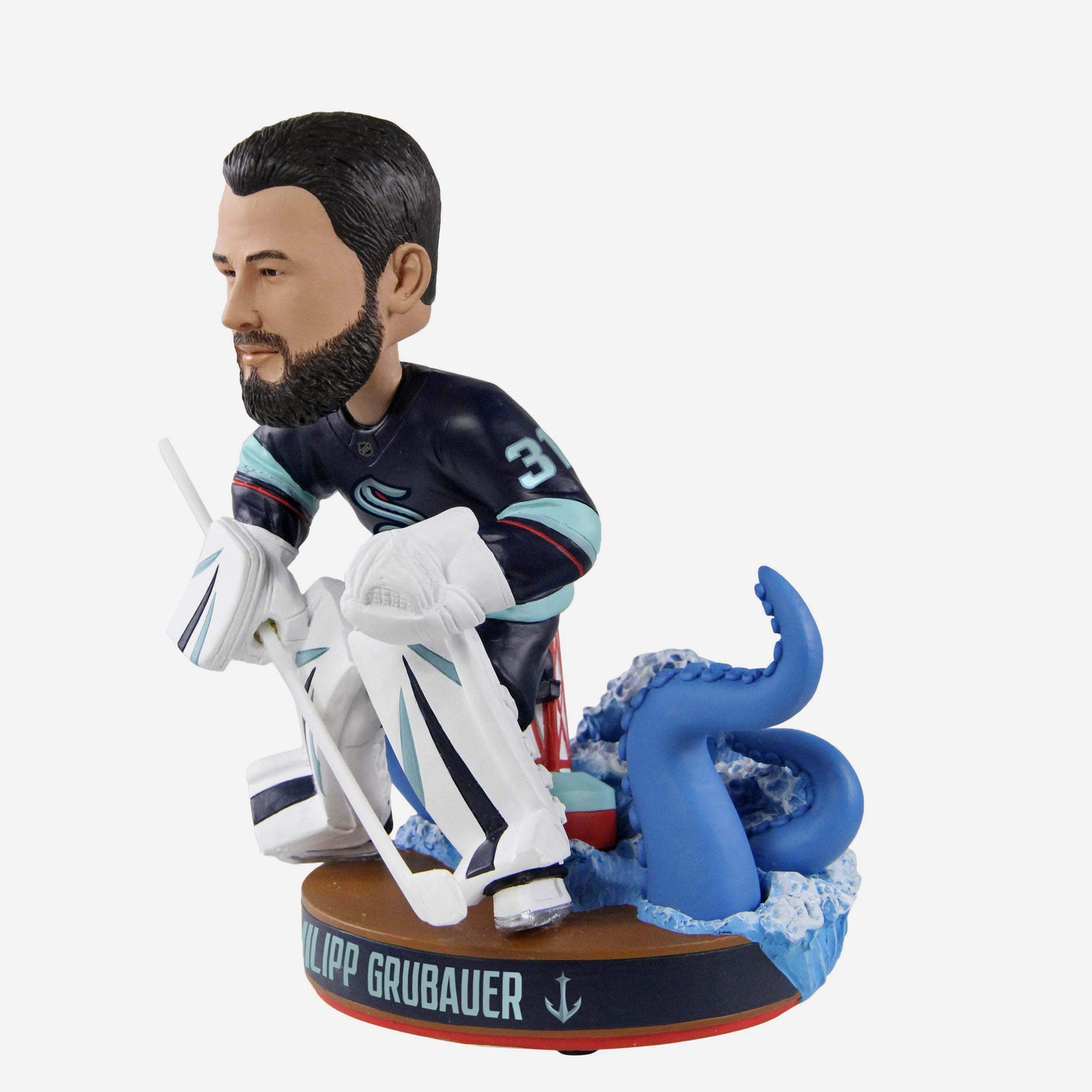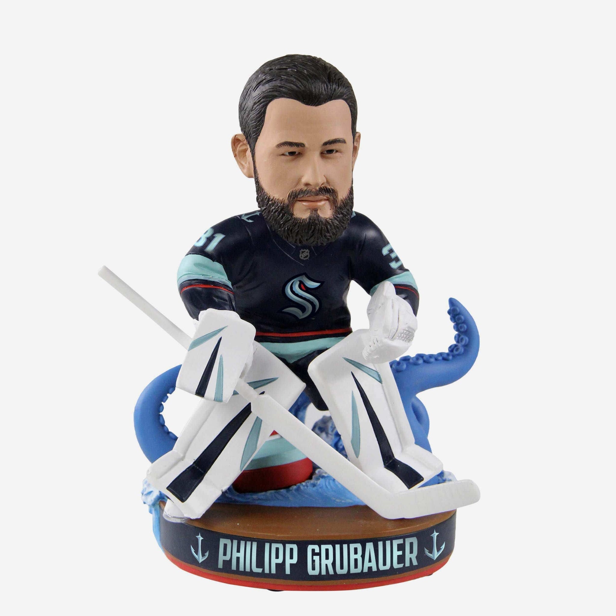 The NHL has set sail for new waters, and these waters are Kraken territory! Release the Kraken and commemorate the first season of many with this Phillip Grubauer Seattle Kraken Inaugural Bobblehead.
