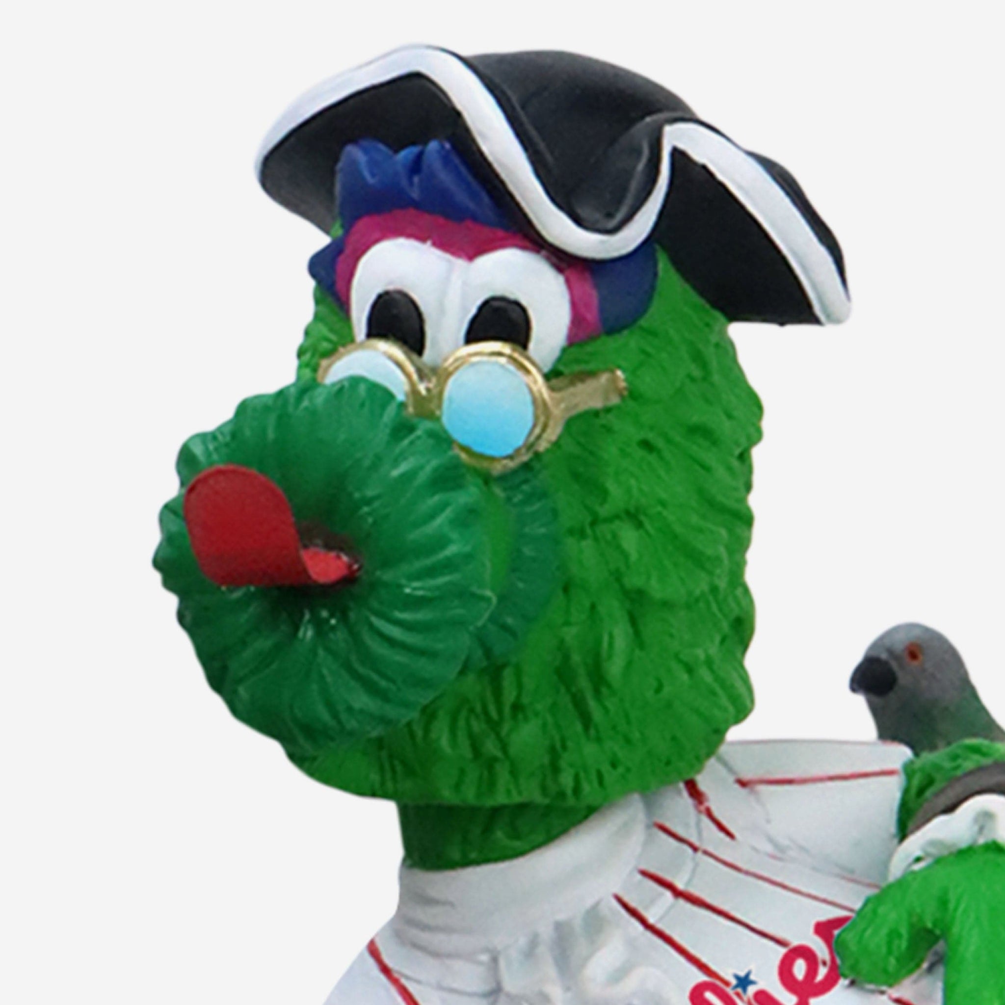 Philly’s founding Phanatic is ready to ring the bell! Make a revolutionary addition to your collection with the Phillie Phanatic & Ben Franklin Philadelphia Phillies Park Bench Dual Bobblehead.