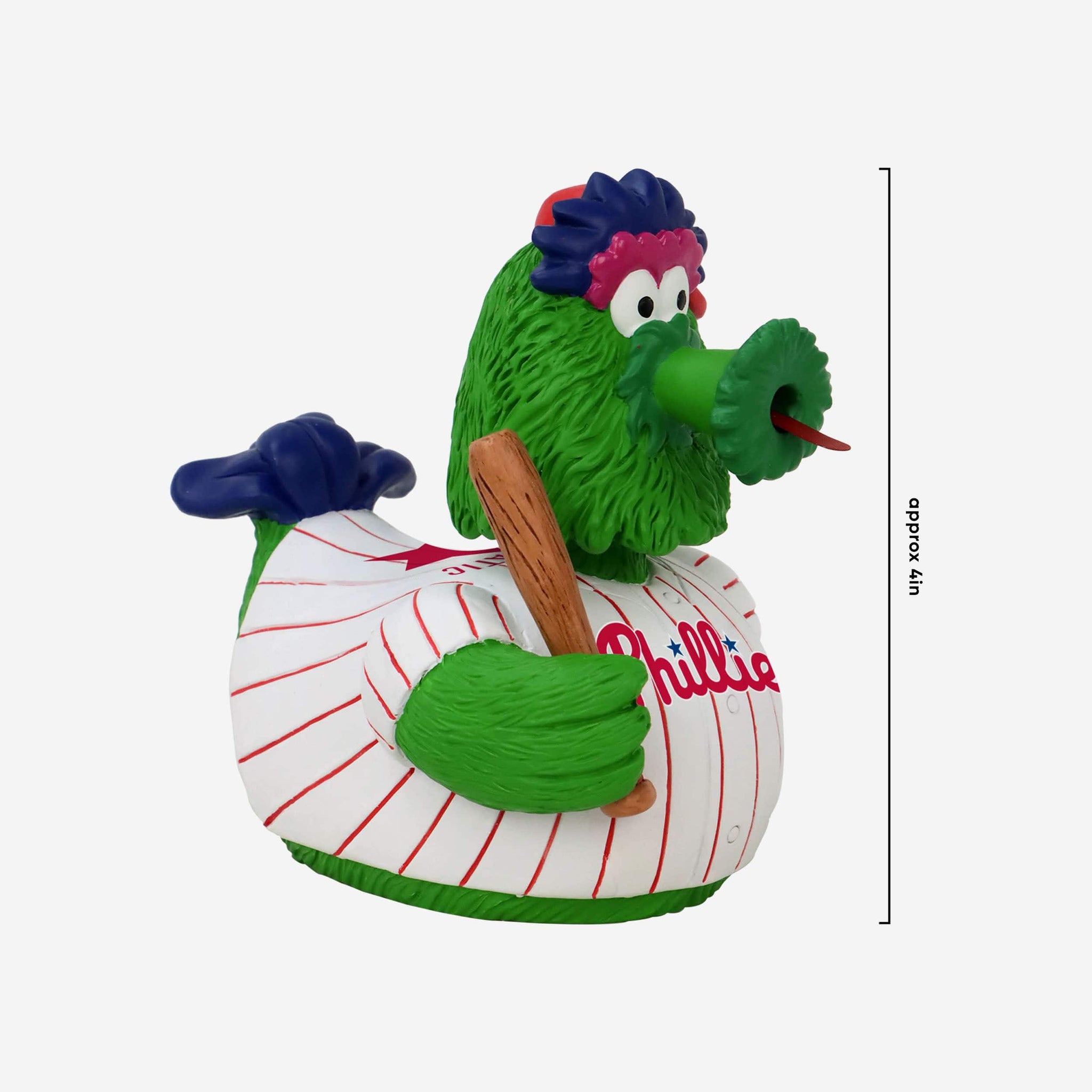 • Portrays a duck figure of Phillie Phanatic in his white gameday uniform and team cap, ready to make a splash in your collection