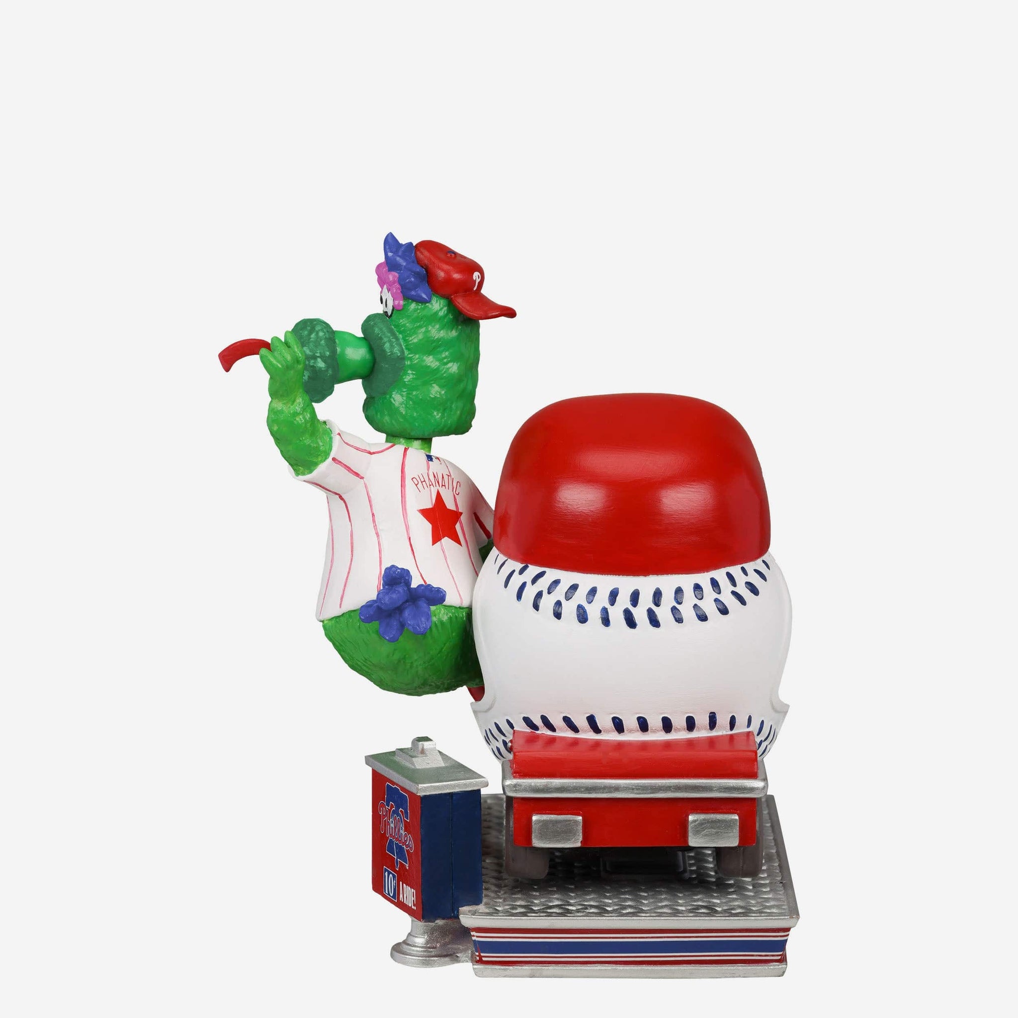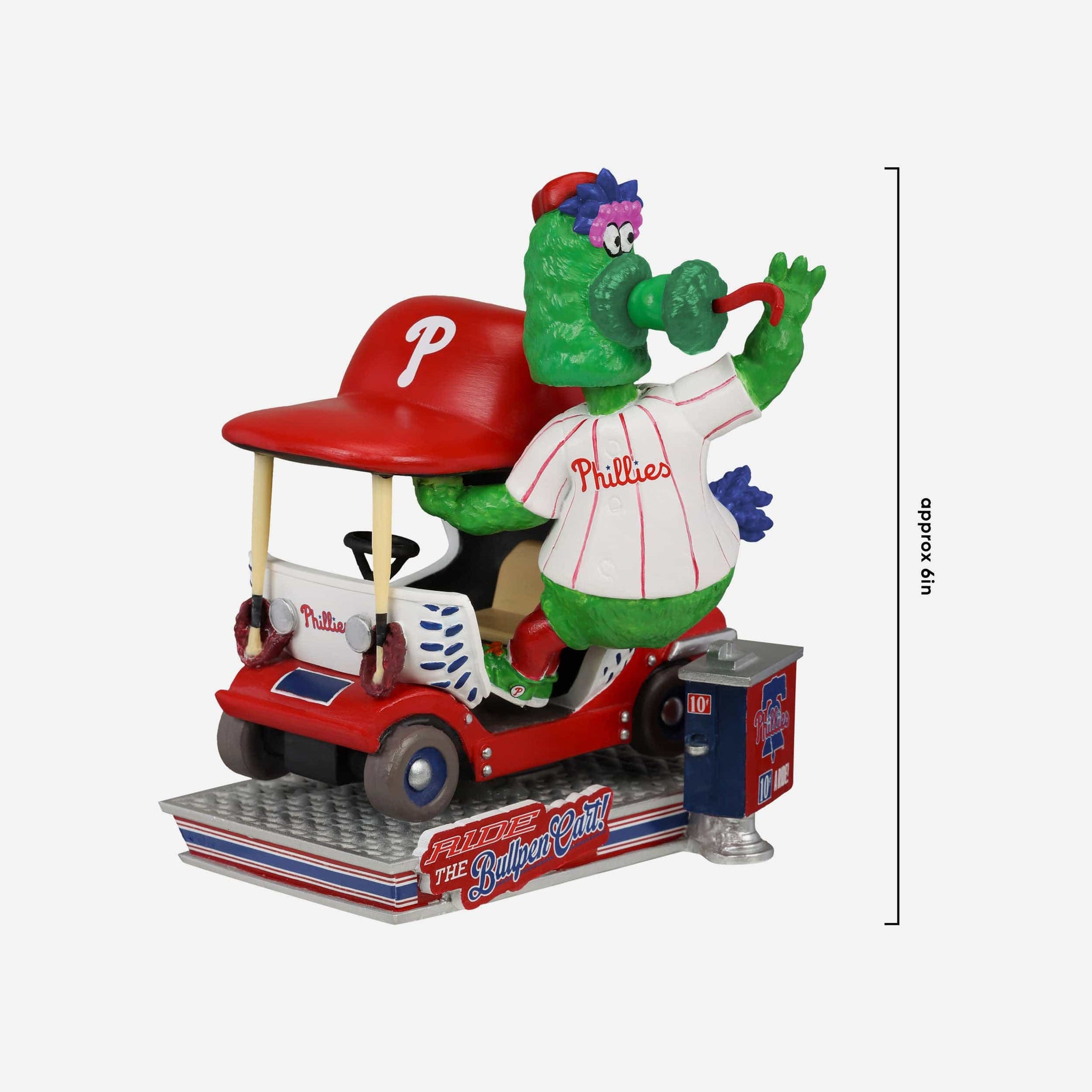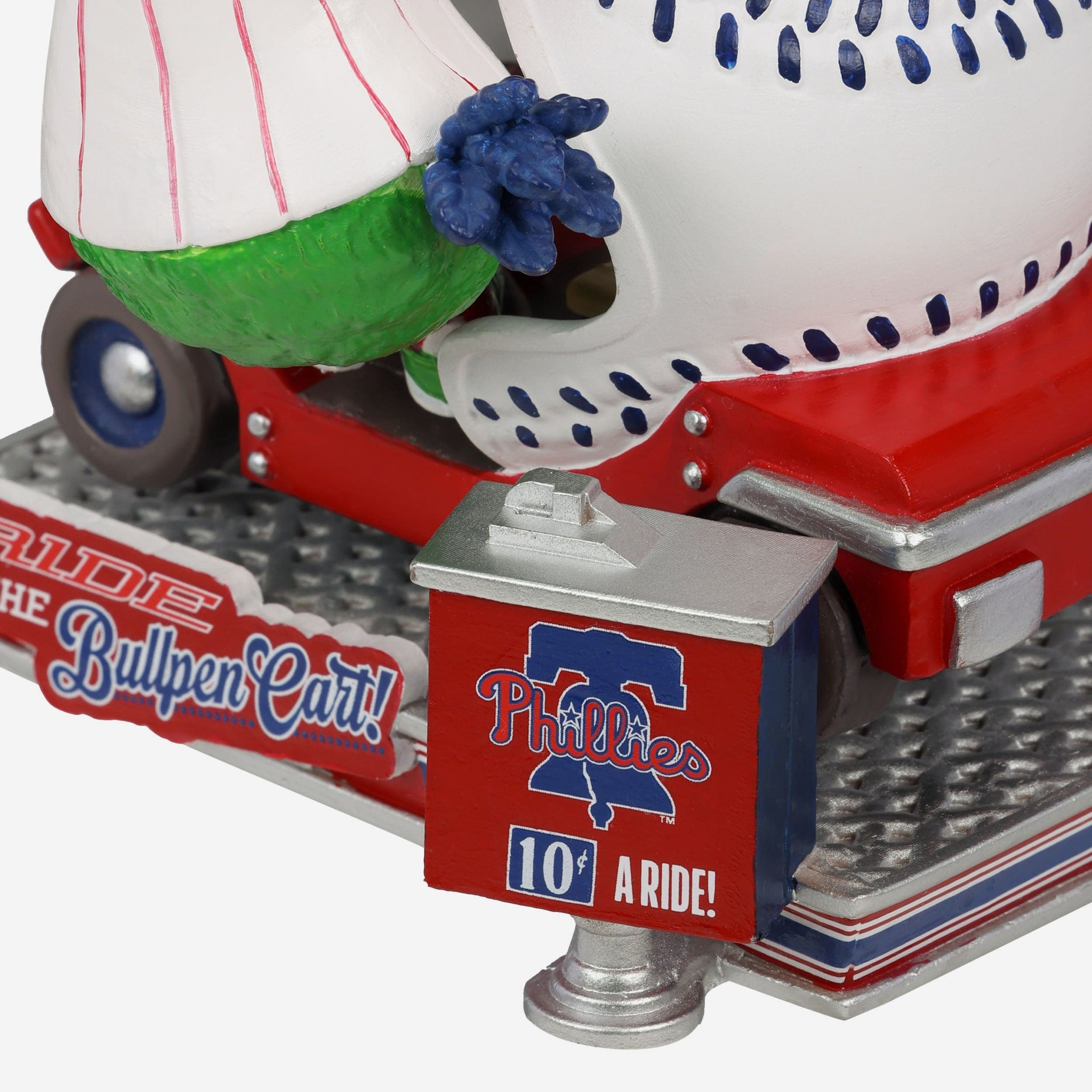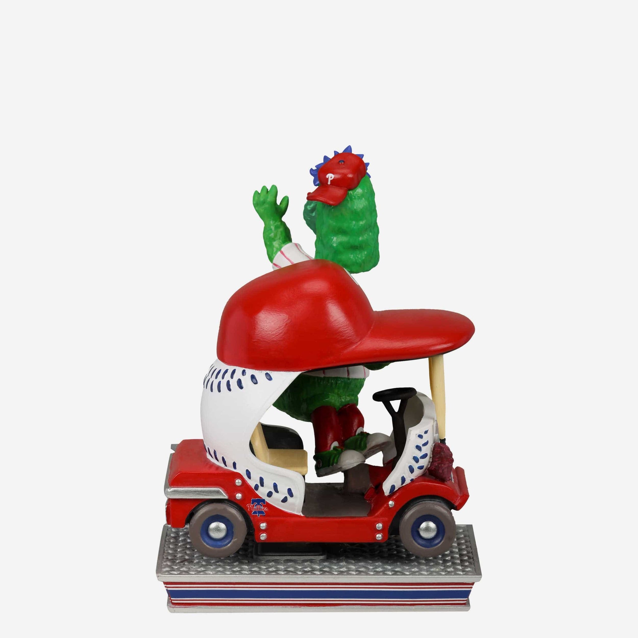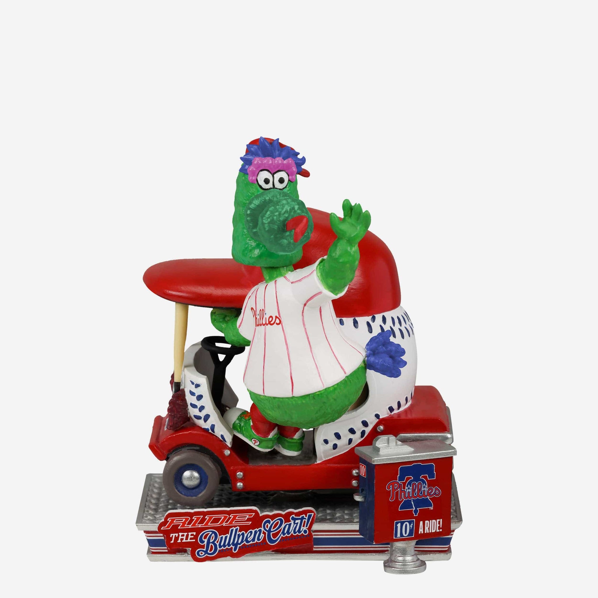 Ride the bullpen cart with Phillie Phanatic! Showcase some Philly fun in your fancave with the Phillie Phanatic Philadelphia Phillies Bullpen Cart Mascot Bobblehead.