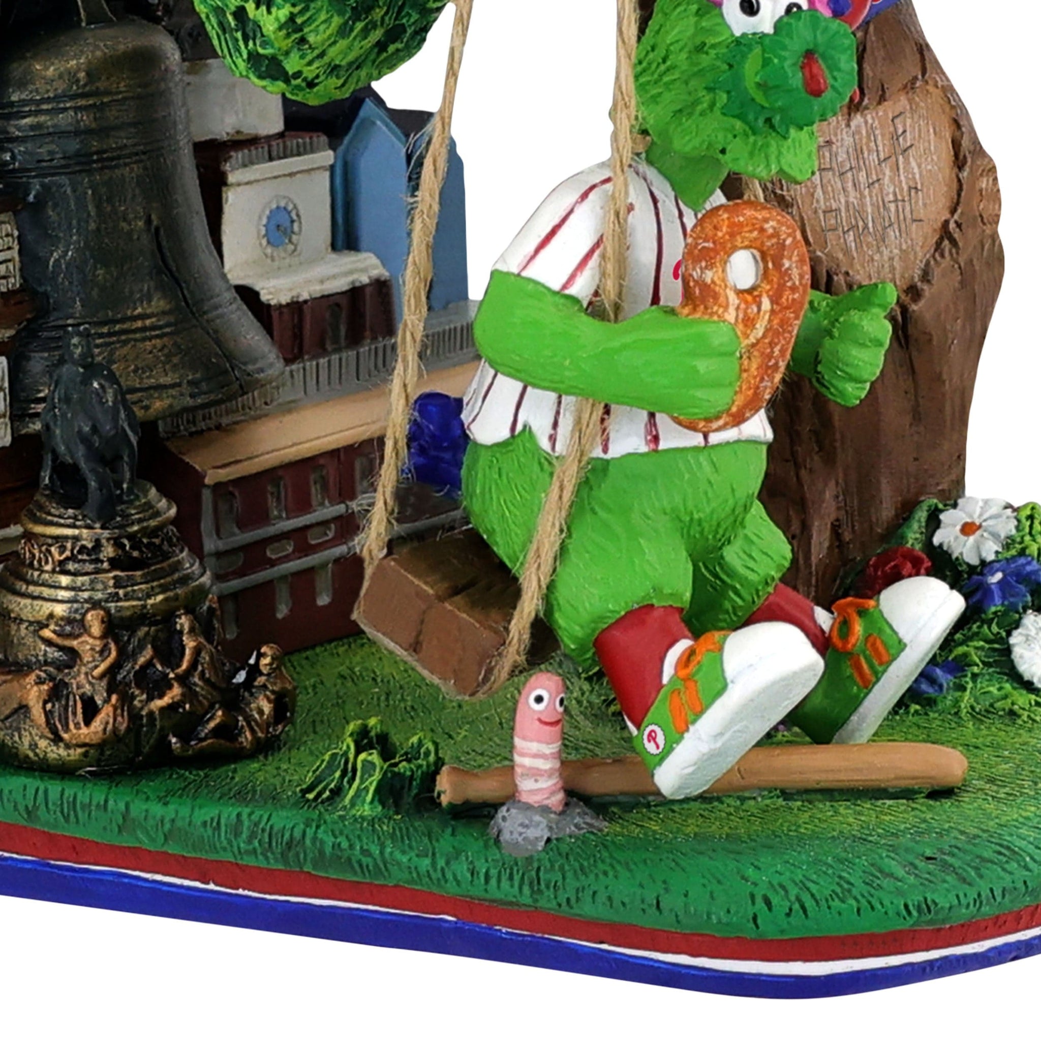 Swing into Philly fun! The Phanatic is ready to add hometown hype to your shelf with this Phillie Phanatic Philadelphia Phillies City Park Swing Mini Bobblehead.