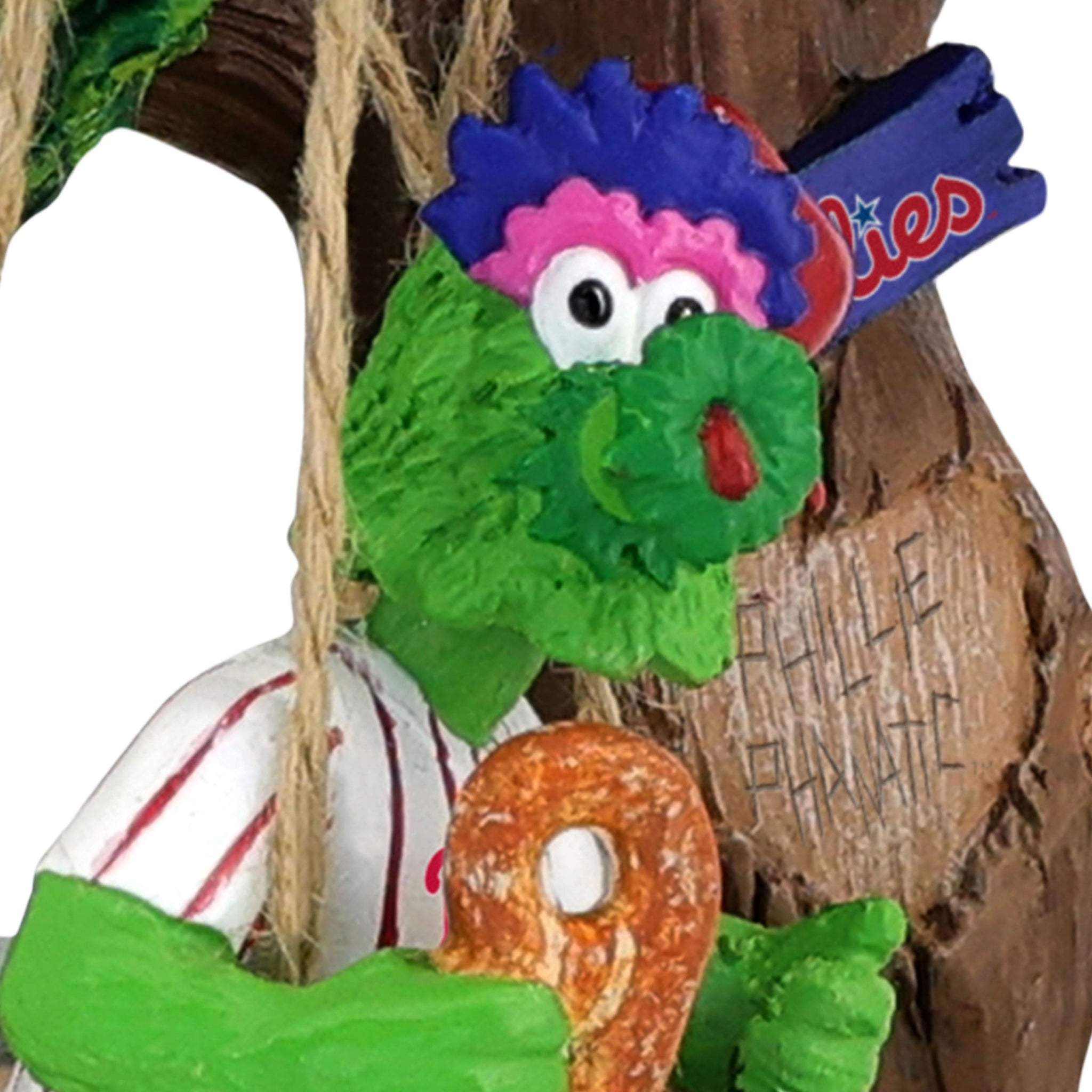 • Portrays Phillie Phanatic wearing his gameday uniform, sitting on a city park swing, and holding a pretzel, ready to cheer on his team