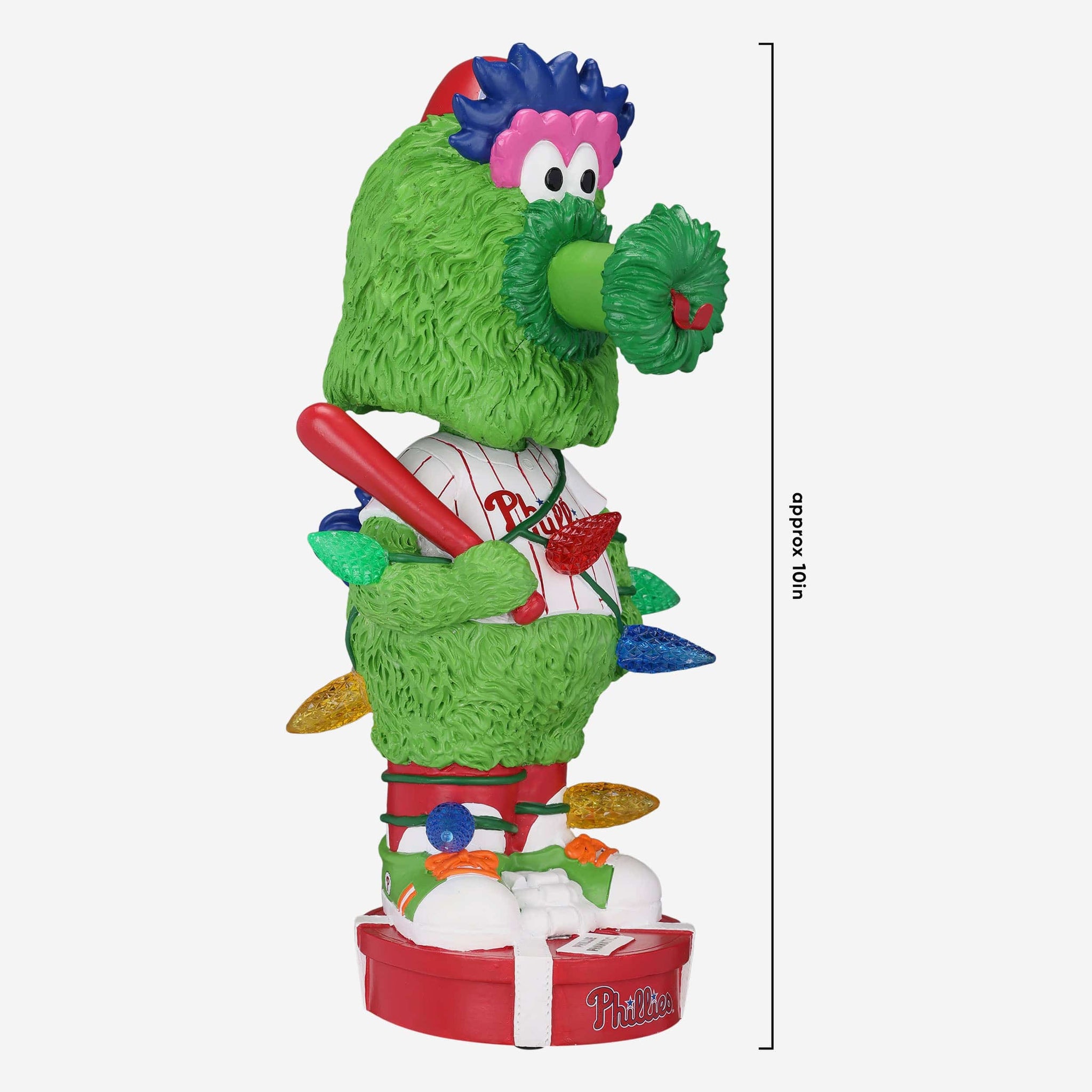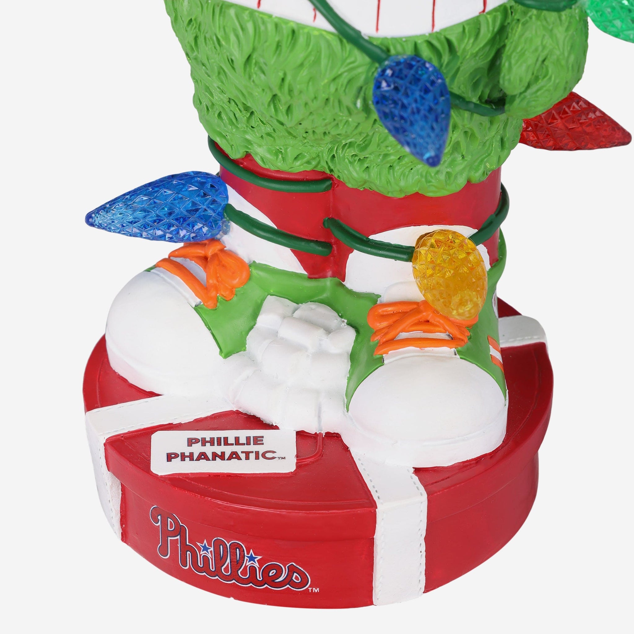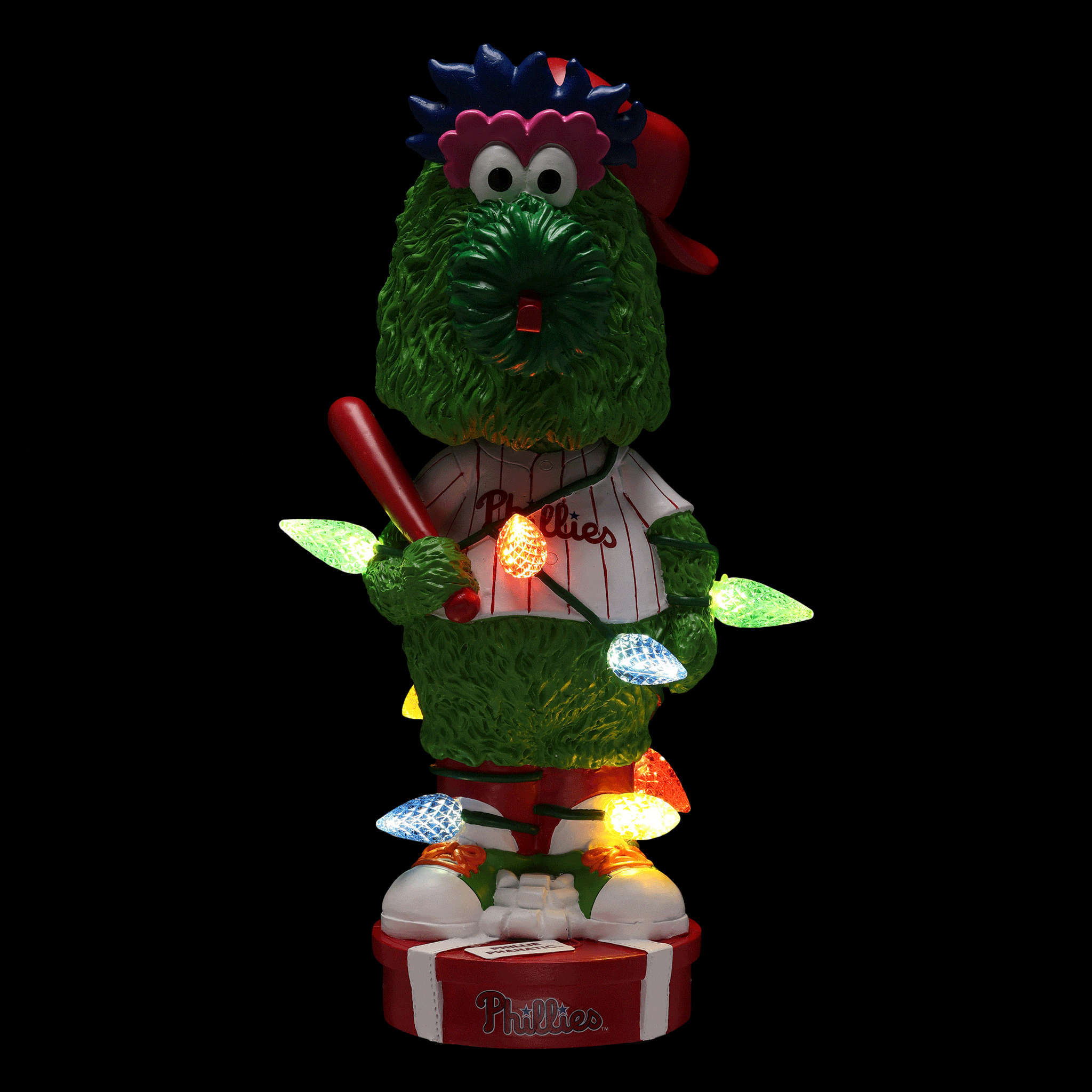 Jingle bells, jingle bells, jingle all the way. No matter the time of year, one look at this Phillie Phanatic Philadelphia Phillies Holiday Lights Bobblehead will have you feeling holly jolly!