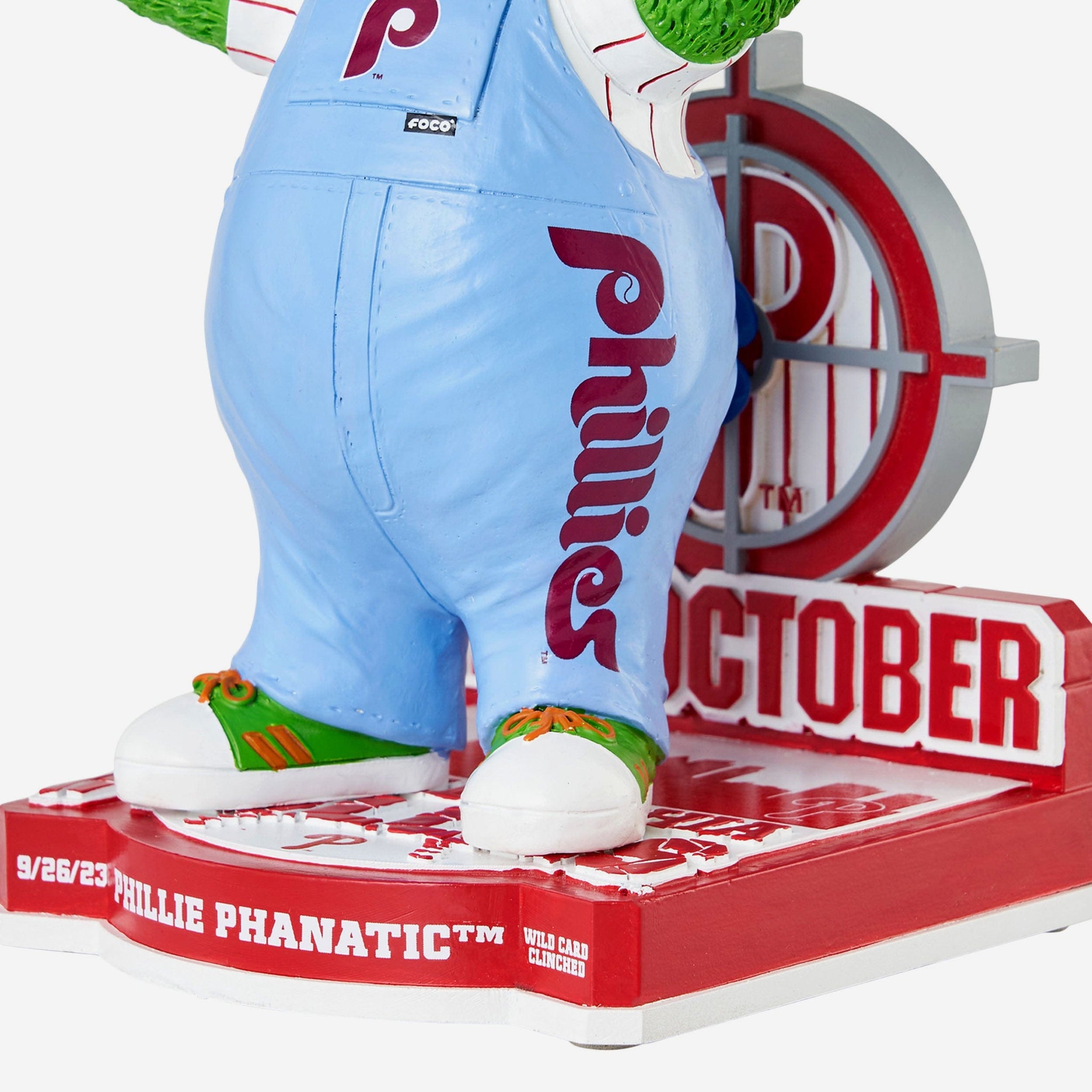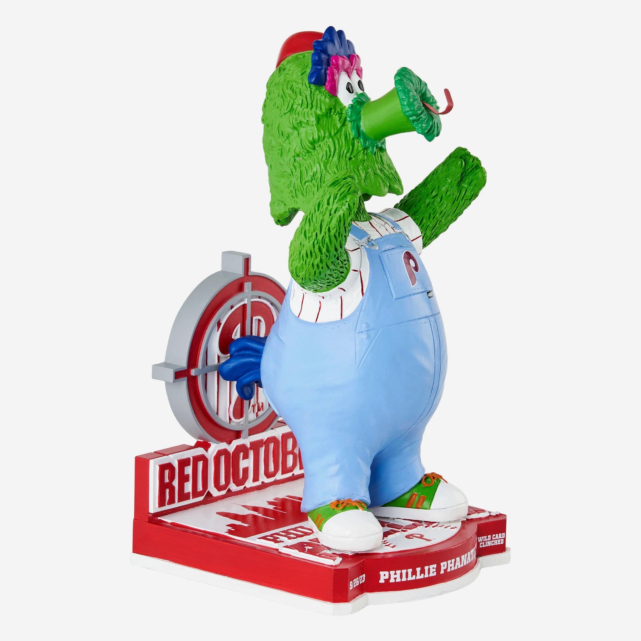 Red October. Blue overalls. Turn the calendar and get red-y for the biggest month of the year with this Phillie Phanatic Philadelphia Phillies Powder Blue Bib Overalls Red October Mascot Bobblehead.