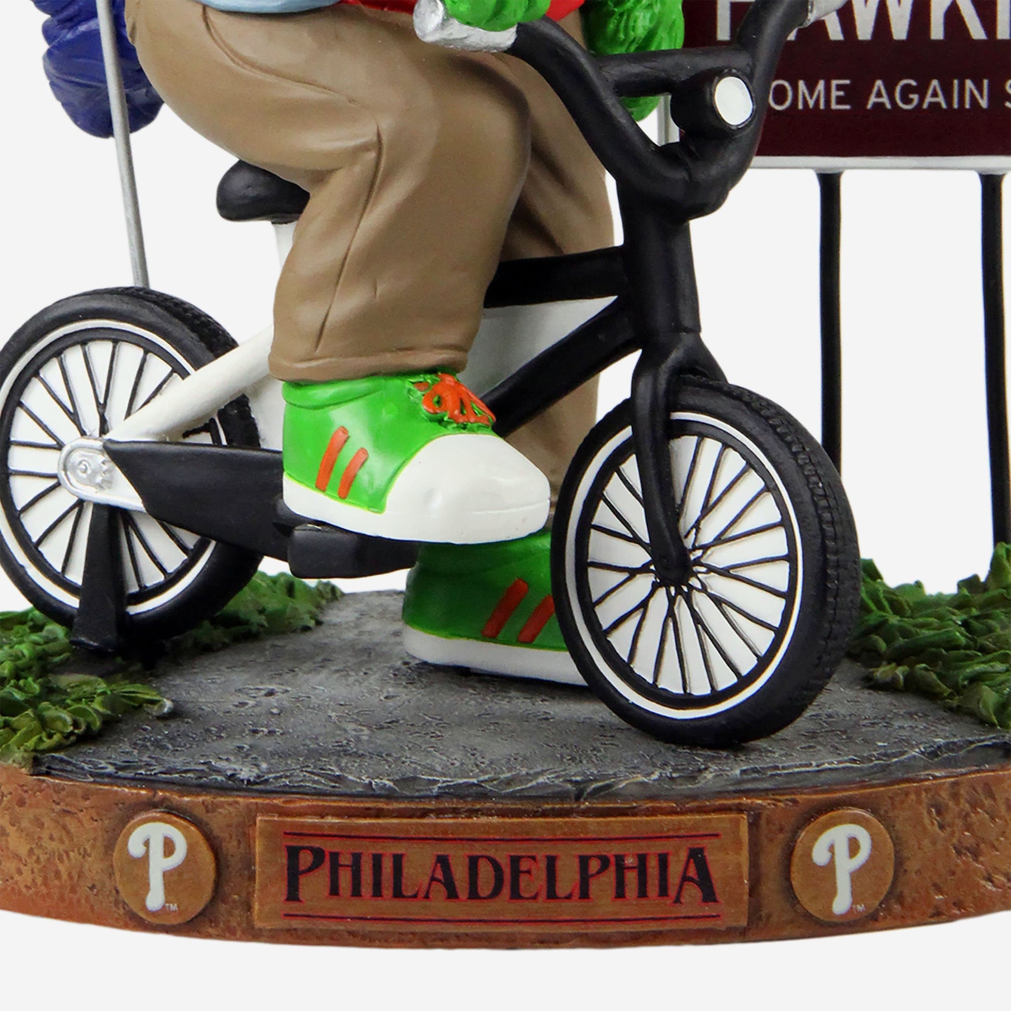 Welcome to Hawkins, Indiana. Home of the Stranger Things kids, and now, your favorite mascot. Get on your bicycle and join this Phillie Phanatic Philadelphia Phillies Stranger Things Mascot on Bike Bobblehead for an adventure. Just make sure you're home by dinner.