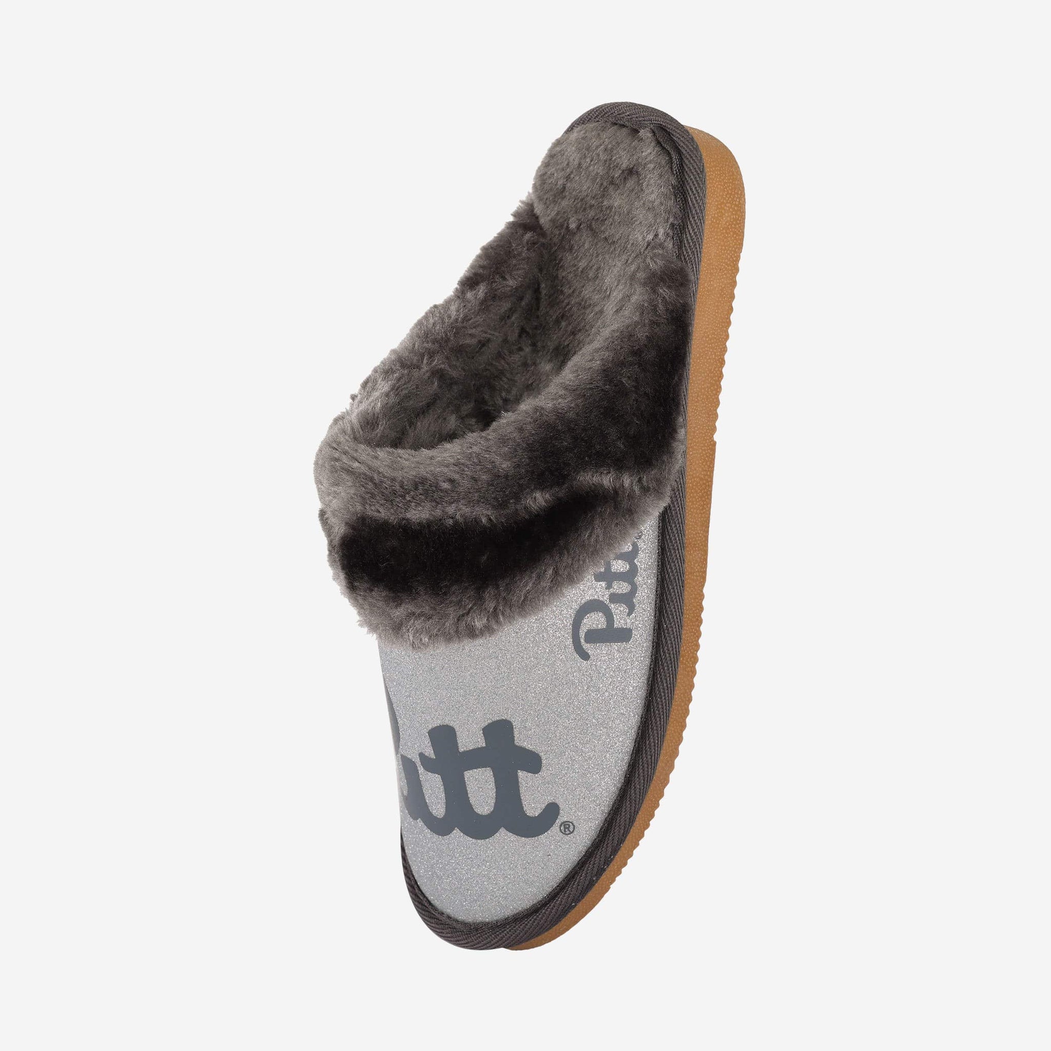 Pittsburgh Panthers Womens Glitter Open Fur Moccasin Slipper