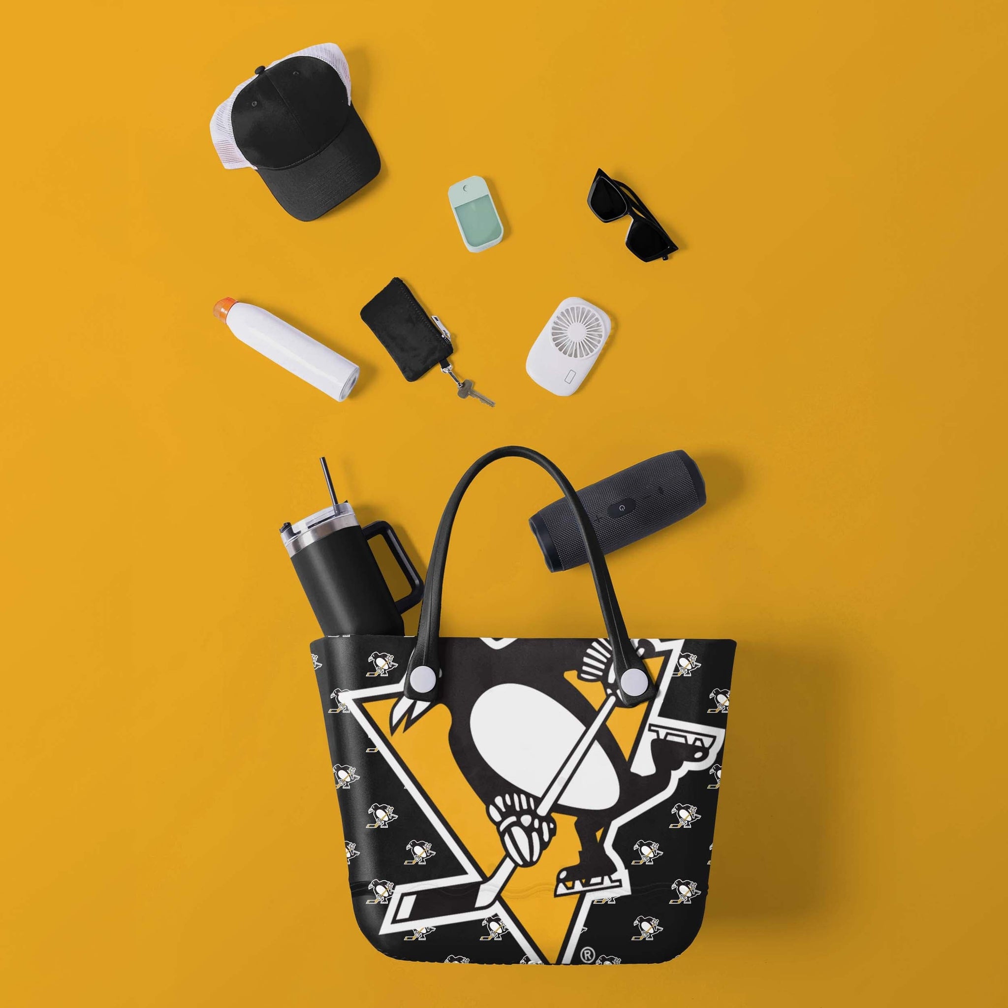 Looking for a bag as durable and dependable as your team spirit? You've found it. Whether you're running the tailgate, hitting the beach, or going on any adventure, pack up your fandom and take it on the go with this Pittsburgh Penguins Big Logo Mini Print Tailgate Tote Bag.