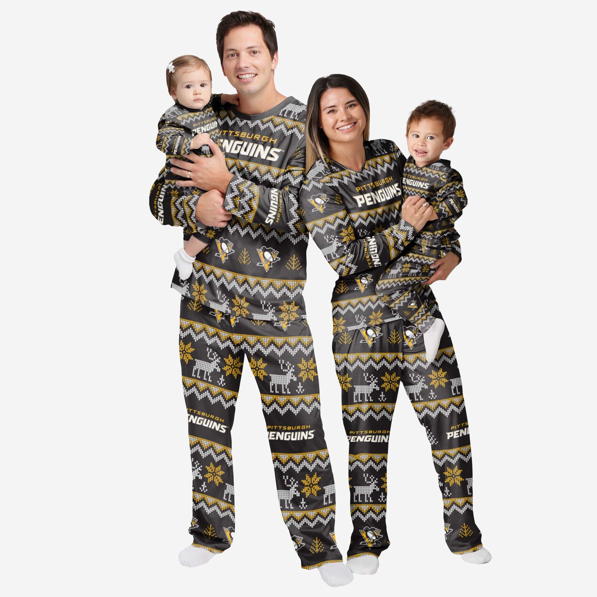 Get your young fan started early this holiday season in these Pittsburgh Penguins Infant Ugly Pattern Family Holiday Pajamas! Your baby will absolutely love these matching Christmas pajamas! Make sure your infant enjoys sweet dreams filled with holiday joy by having them sleep in infant pajamas. Don’t forget to take your holiday photo with the whole family wearing matching Christmas pajamas!