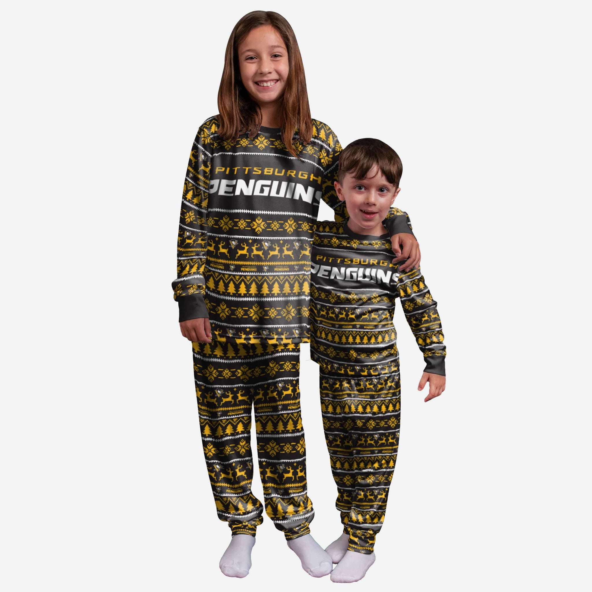 Get some matching family pajamas to turn your good night's sleep into a great night's sleep. You won't want to miss these kids' team pajamas. These youth PJ's are comfortable and show off your team spirit in the form of some sweet youth jammies. Introducing Pittsburgh Penguins Youth Family Holiday Pajamas. Don't forget to take your holiday photo with the family wearing matching Christmas pajamas.