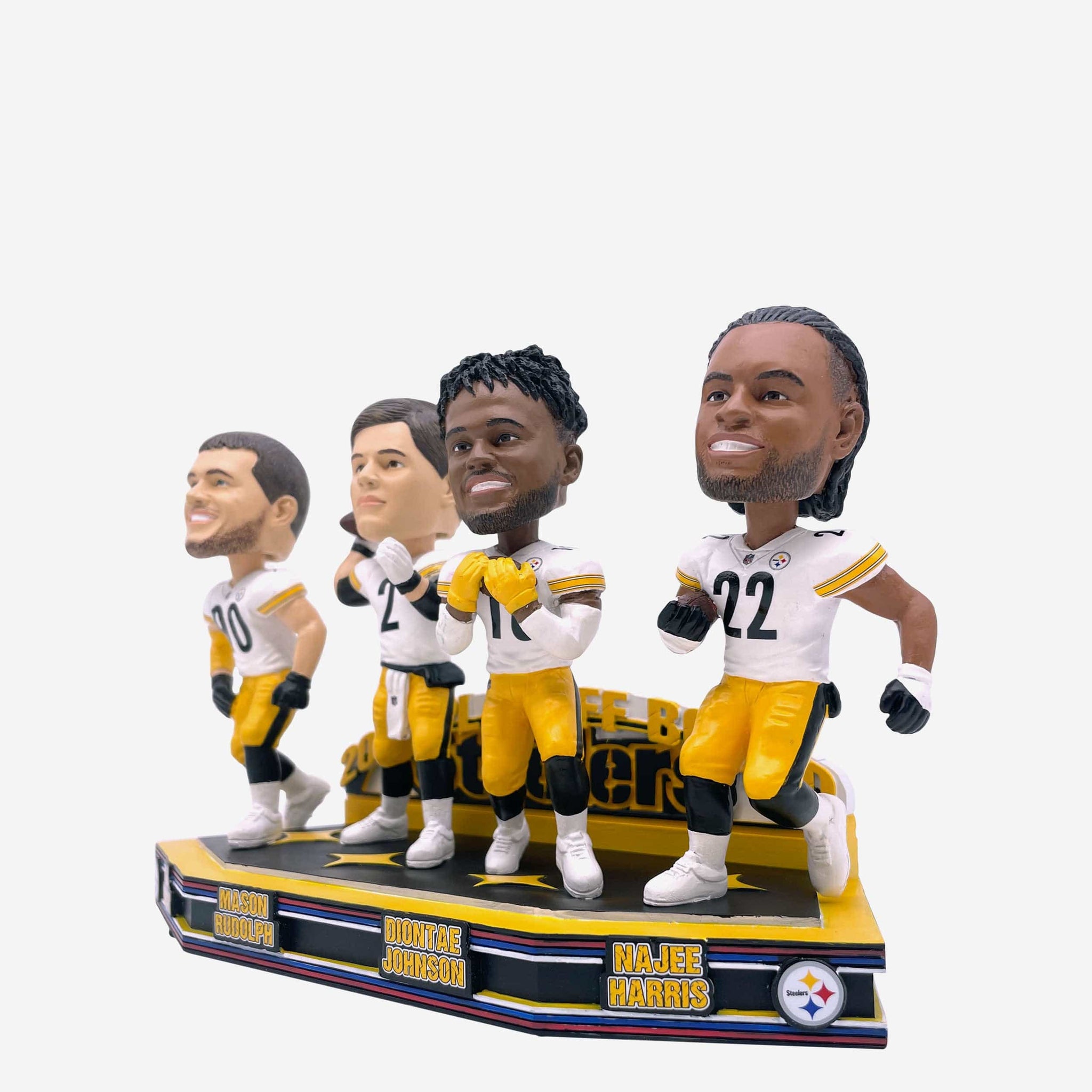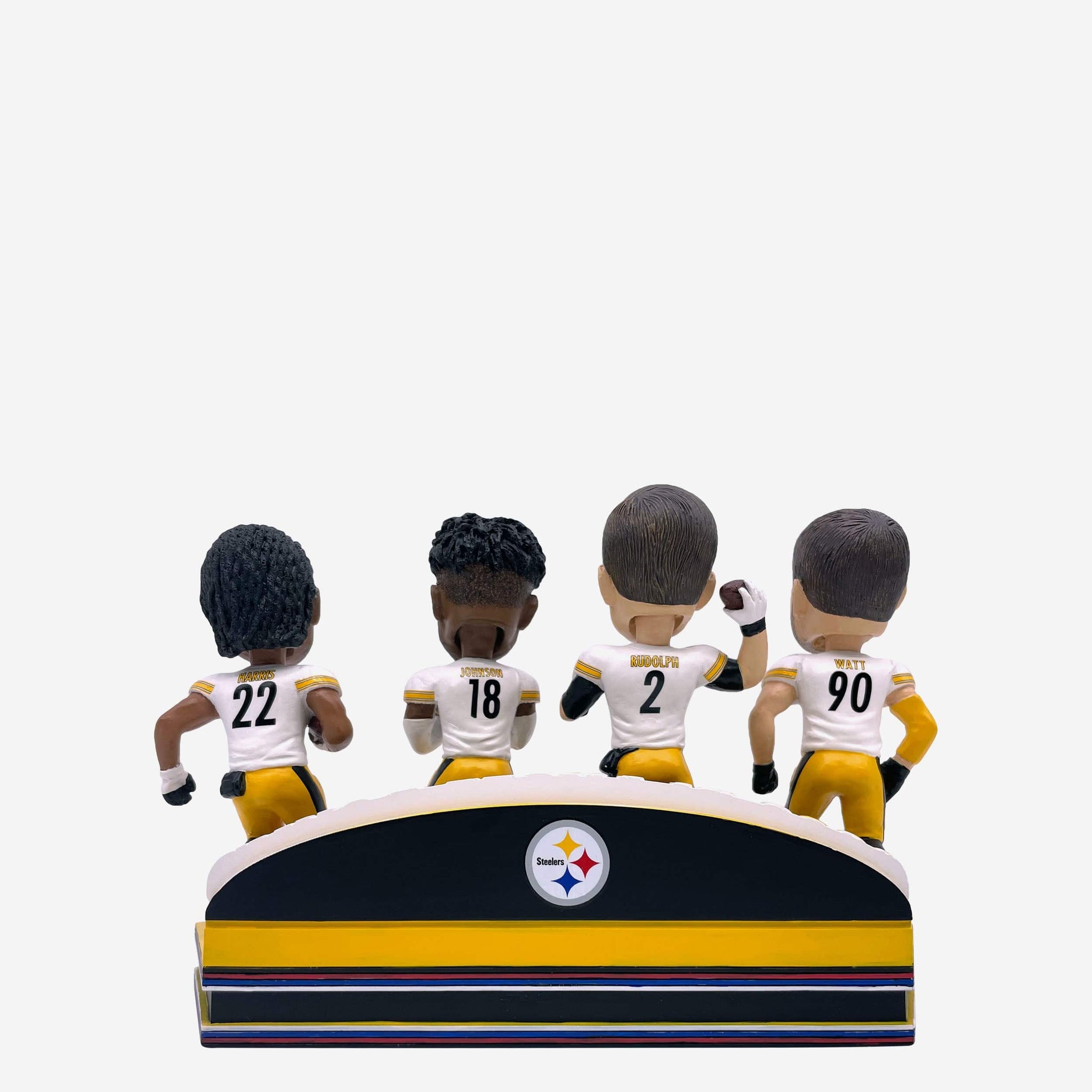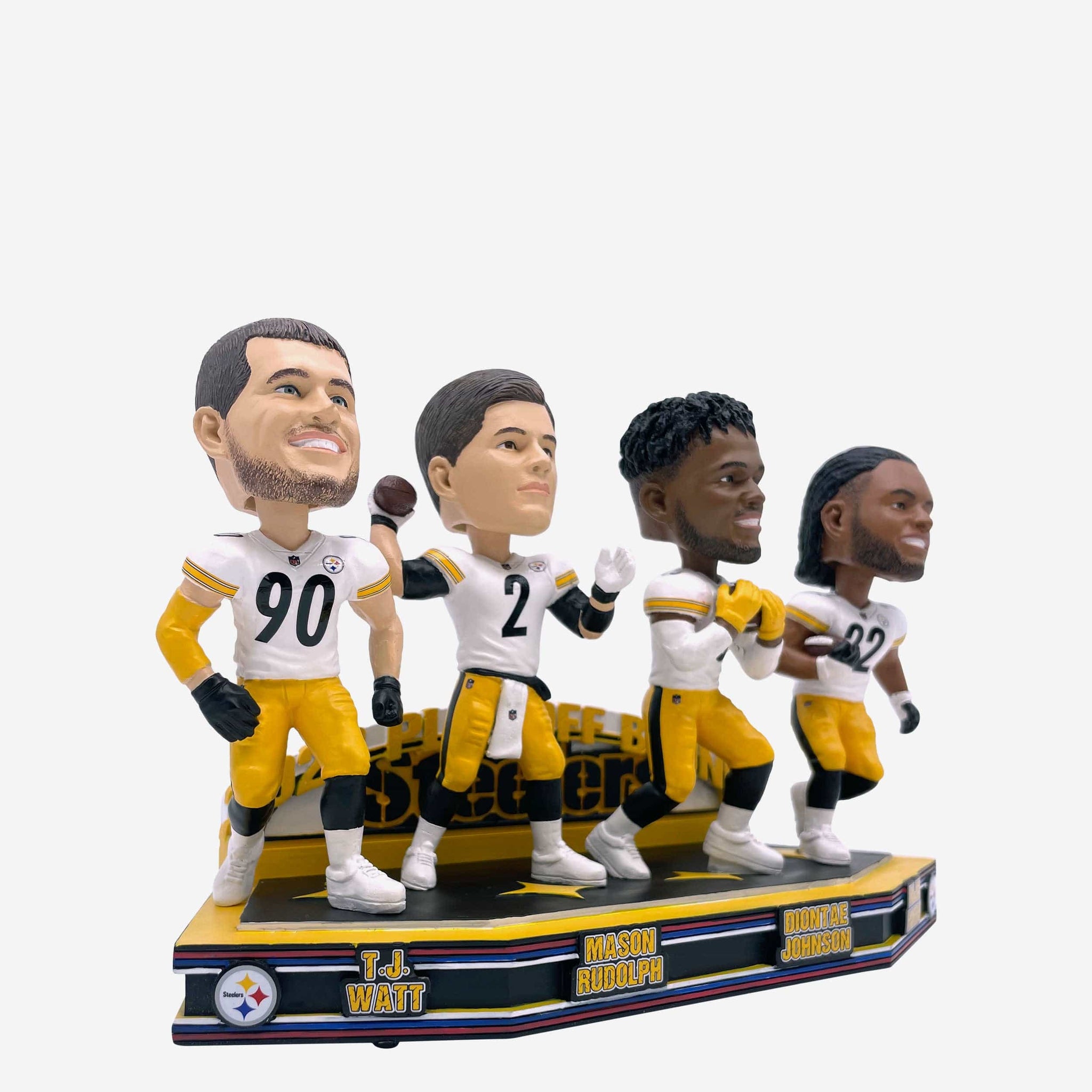 Playoff-bound in Pittsburgh! Join TJ Watt, Mason Rudolph, Diontae Johnson, and Najee Harris in the postseason with the Pittsburgh Steelers 2023 Playoff-Bound Mini Bobblehead Scene!