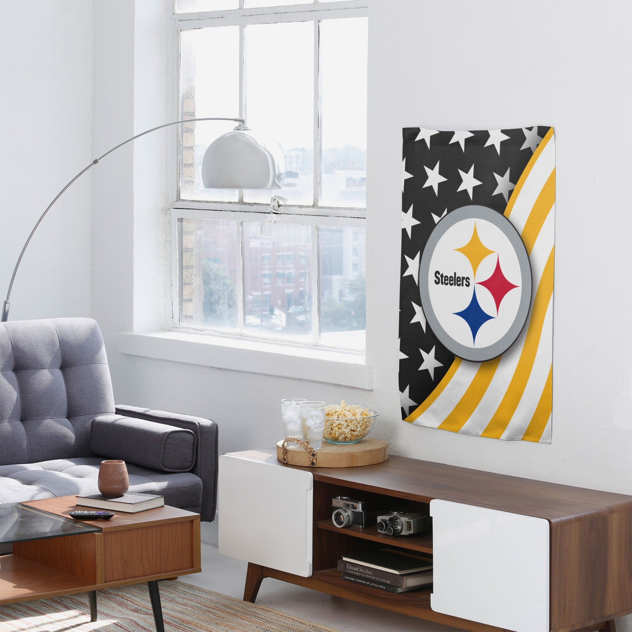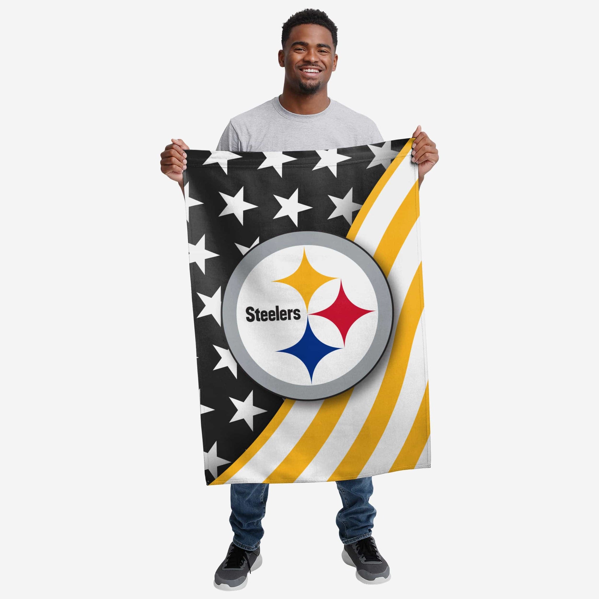 Stars, spirits, and a whole lot of team spirit. Plant your flag as the best fan around by pledging your allegiance to the Pittsburgh Steelers Americana Vertical Flag.