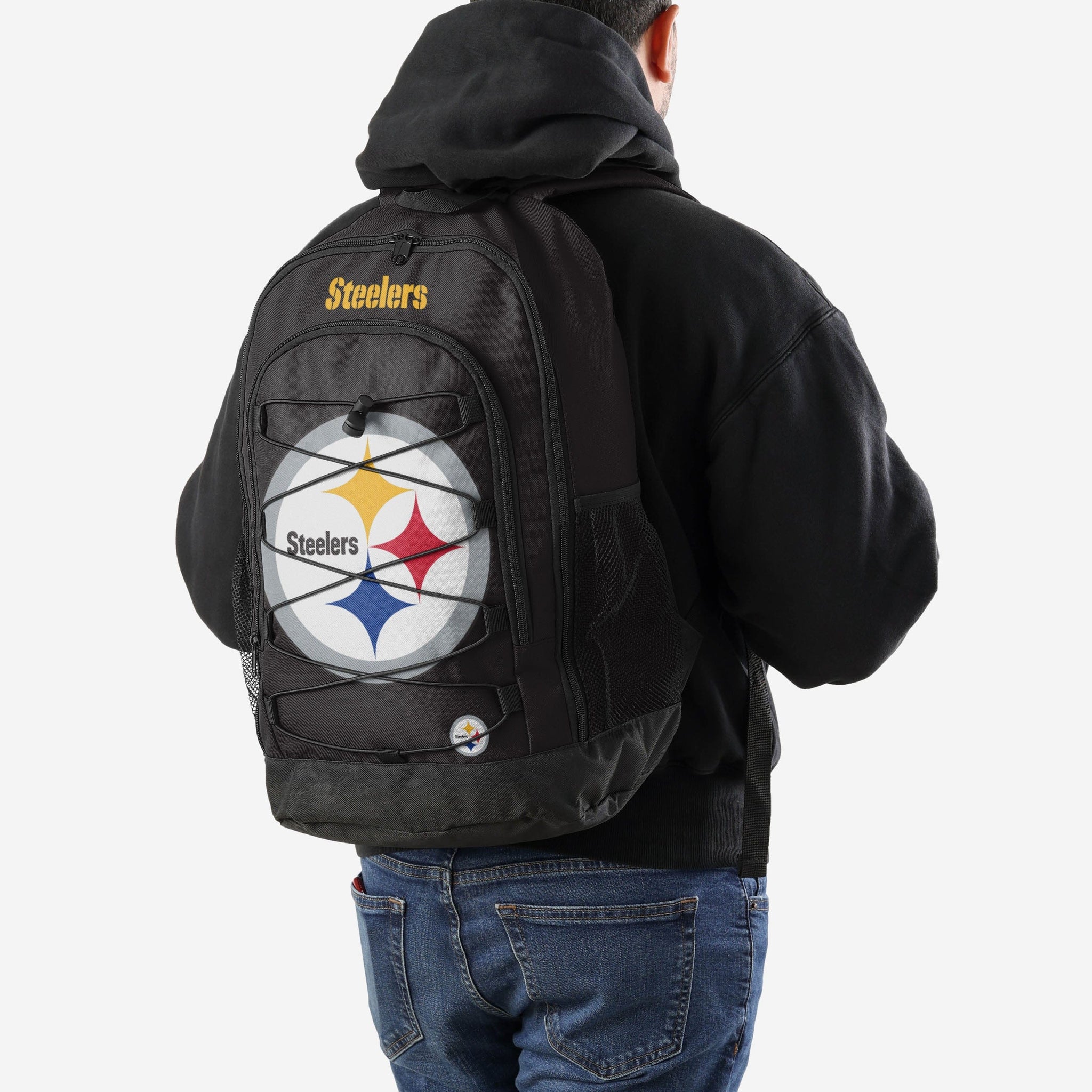 Oh. Em. Bungee. Say hey to the best way to rep the team wherever you go. It's the Pittsburgh Steelers Big Logo Bungee Backpack.