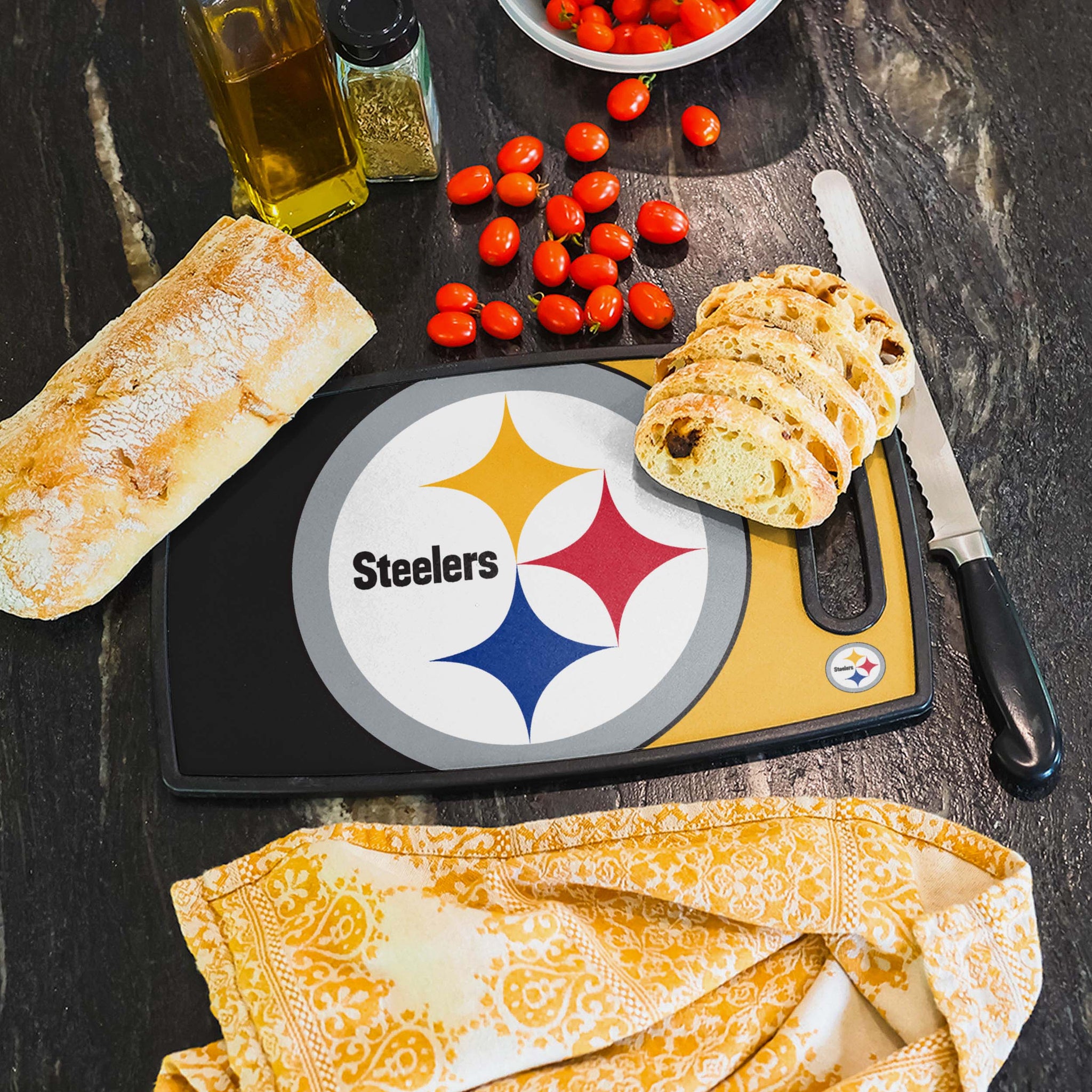 Rep the team while you prep the meal. With this Pittsburgh Steelers Big Logo Cutting Board as your sous chef in the kitchen, your gameday is about to go gourmet.