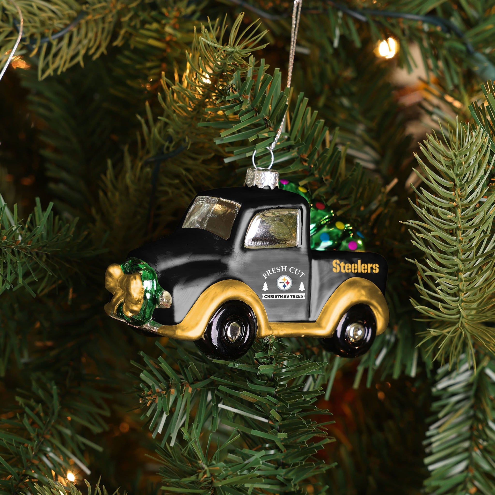 Want to make sure your Christmas tree keeps on truckin' for the holidays? You're in luck thanks to this Pittsburgh Steelers Blown Glass Truck!