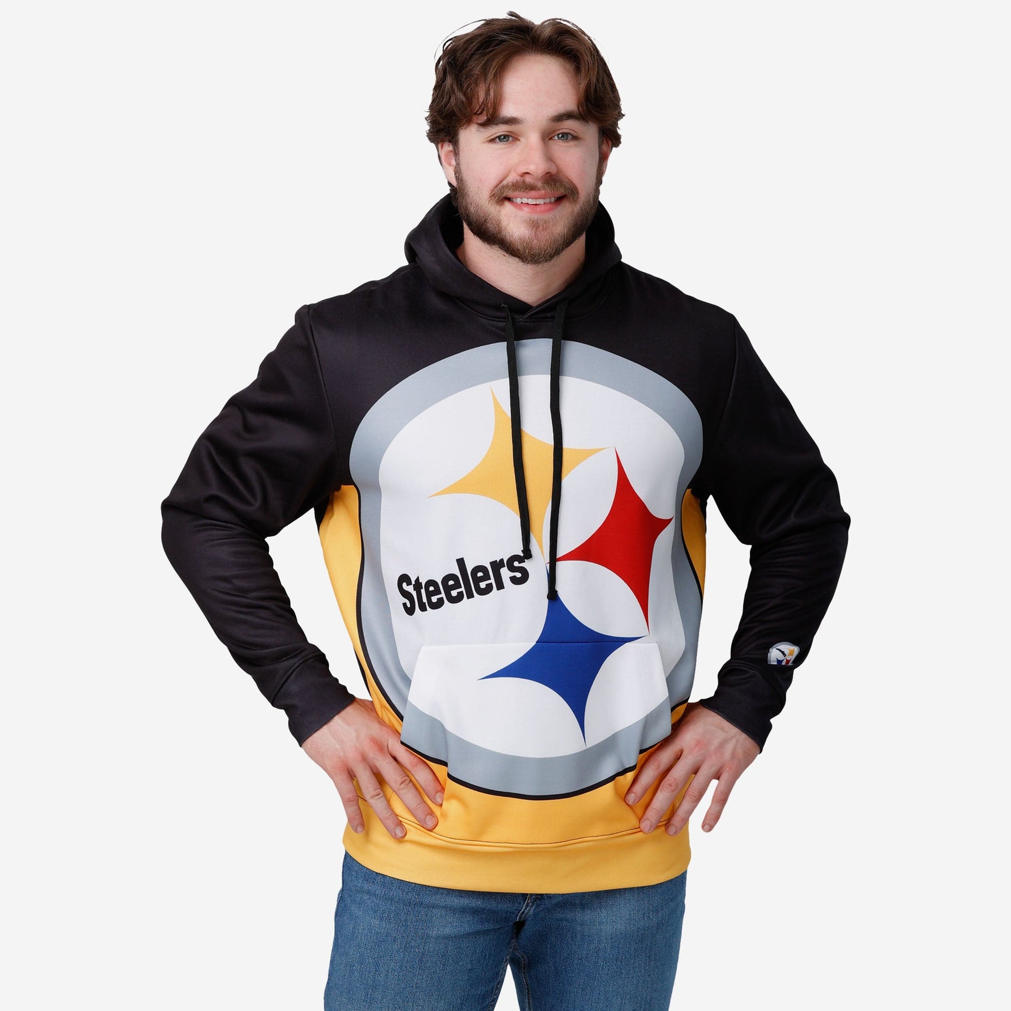 Stay comfortable. Keep warm. Look awesome. From gamedays to grocery runs, the Pittsburgh Steelers Bold Logo Hoodie is a must-have for any true fan's wardrobe.