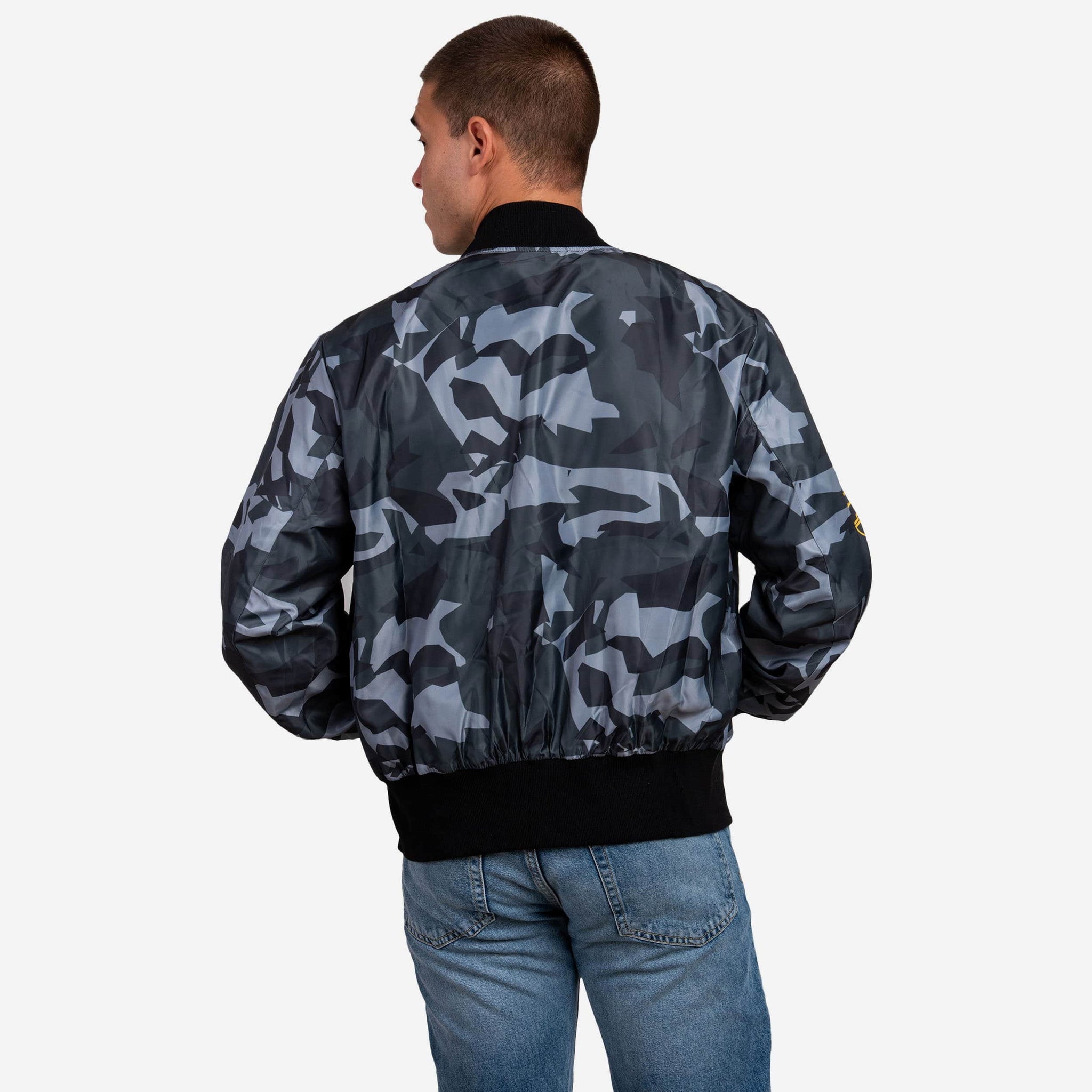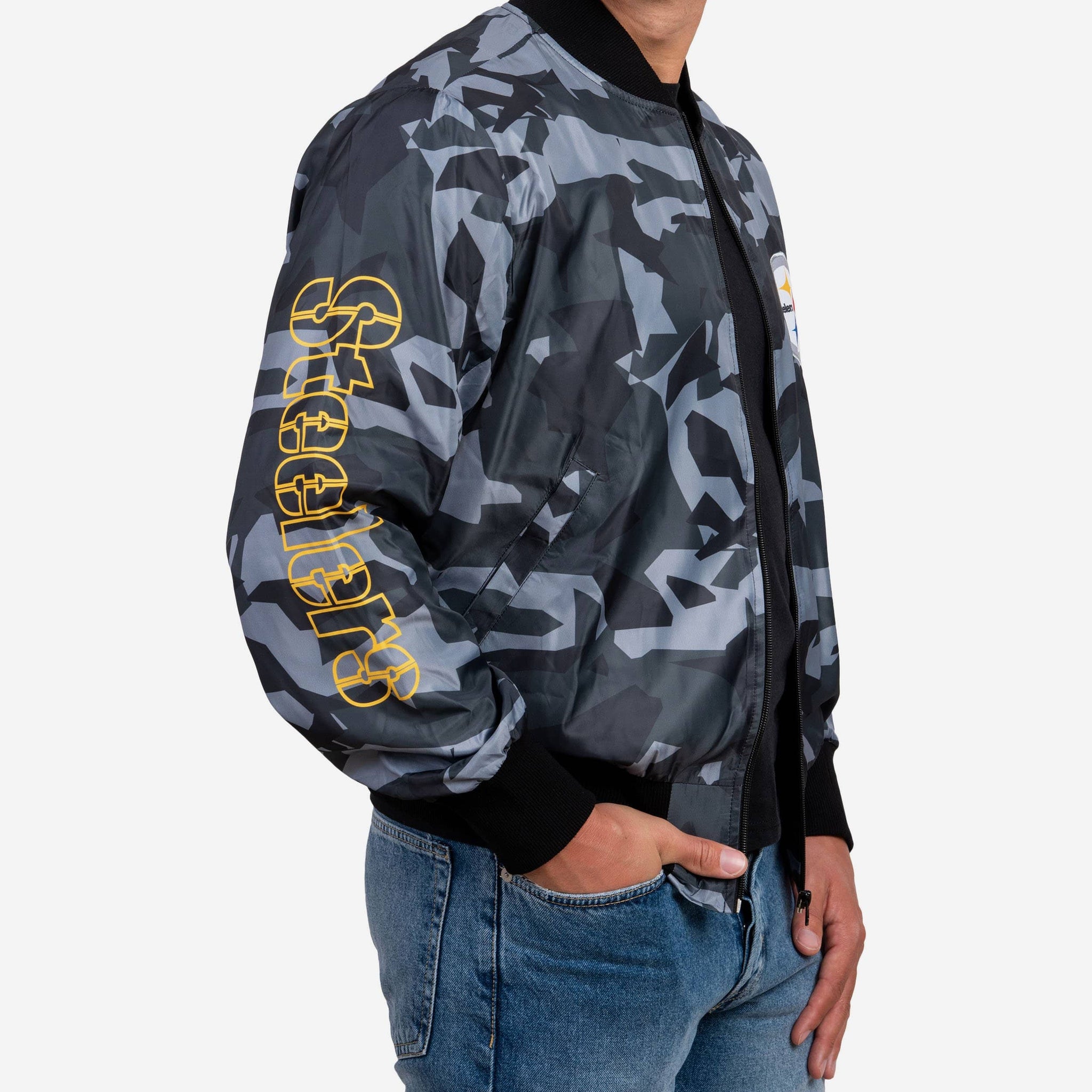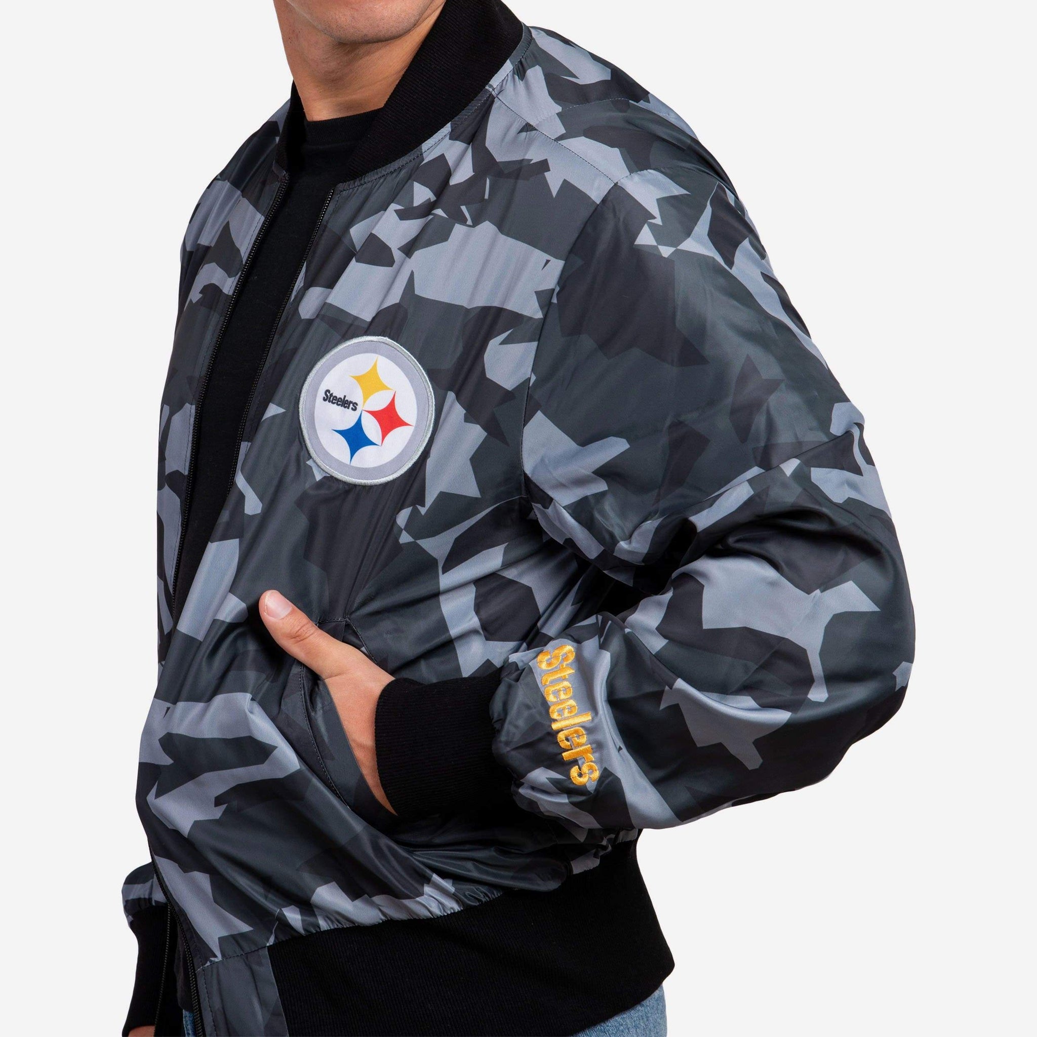 This Pittsburgh Steelers Men's Camo Bomber Jacket is, as the kids say, the bomb dotcom. Show off some bombshell style and rep the team all at once!