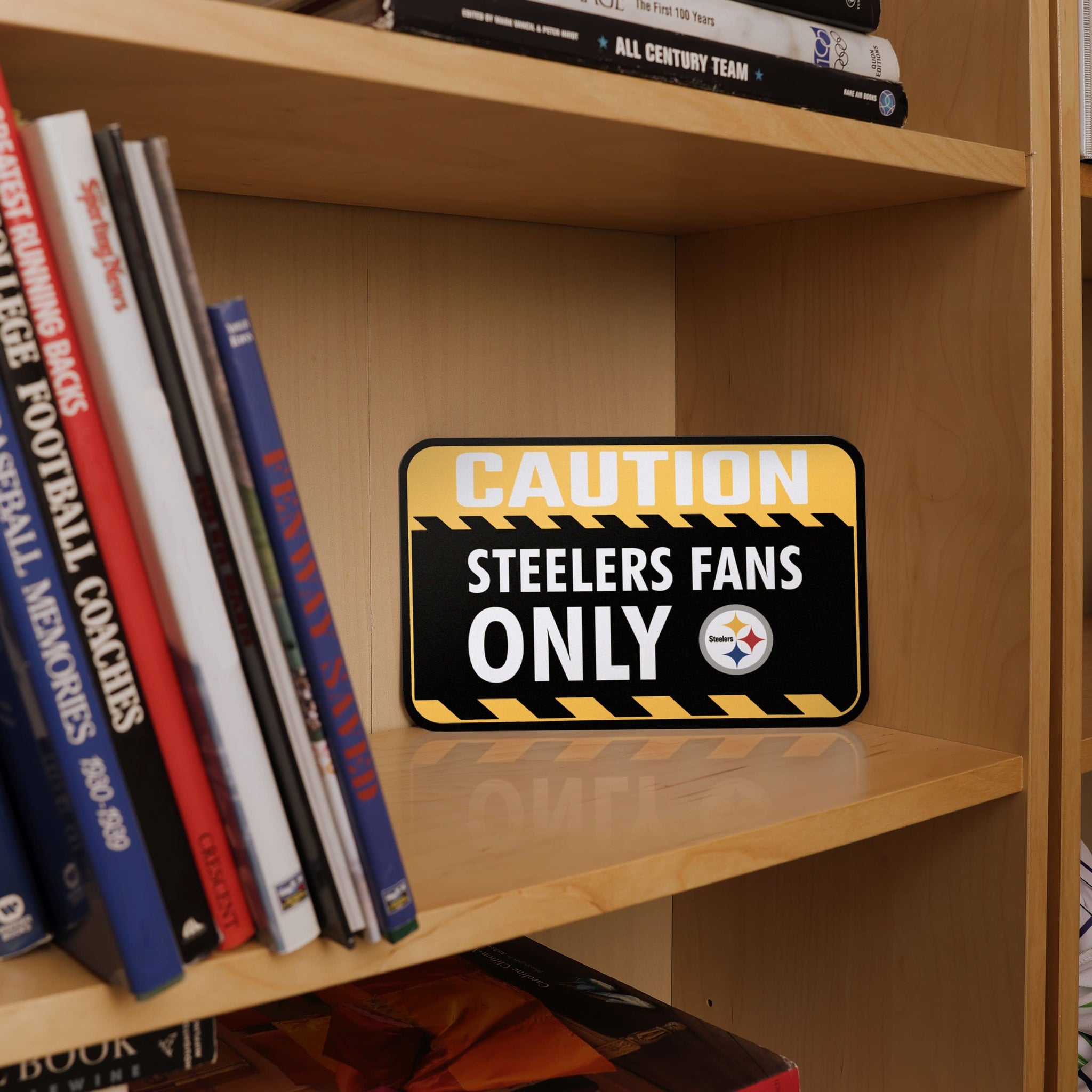 CAUTION: This one is exclusively for the true fans! Make sure everyone knows that no rival fans are allowed in your fancave on gameday by displaying this Pittsburgh Steelers Caution Sign!