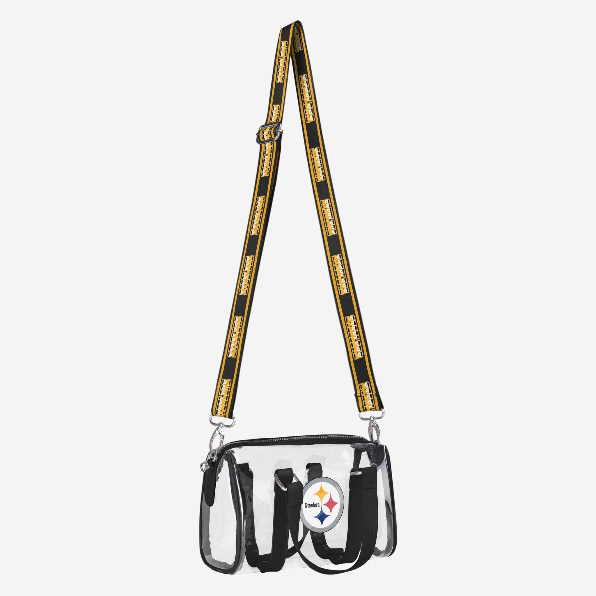 This bag holds your gameday essentials and a barrel of team fandom! Carry it clearly all on the go with the Pittsburgh Steelers Clear Barrel Bag.
