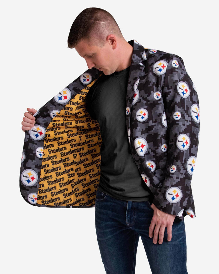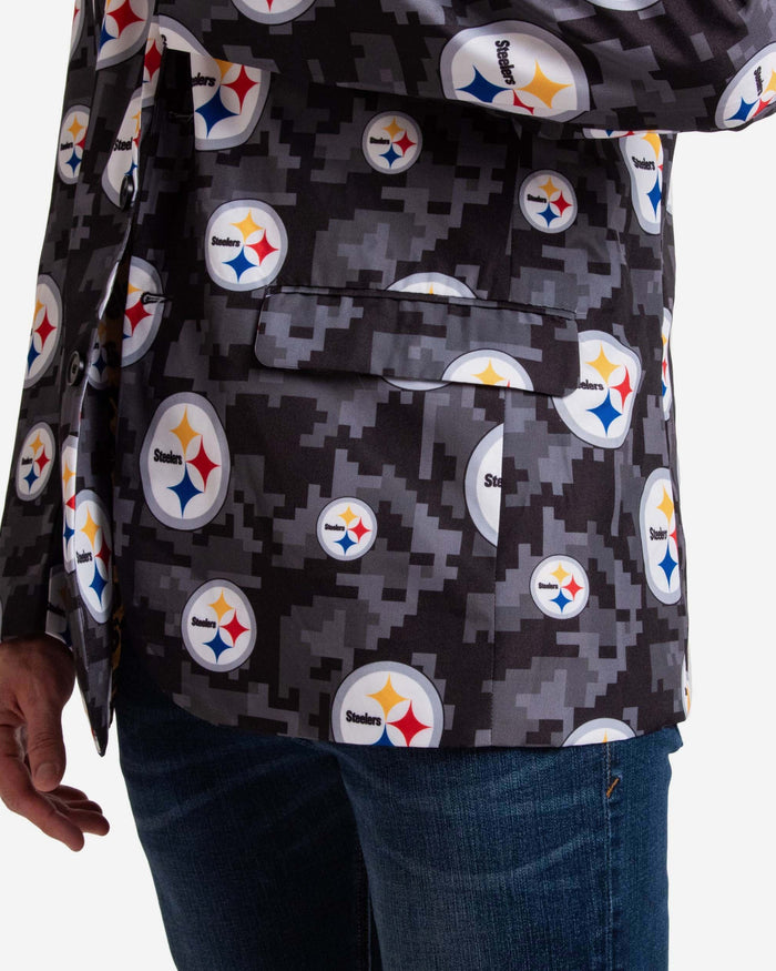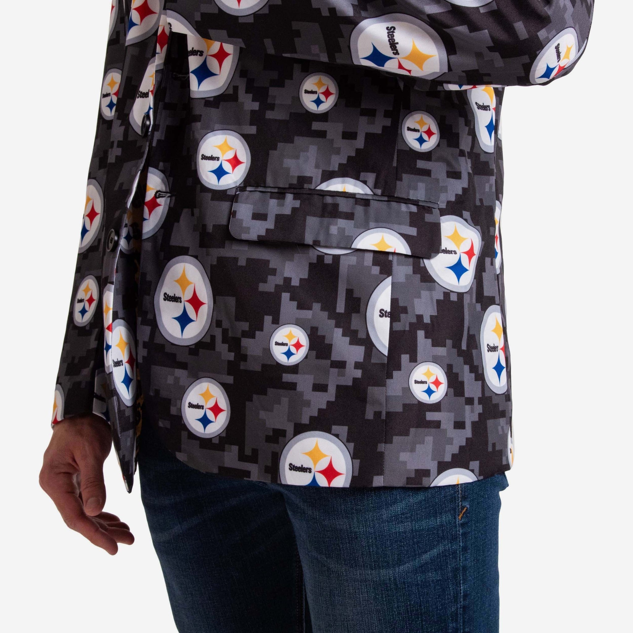 This Pittsburgh Steelers Digital Camo Suit Jacket may feature a team-colored camouflage design, but we promise it won't hide your legendary fandom. Nothing can hide that kind of bold team spirit.