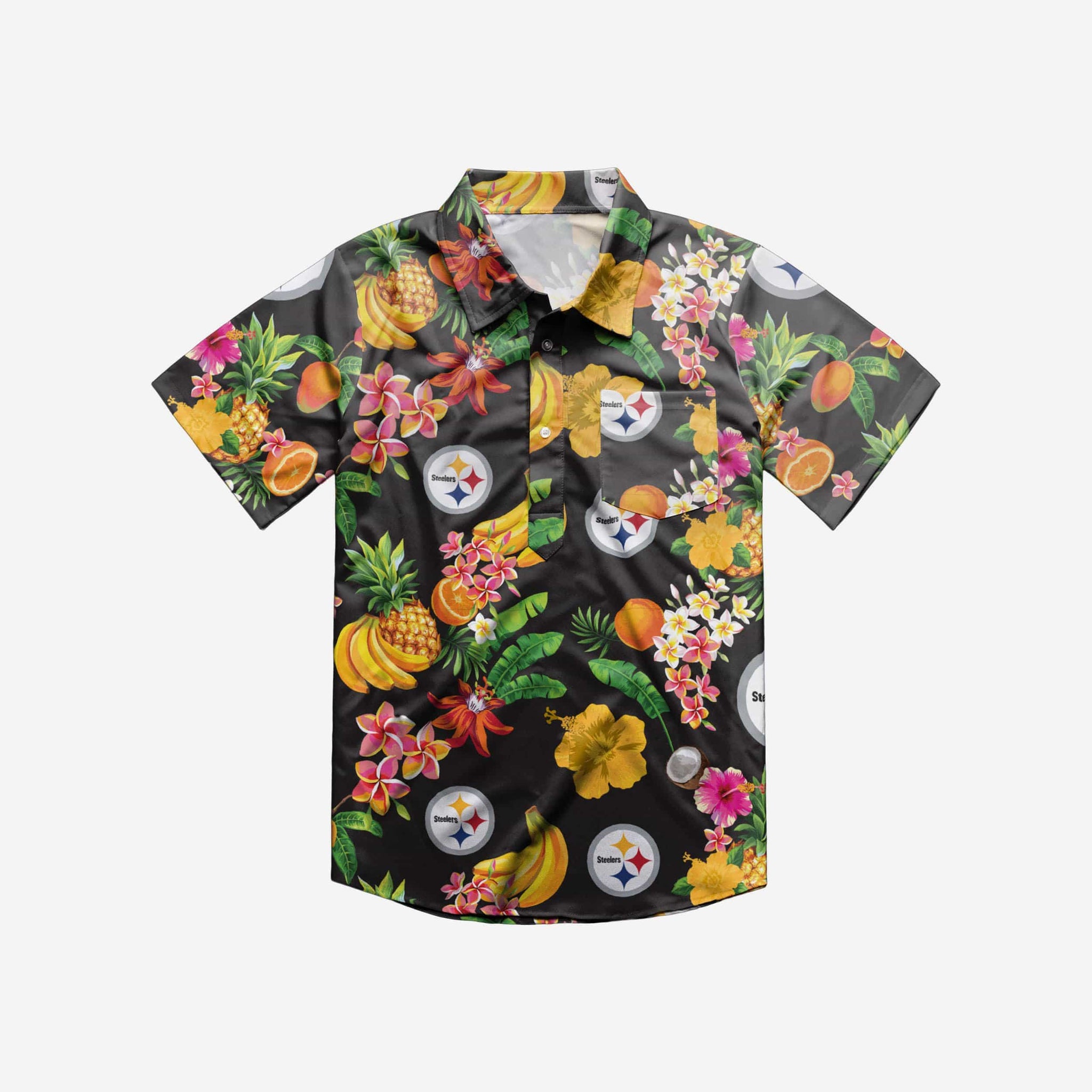 Everyone knows it's good to have fruit in your diet. Turns out it's good to have fruit in your wardrobe, too. Show off your juicy team spirit in this Pittsburgh Steelers Fruit Flair Men's Short Sleeve Polo Shirt. It's gonna have you looking like a healthy snack.