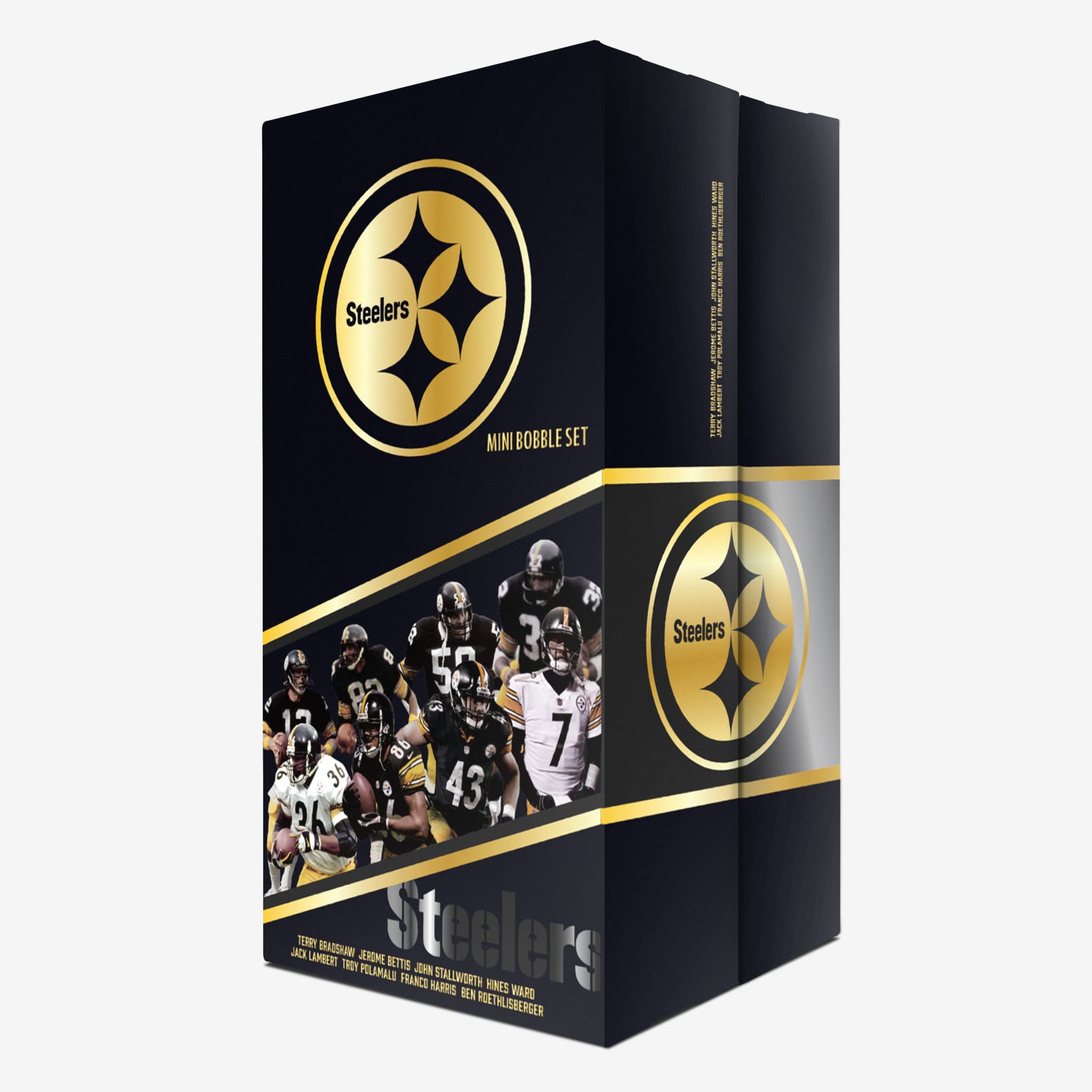 Bradshaw. Roethlisberger. Harris. Betts. Stallworth. Ward. Lambert. Polamalu. This Pittsburgh Steelers Gridiron Legends Mini Bobblehead Boxed Set is the octet of awesomeness you've been searching for. Assemble your dream team of Steelers greats past and present!