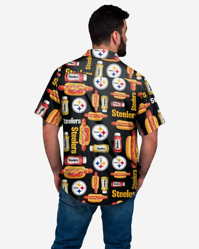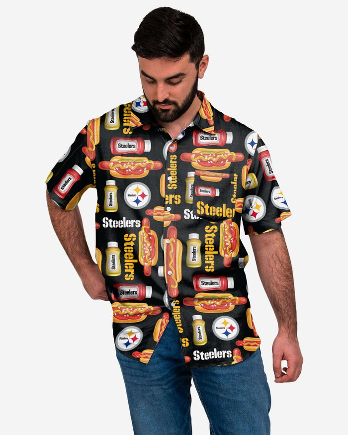 Enjoy some sizzlin' style made for the ultimate team fan and grilling aficionado. The fandom on display with this Pittsburgh Steelers Grill Pro Button Up Shirt is as delicious as a freshly grilled hot dog. Mmm. Hot Dogs.