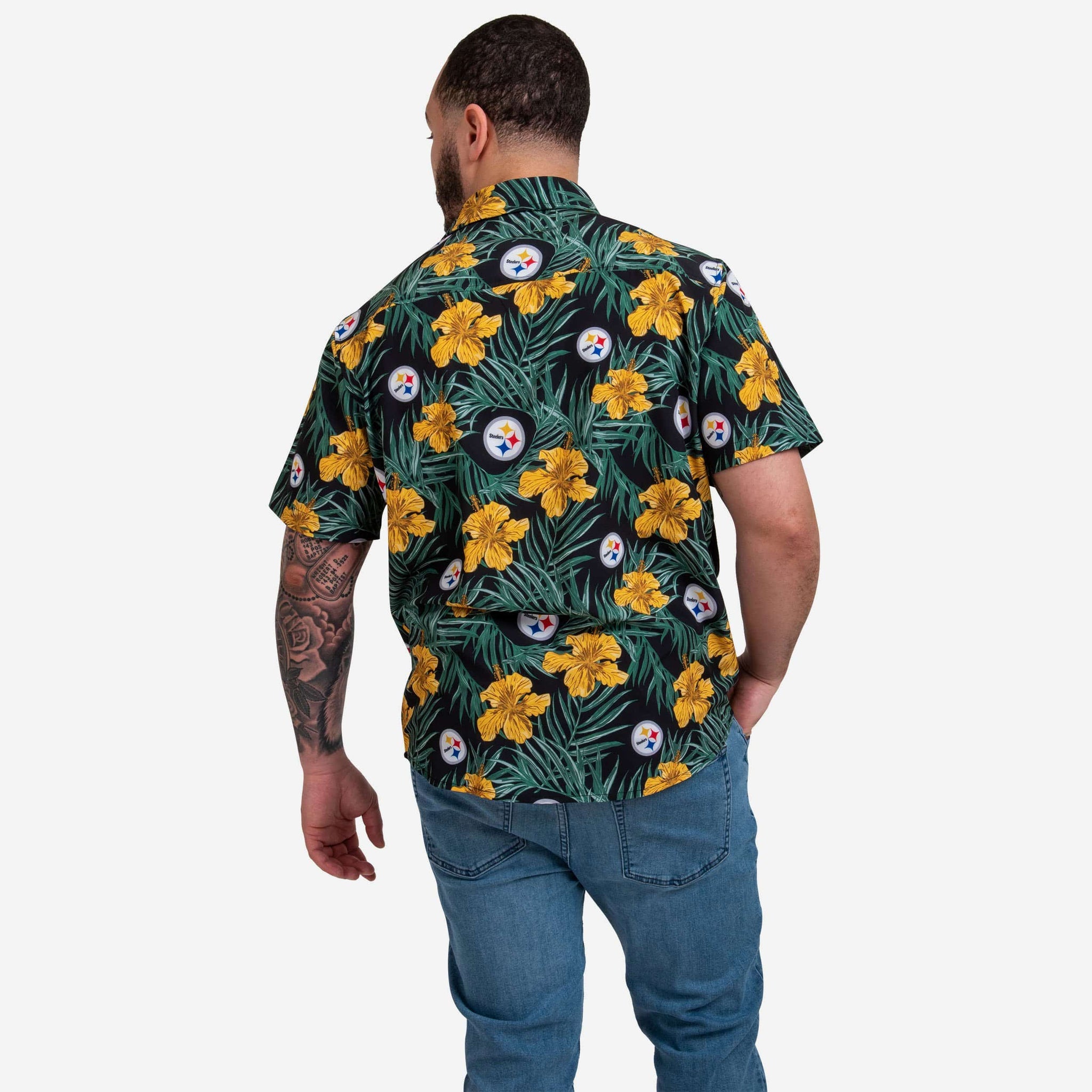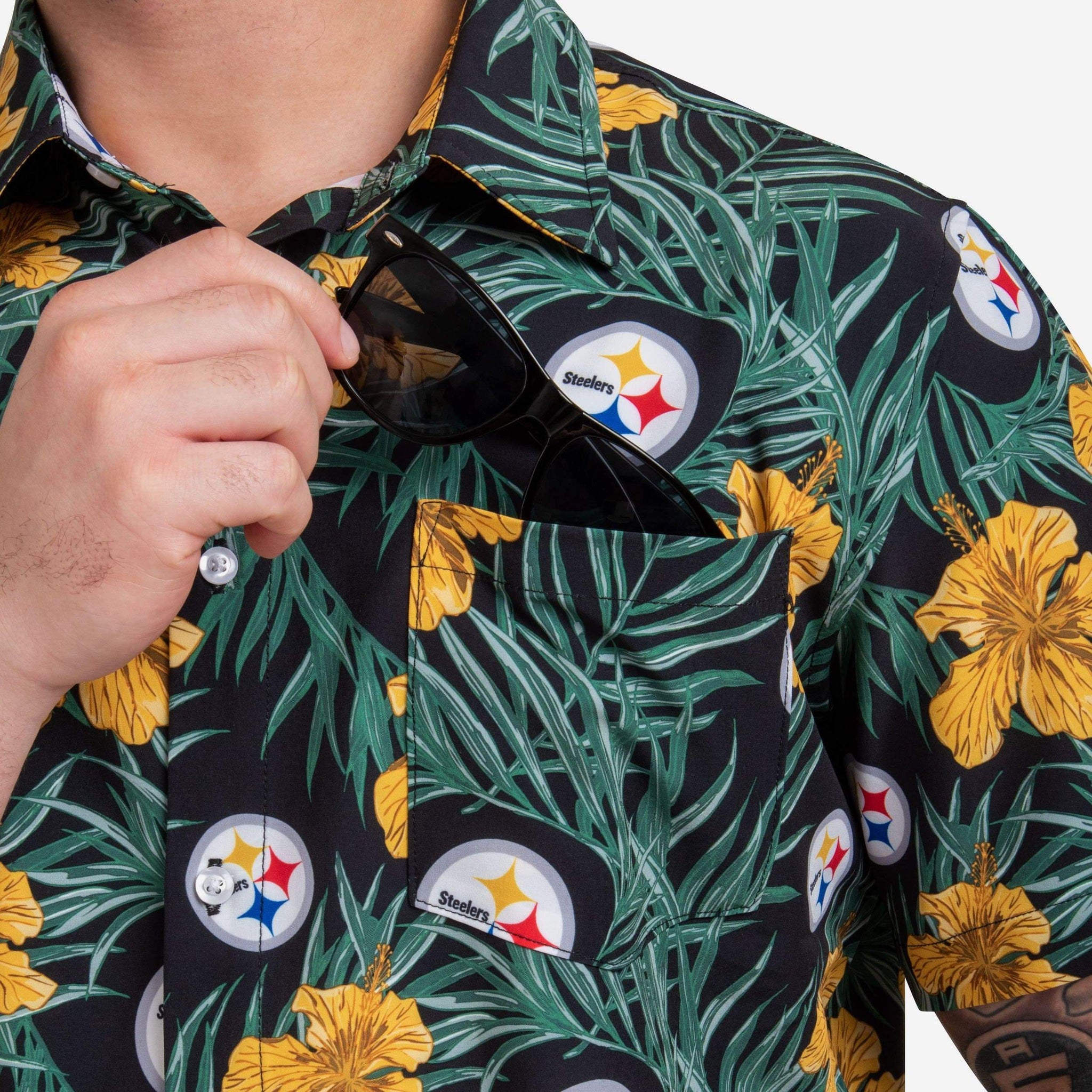 Whether you're sipping a cold, delicious beverage on the beach, or just lounging on the couch watching the game on TV, this Pittsburgh Steelers Hibiscus Button Up Shirt is the perfect way to show off your fan fashion sense at literally any occasion.