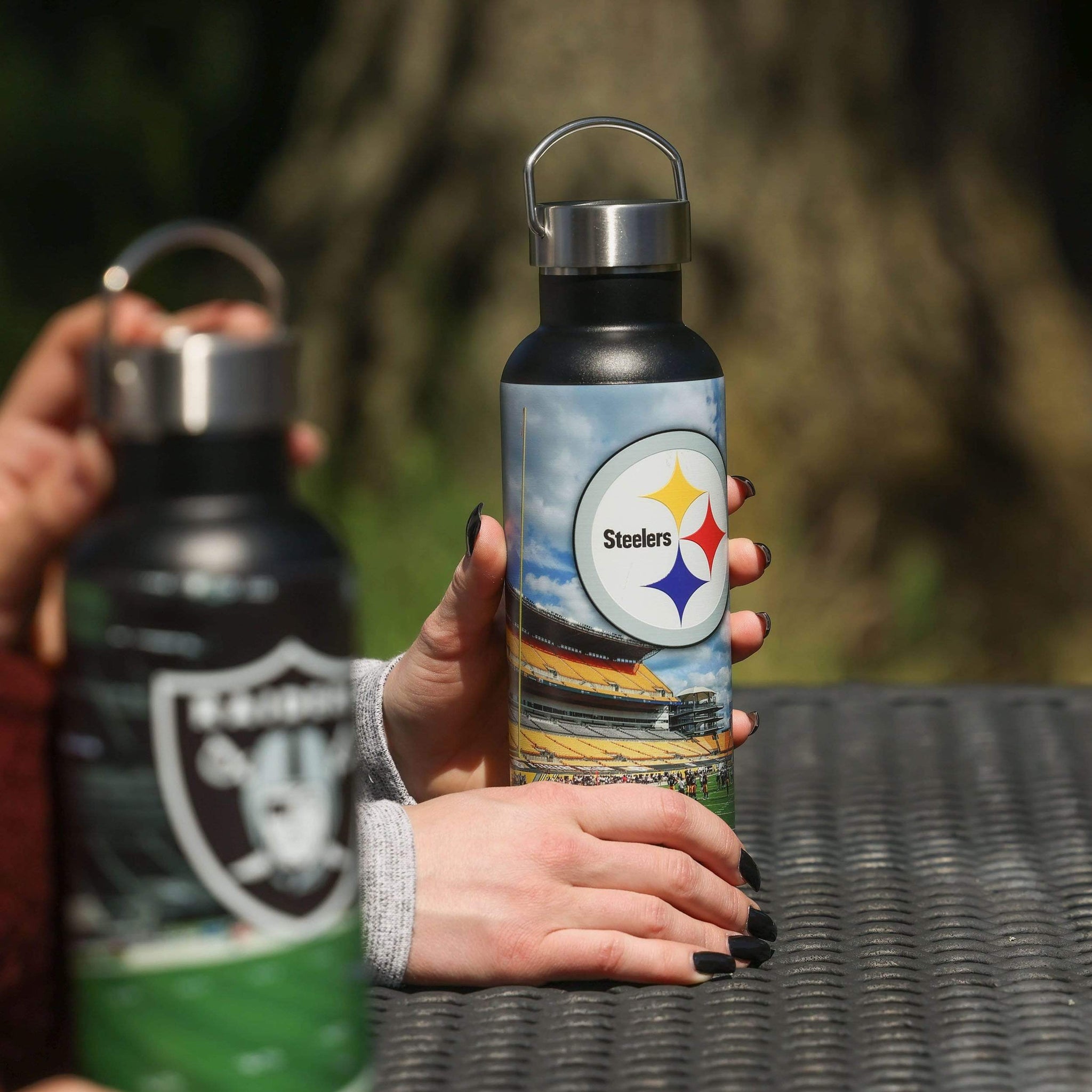 You know what they say - There's no place like home. Now you can take your home field with you wherever your team spirit takes you by sipping your favorite beverage from this Pittsburgh Steelers Home Field Hydration 25 oz. Bottle!