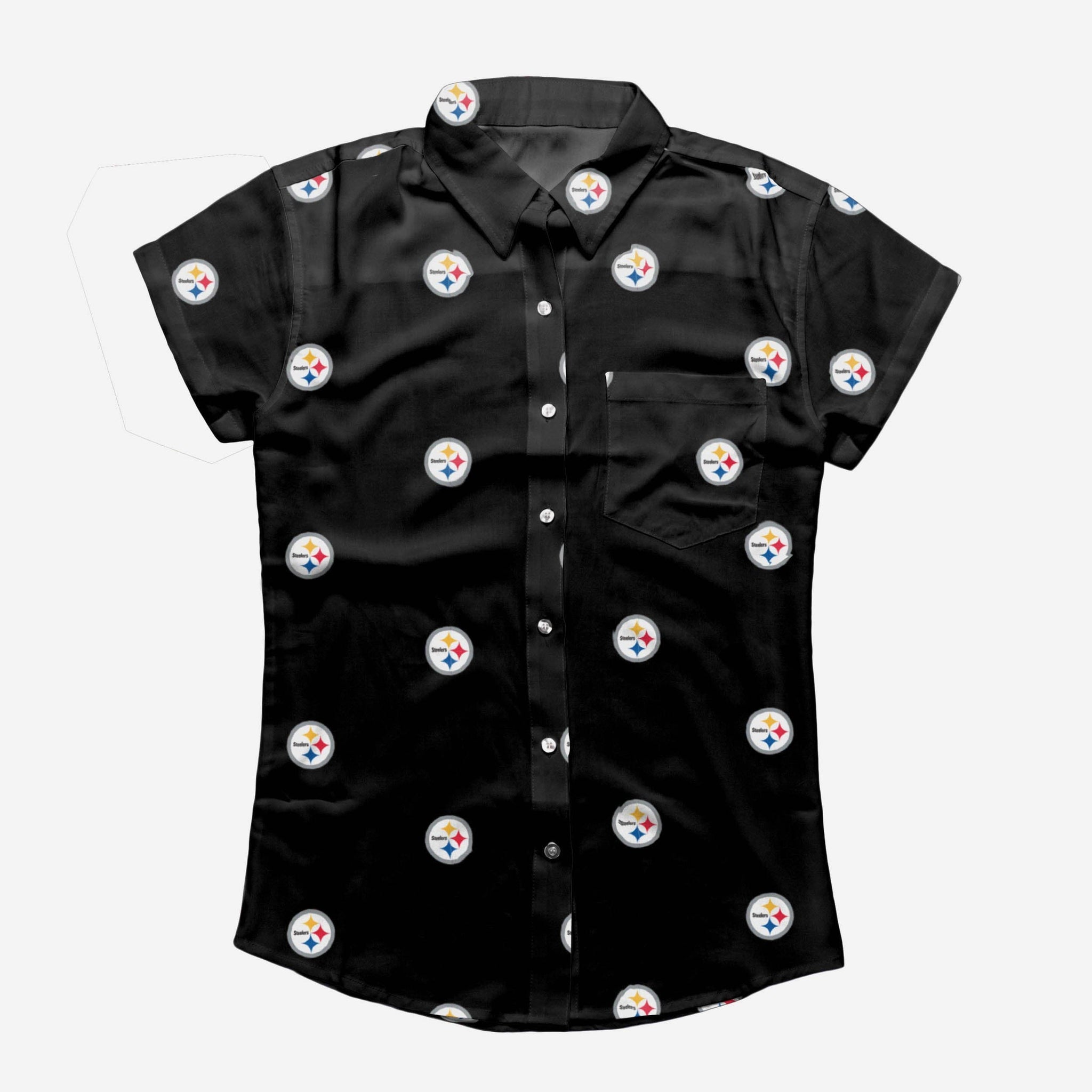 There aren't many guarantees in life, but we can guarantee no one will ask you who your favorite team is when they see you wearing this Pittsburgh Steelers Women's Logo Blast Button Up Shirt. Well. No one except really, really unobservant people.