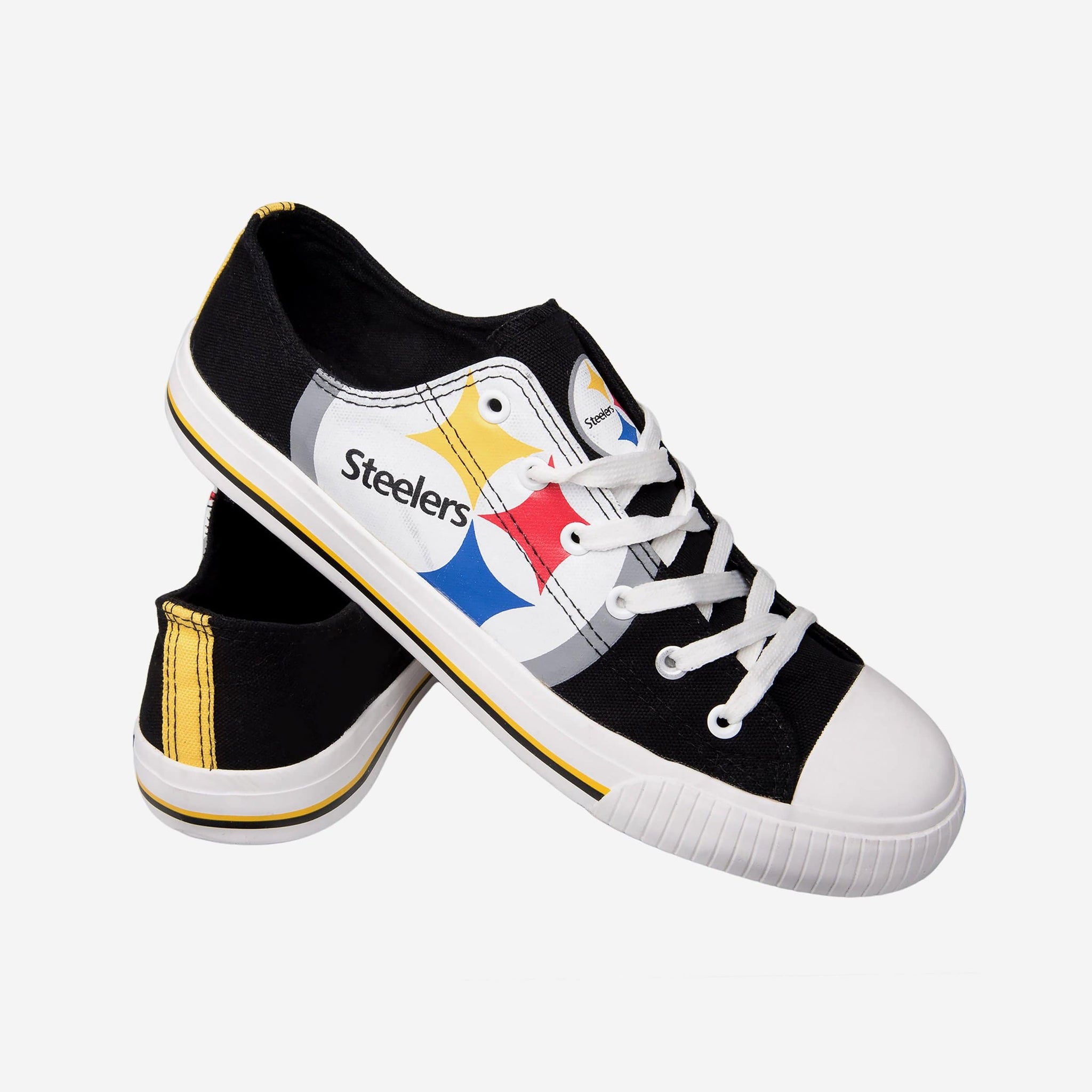 They always say to get your day started on the right foot. But if you're wearing these Pittsburgh Steelers Mens Low Top Big Logo Canvas Shoes, that could be tough. Because they'll look so good that it'll be tough to tell which one is the WRONG foot.