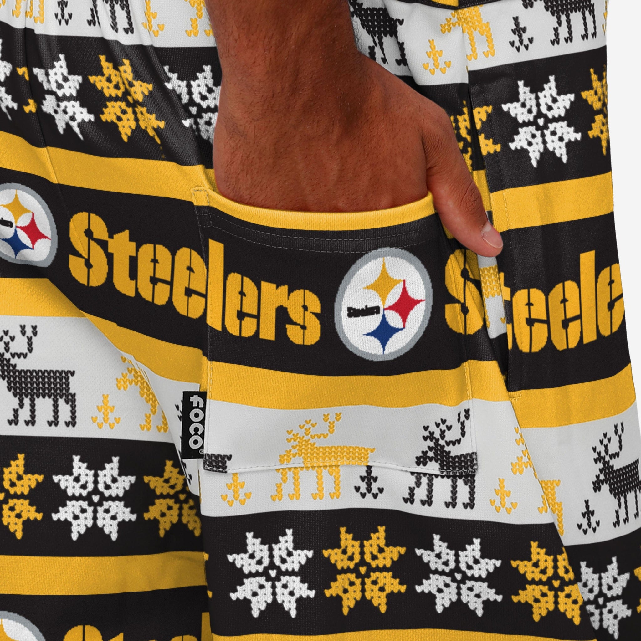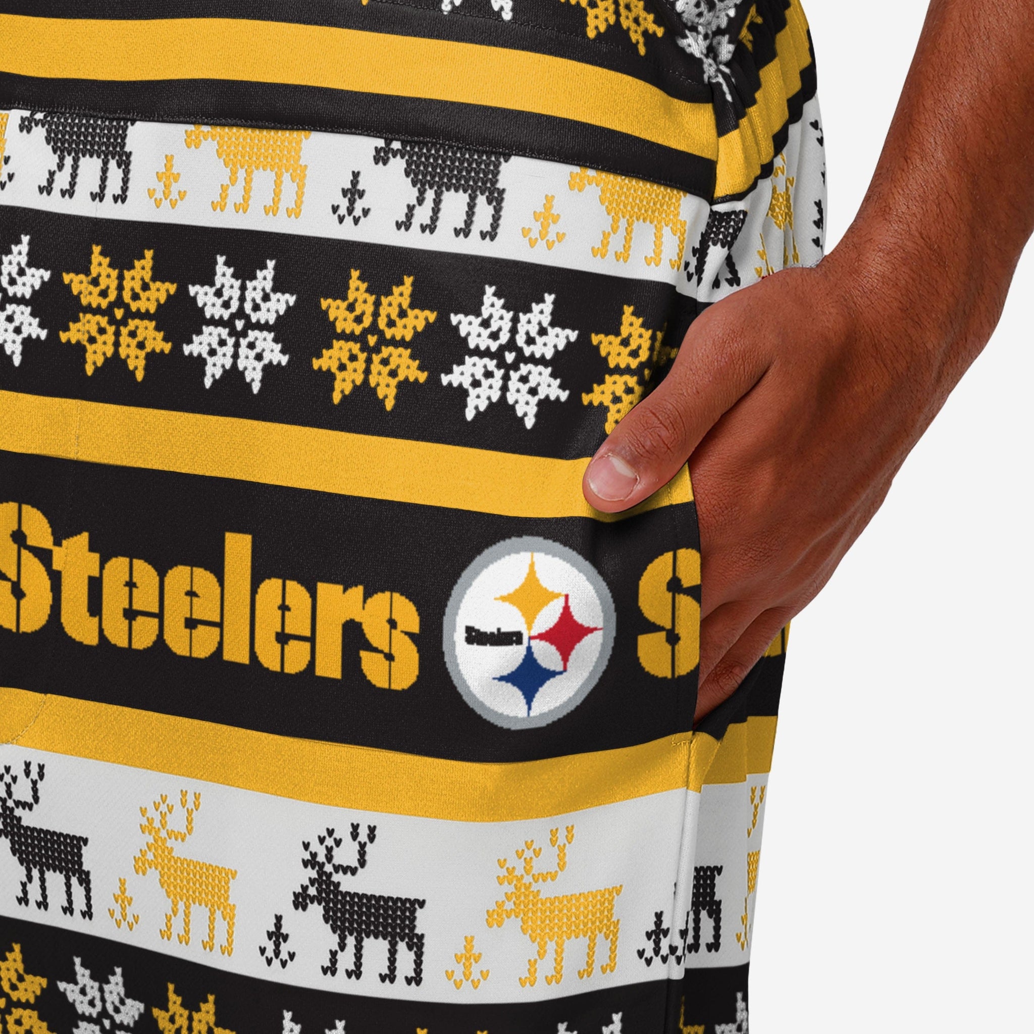 Show your team spirit in these stylish and comfortable Pittsburgh Steelers Men's Ugly Home Gating Bib Overalls. With their all-over team-colored design and bold team logo display, these overalls are the perfect way to show your support for the Pittsburgh Steelers while showing off some beautiful style akin to your favorite ugly sweater that's perfect for the holidays, but will help you stand out year-round.