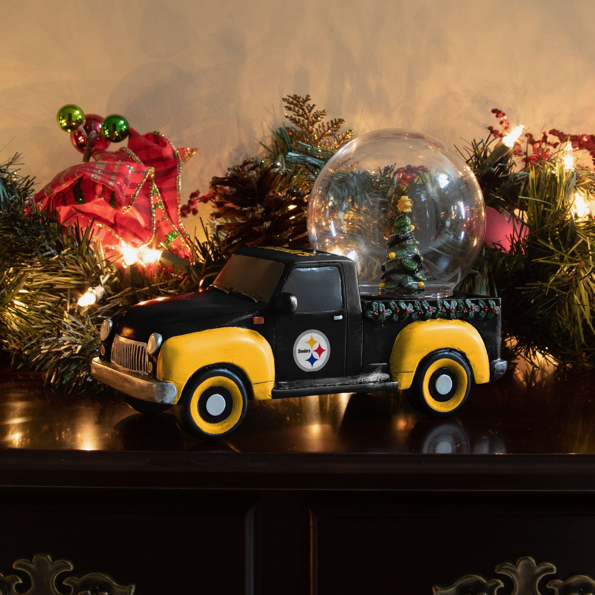 This snow globe is ZOOMING into the holidays! Kick your holiday cheer into high gear with this Pittsburgh Steelers Pickup Truck Snow Globe!