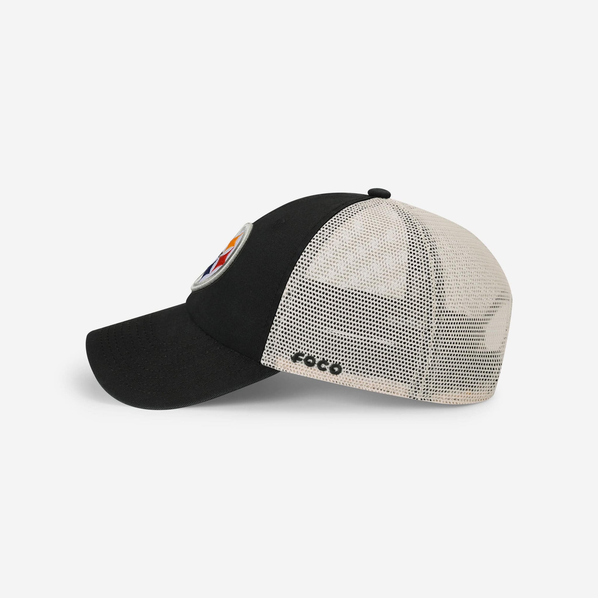 Keep it casual on the road to gameday. Whether you're behind the wheel of a big rig or in the stands at the game, this Pittsburgh Steelers Primary Logo Casual Trucker Cap is just the thing to clean up your style. The hat features an embroidered team logo display and unstructured design with a soft curve visor and mid crown to help you play the role of trucker and fan. In addition, mesh panels create a breezy feel, and the adjustable snapback snap closure makes adjusting the fit simple.