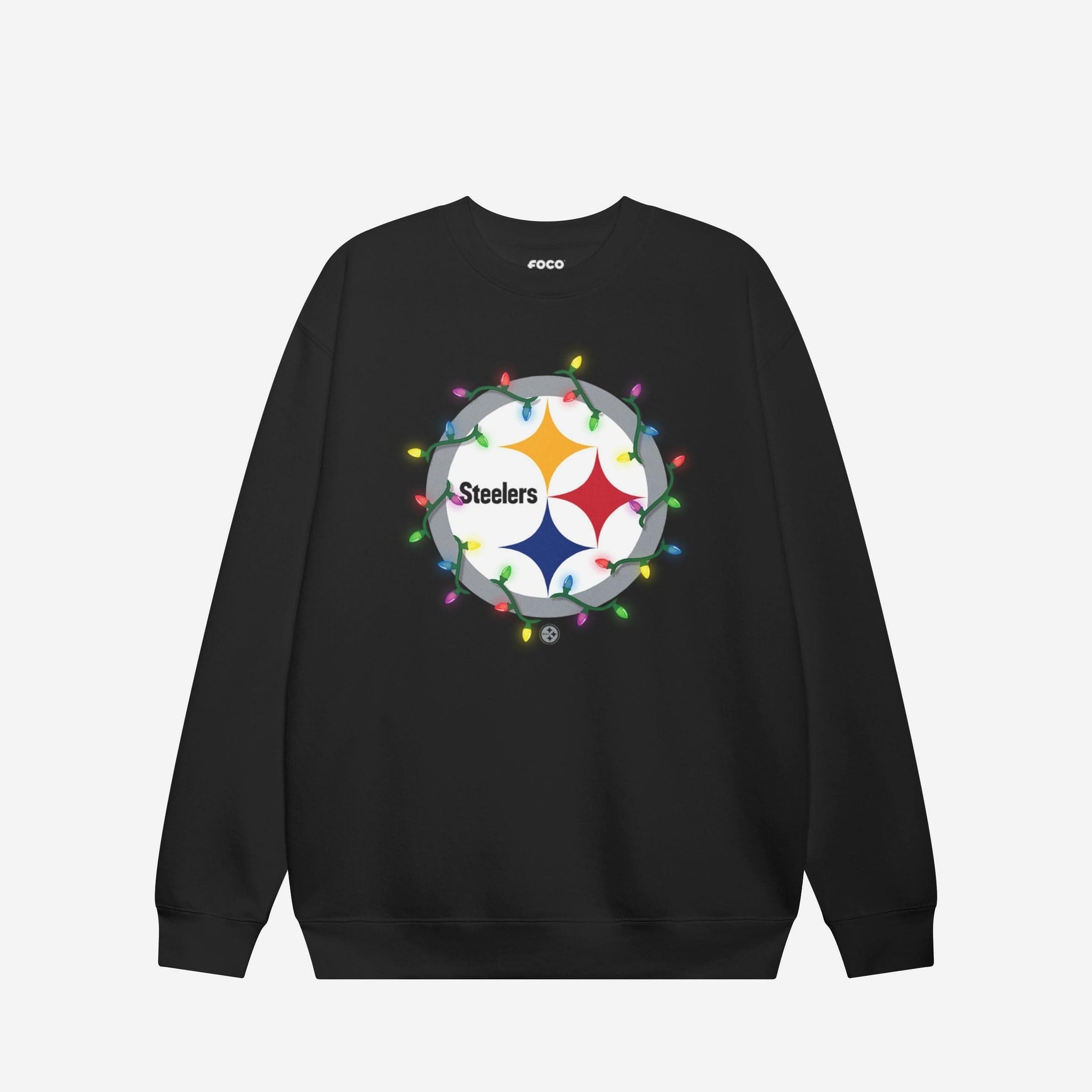The holidays shine brighter when you’re repping your team! Add some festive fun to your fan fit with the Pittsburgh Steelers Primary Logo Holiday Lights Crew Neck Sweatshirt.